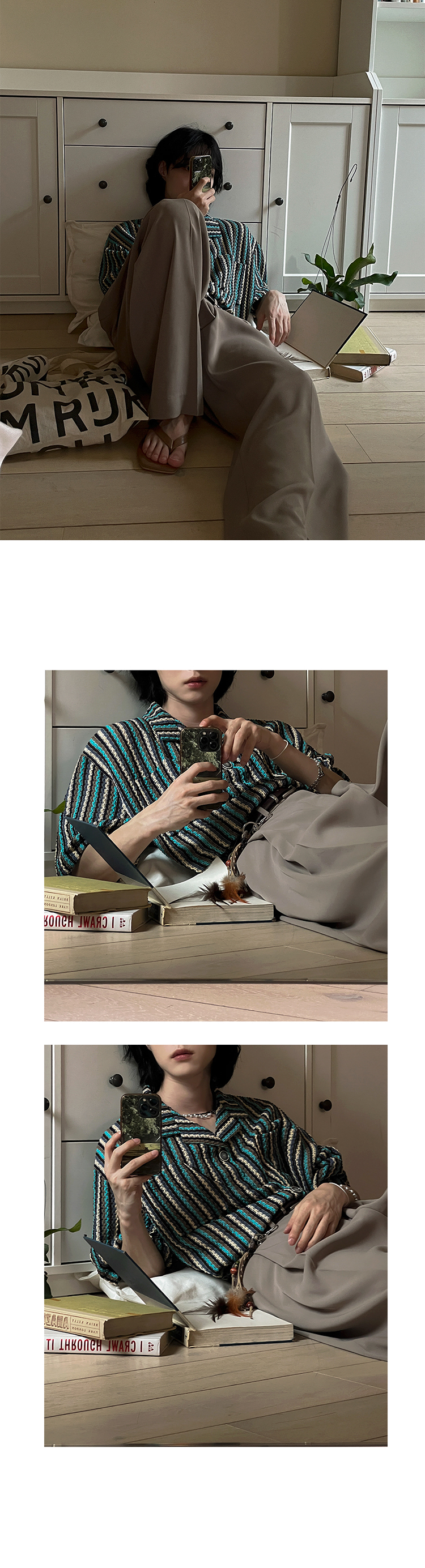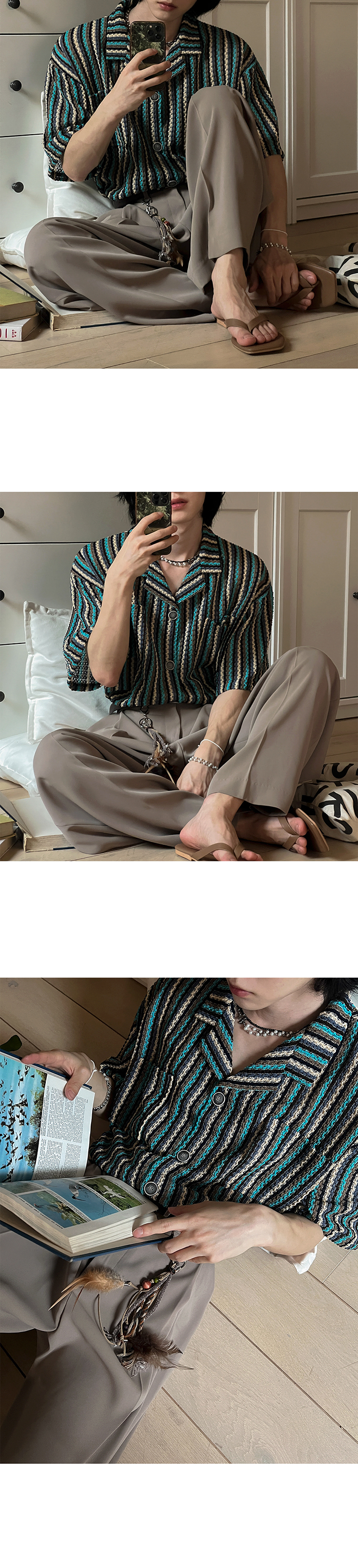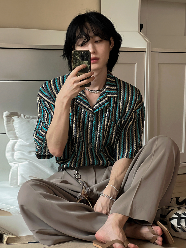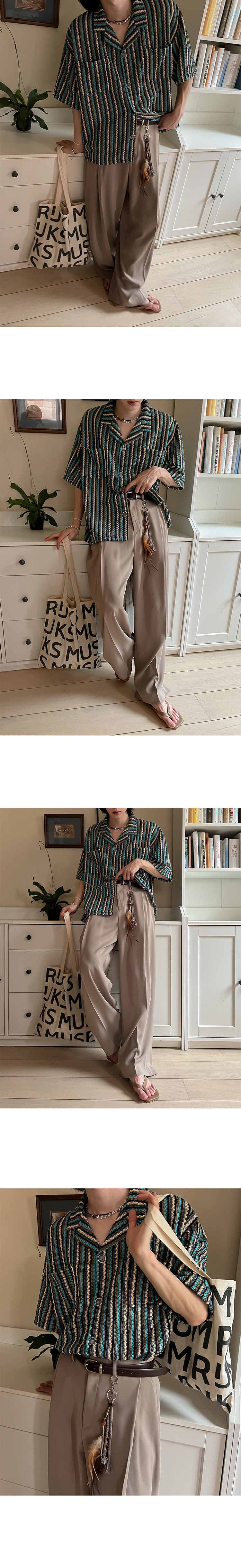 Striped Design Oversize Short Sleeve Shirt WN20274
