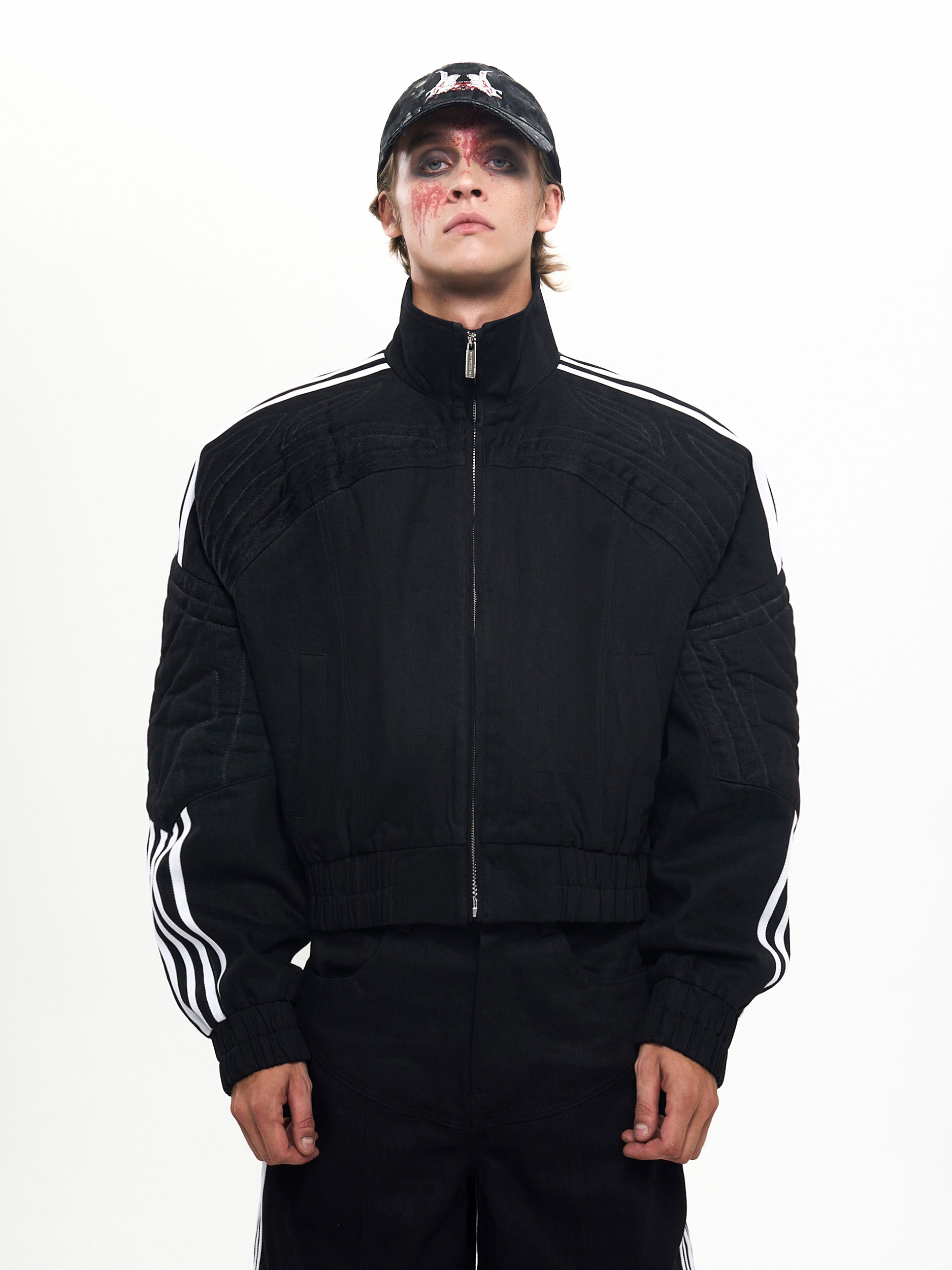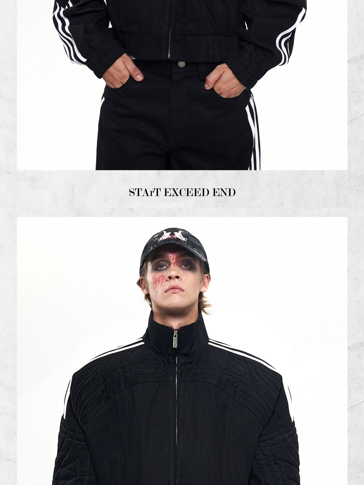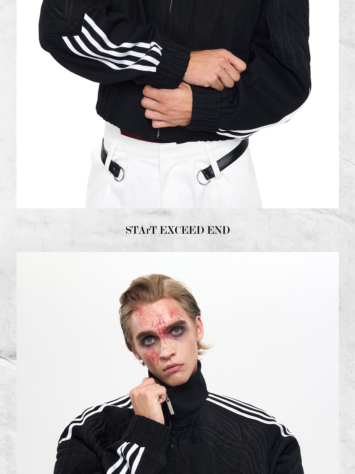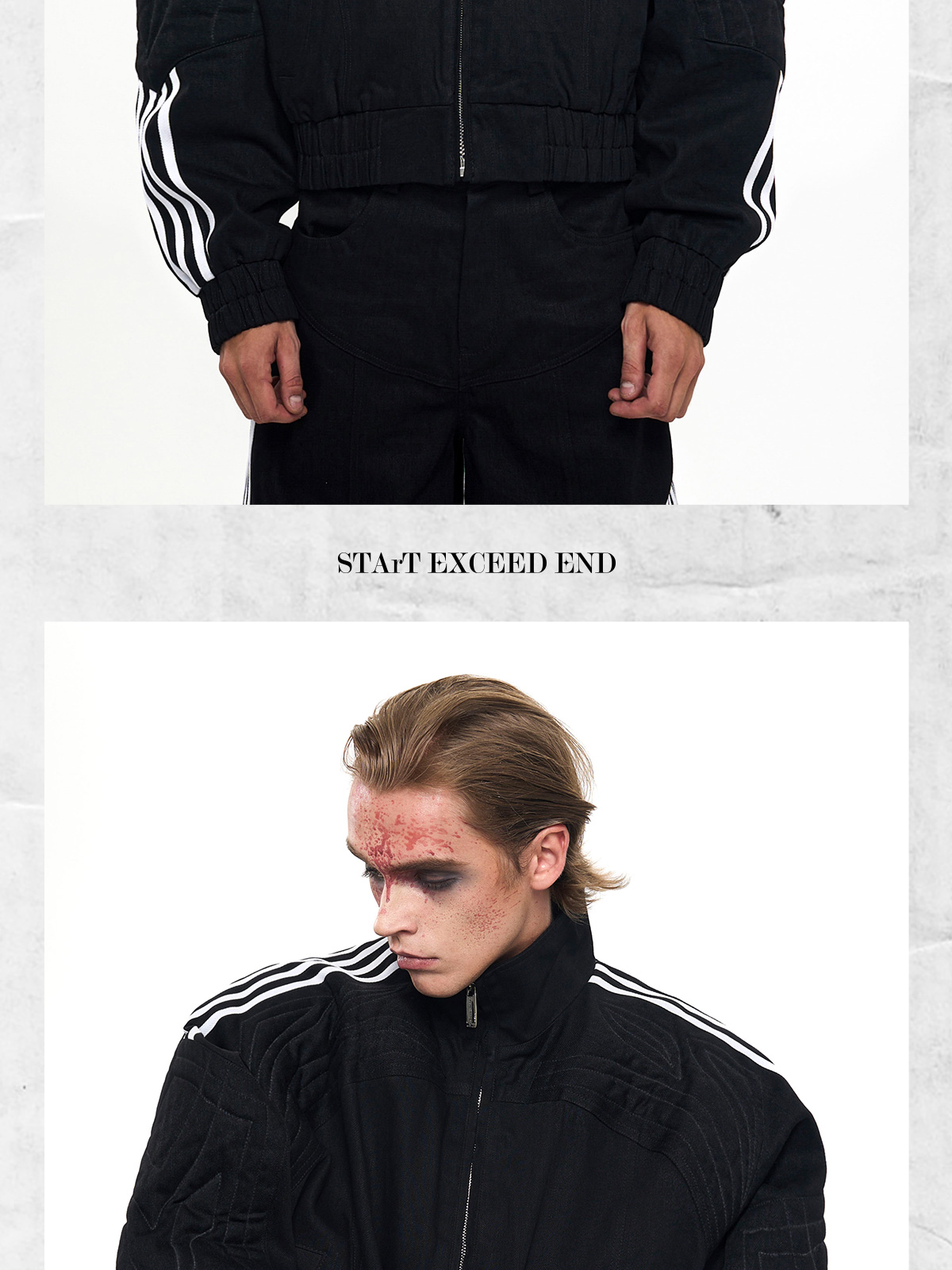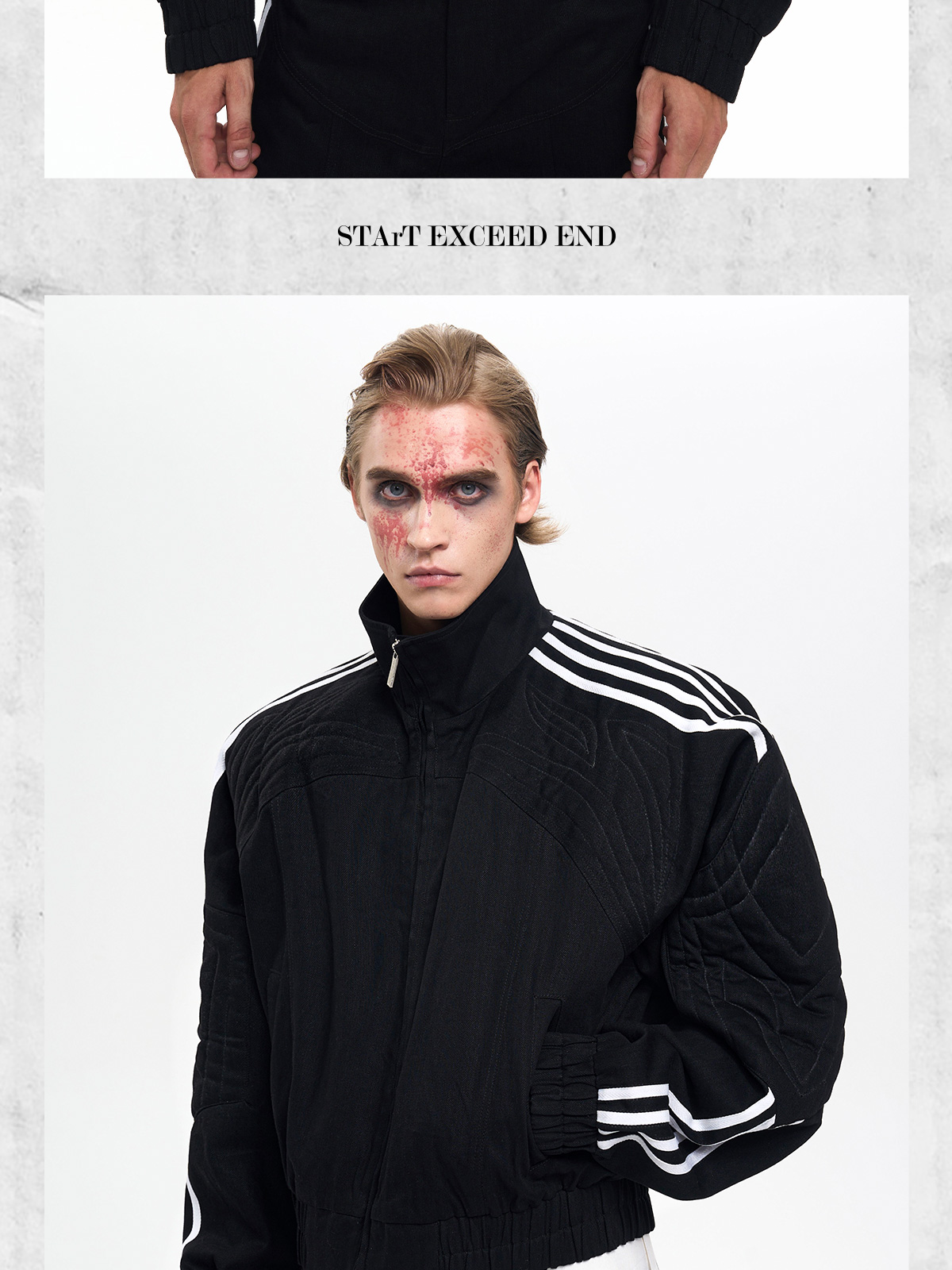 Patchwork Stand Neck Jacket & Patchwork Wide Leg Pants Setup WN20380