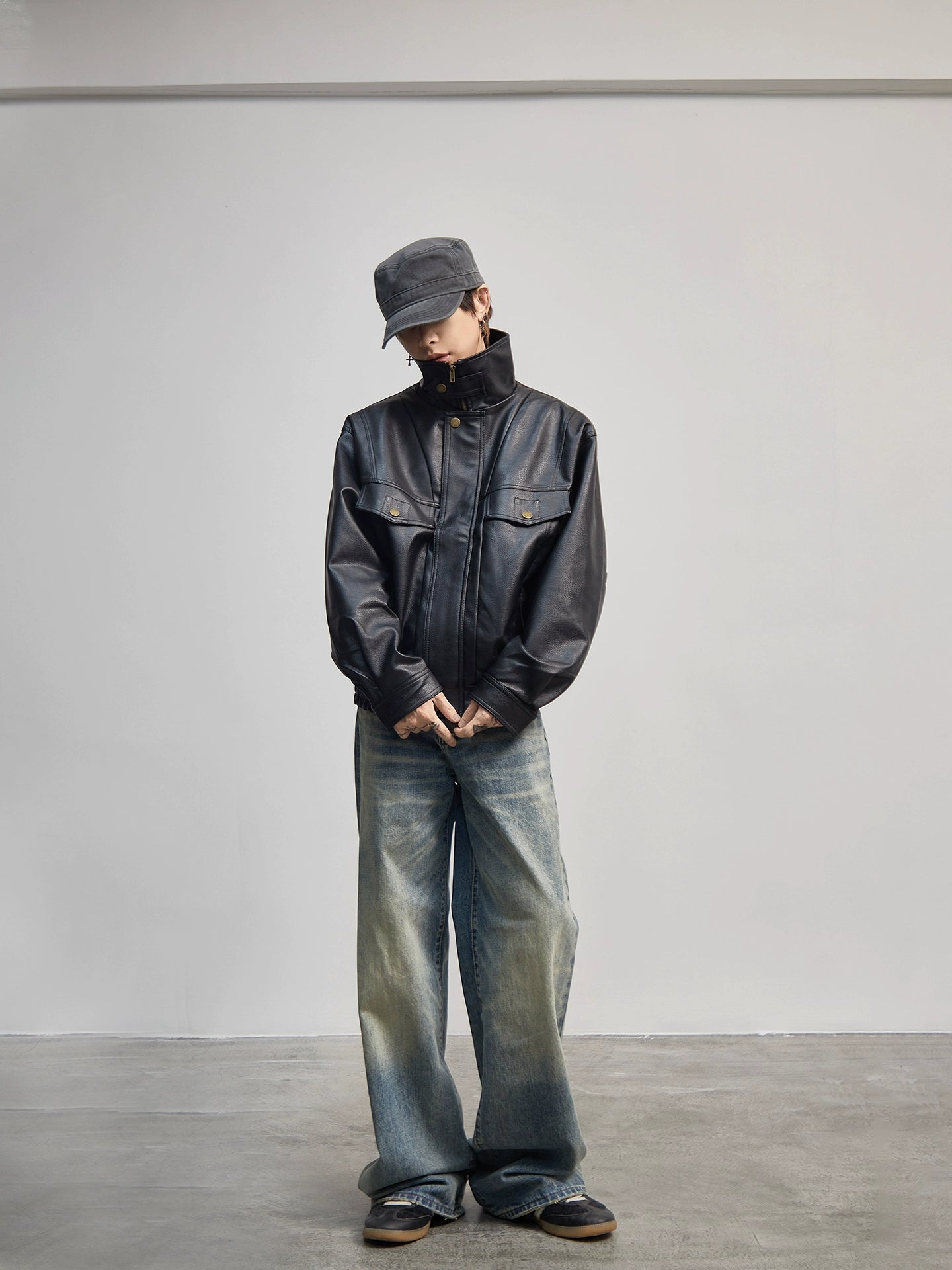 Standing Collor PU Leather Jacket WN21177