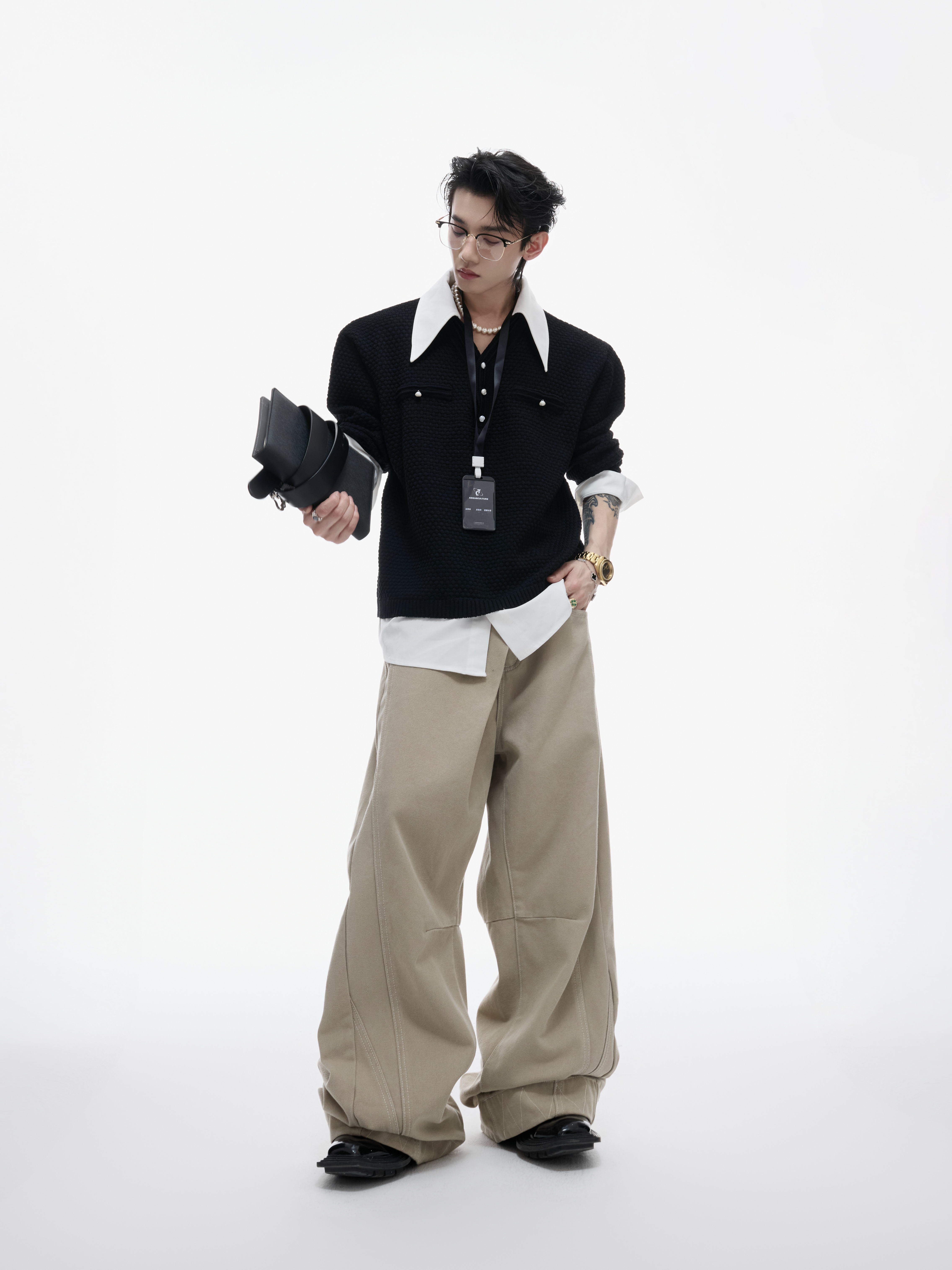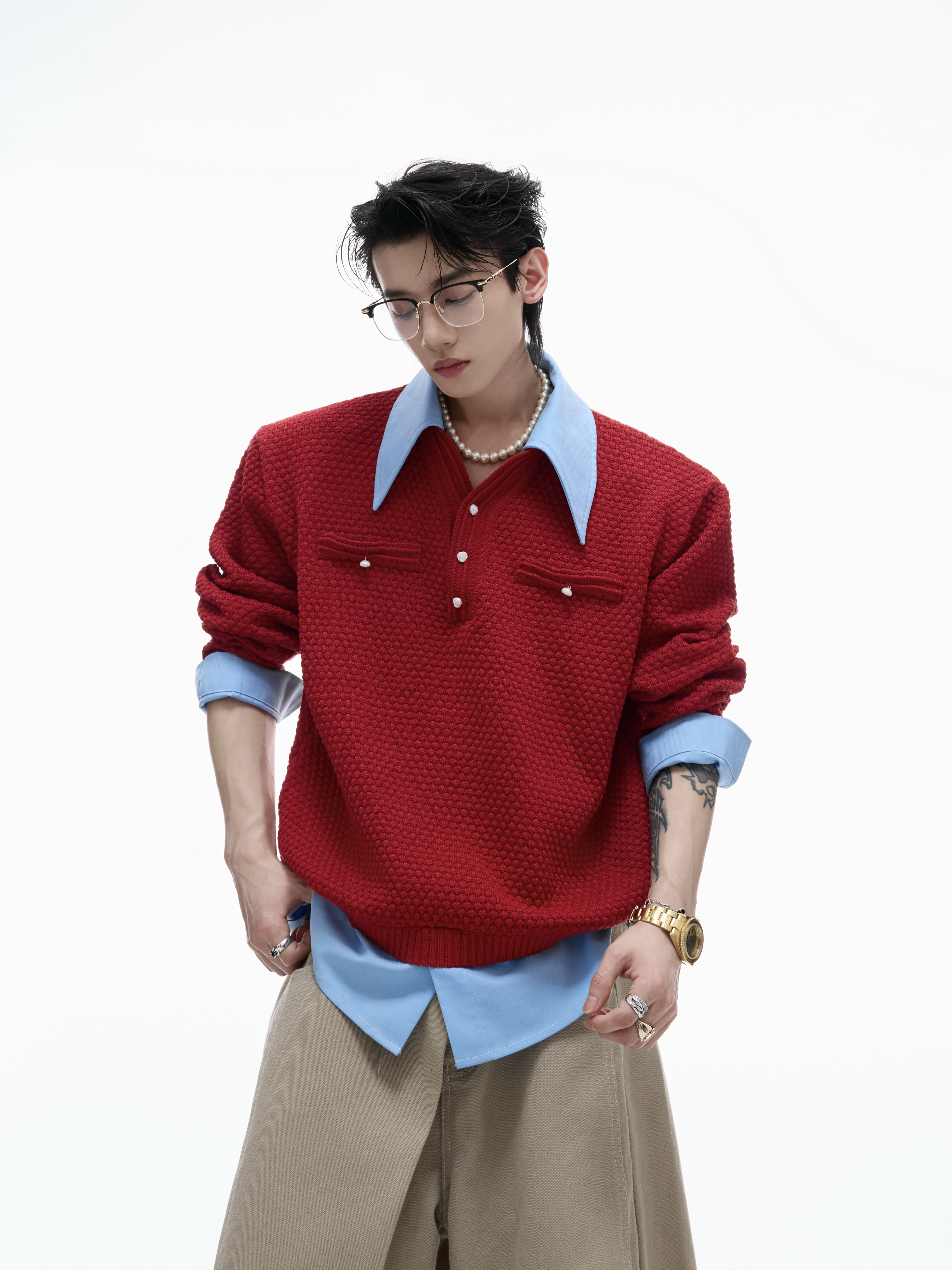 Fake Layered Contrast-Collar Splicing Knit Sweater WN21224