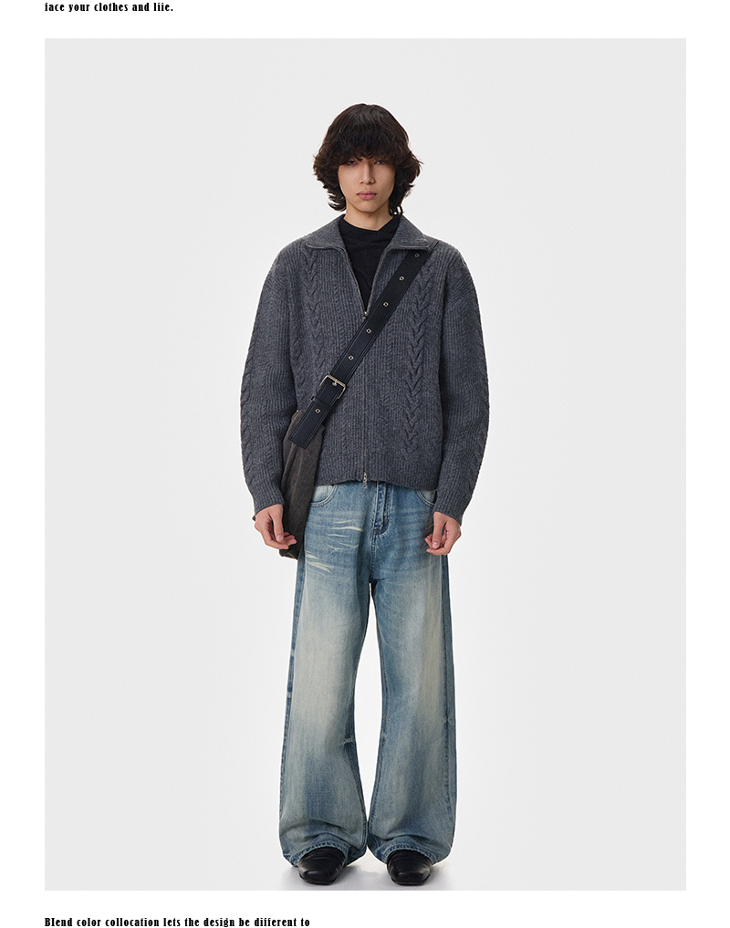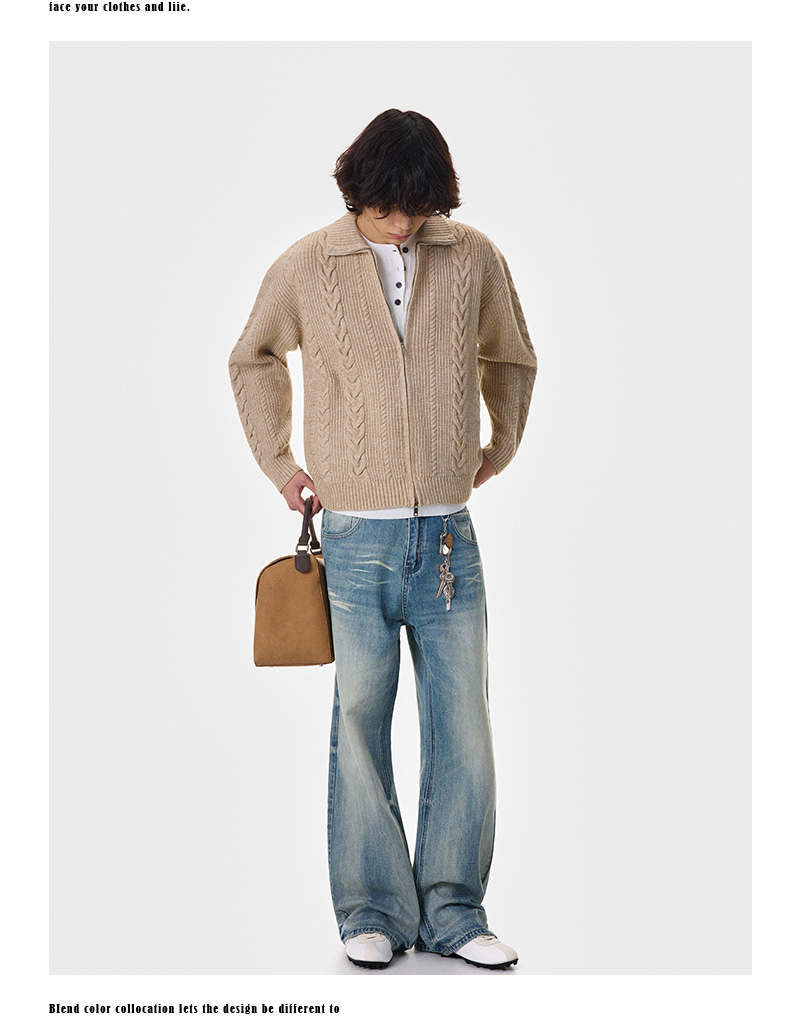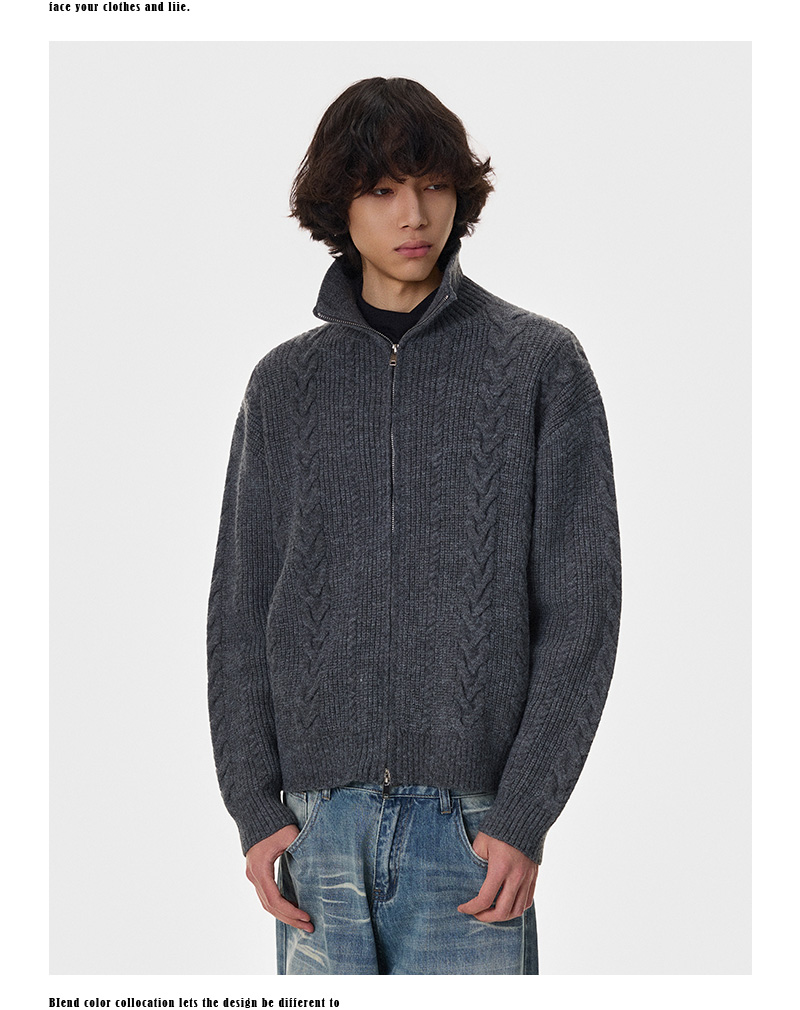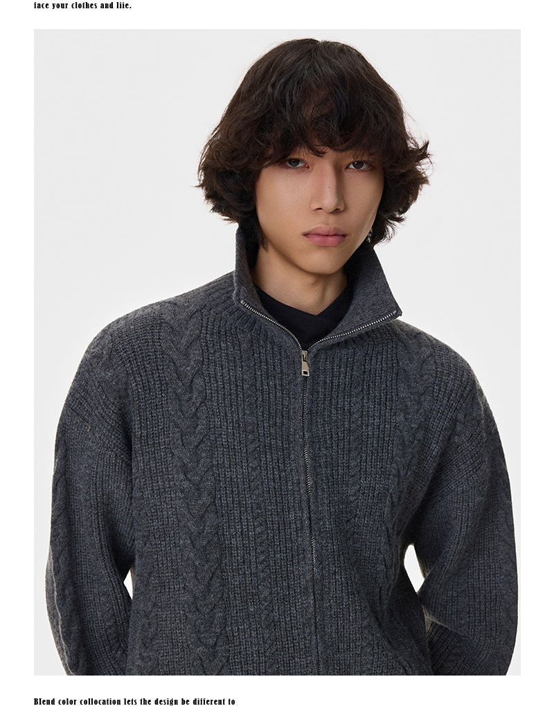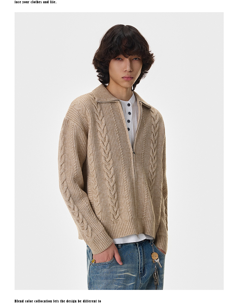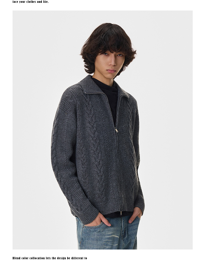 Herringbone Polo-Collar Thick Knit Cardigan WN21403