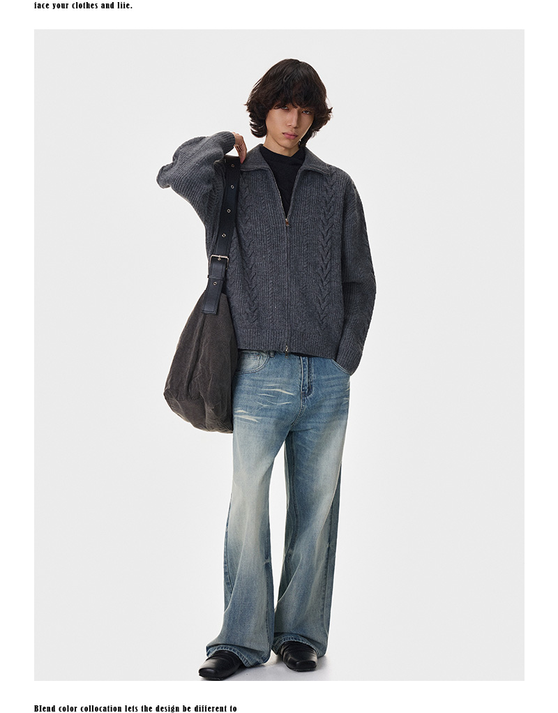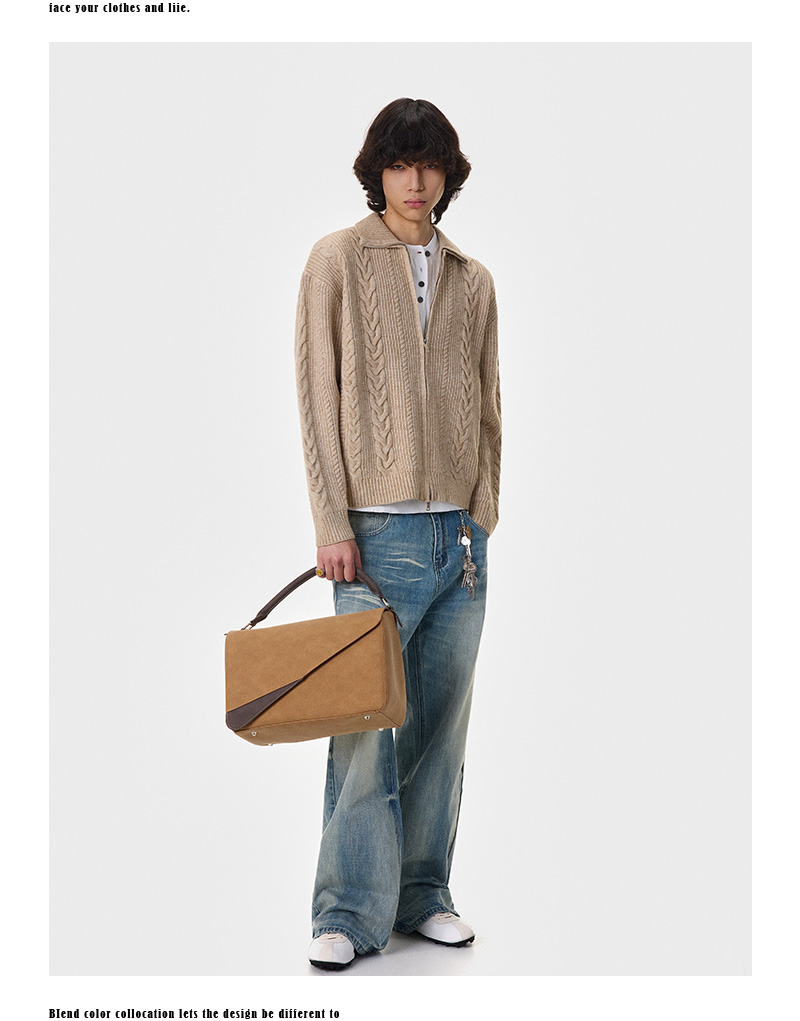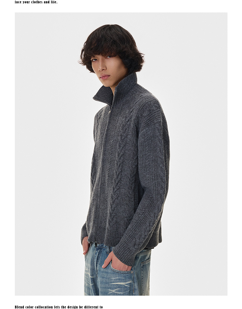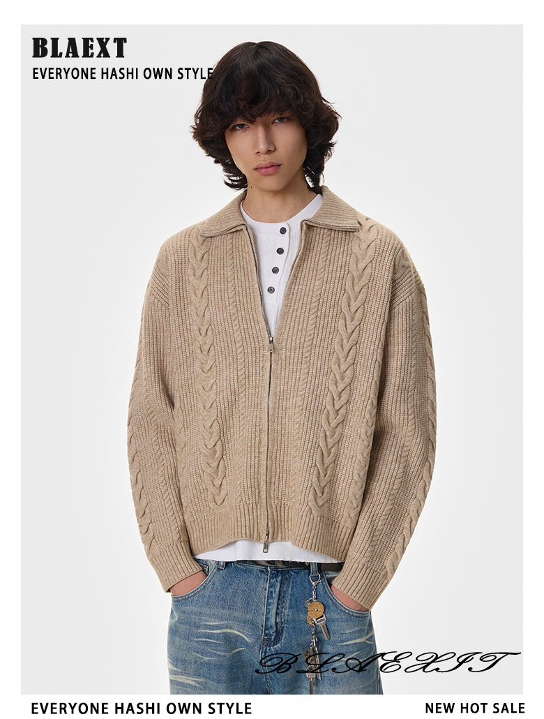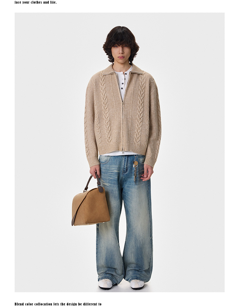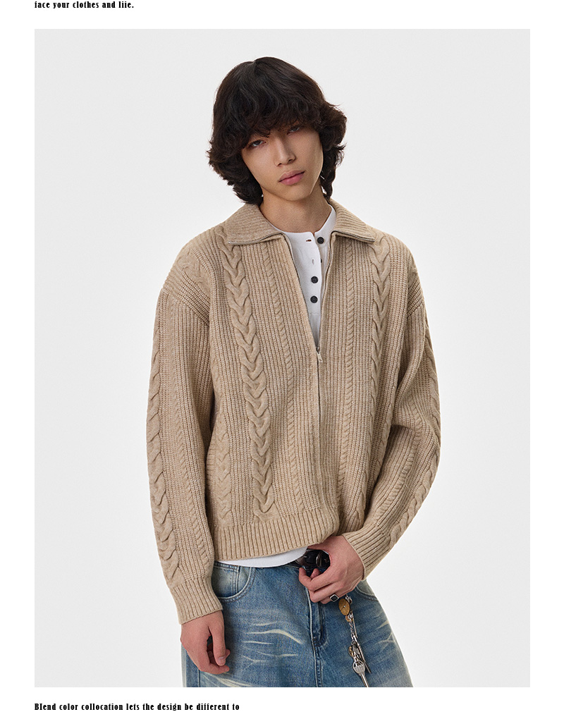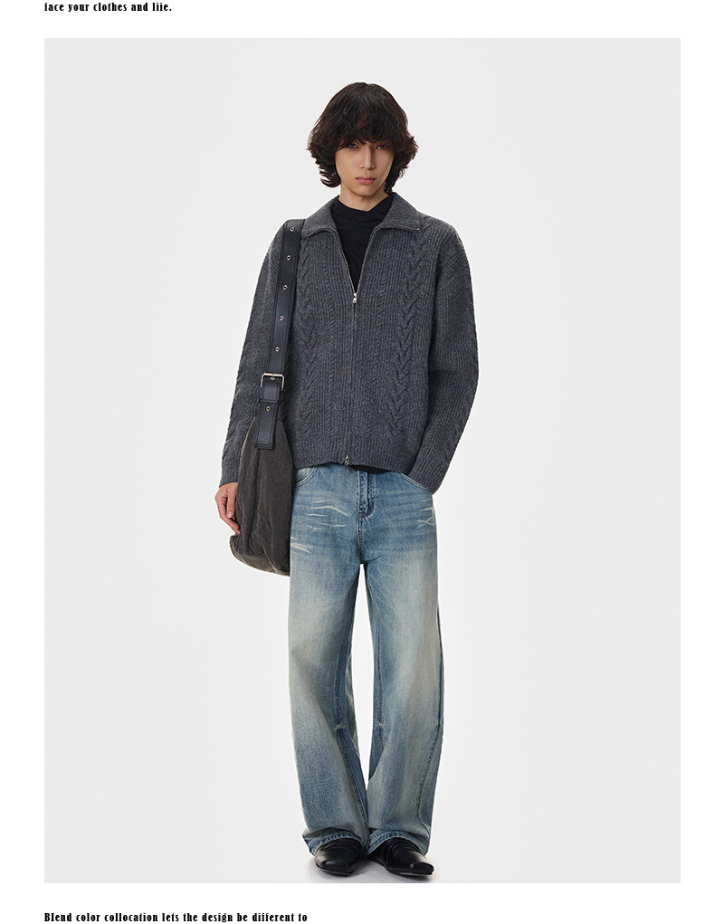 Herringbone Polo-Collar Thick Knit Cardigan WN21403