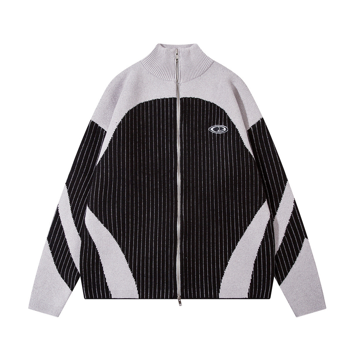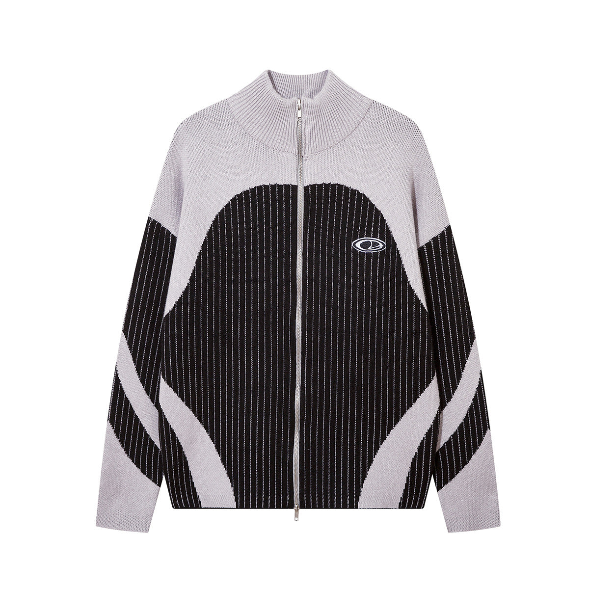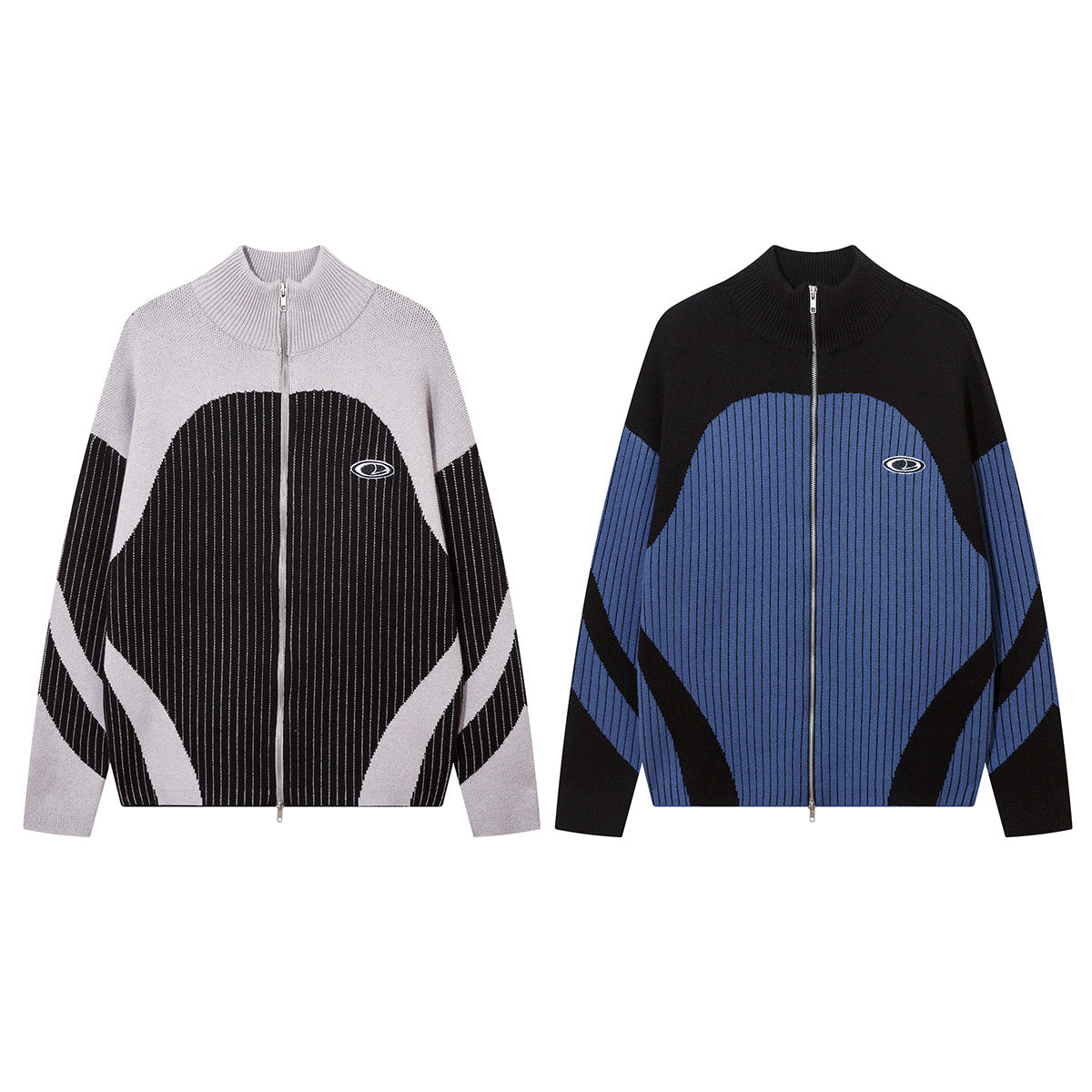 Double Zipper High-Neck Color Block Knit Cardigan WN21889