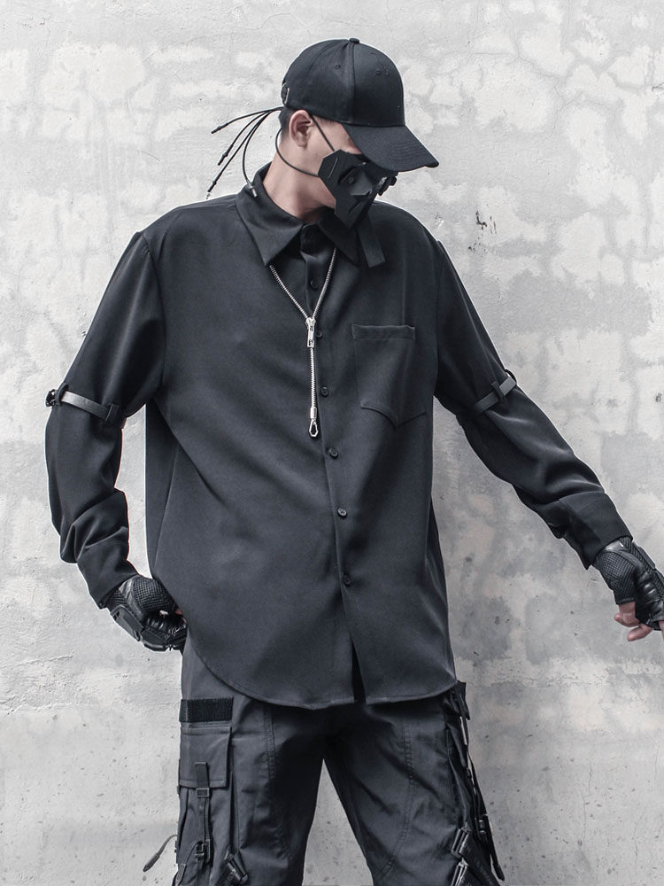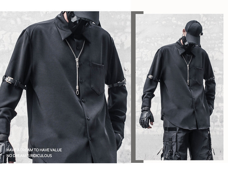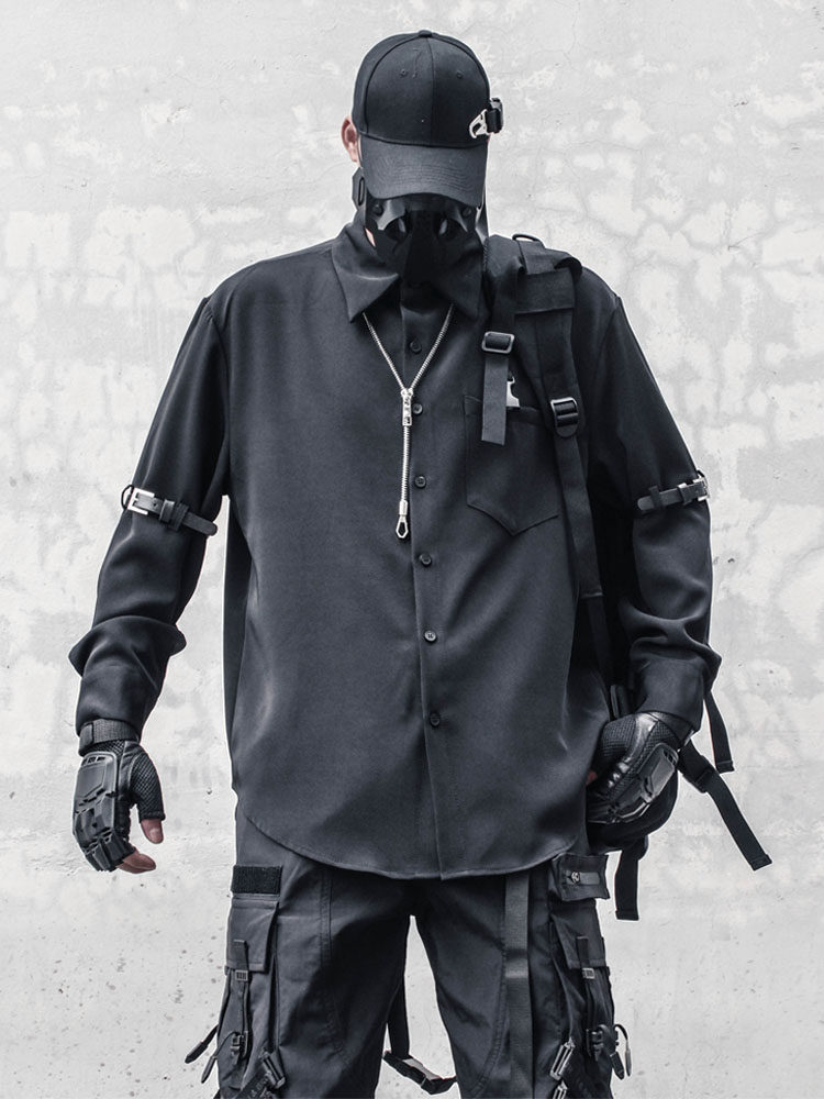 Metal Buckle Functional Long Sleeve Shirt WN22563