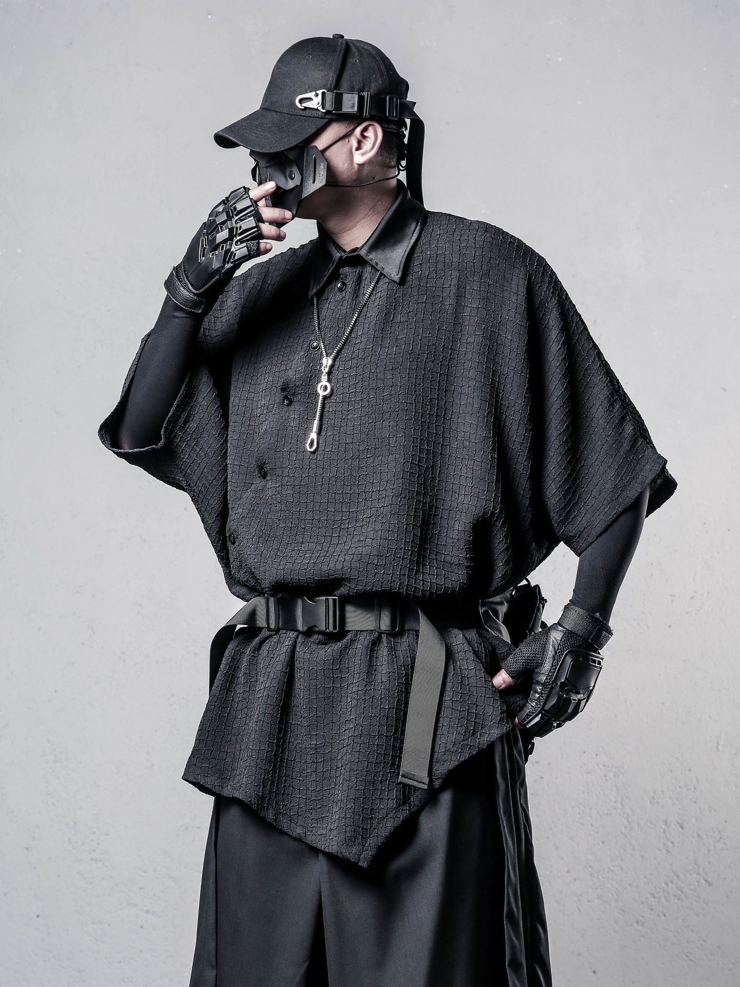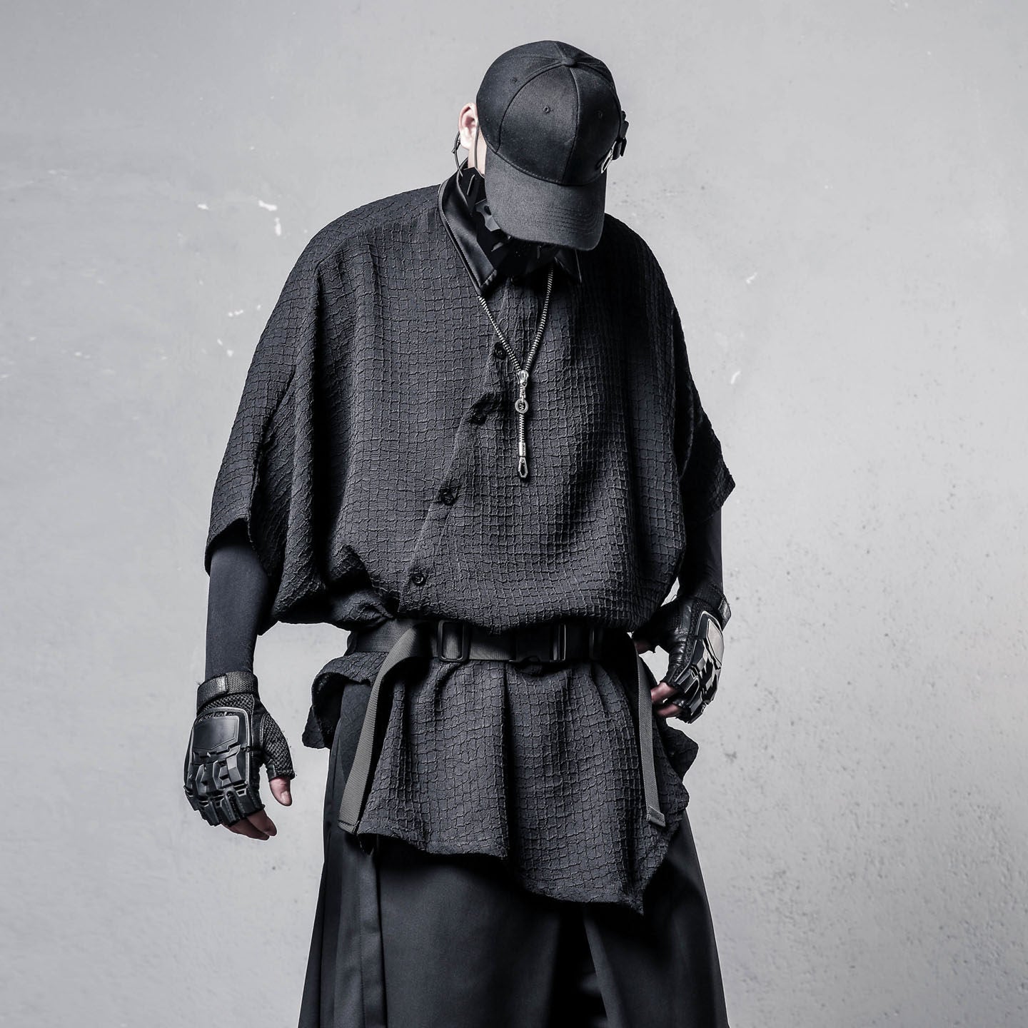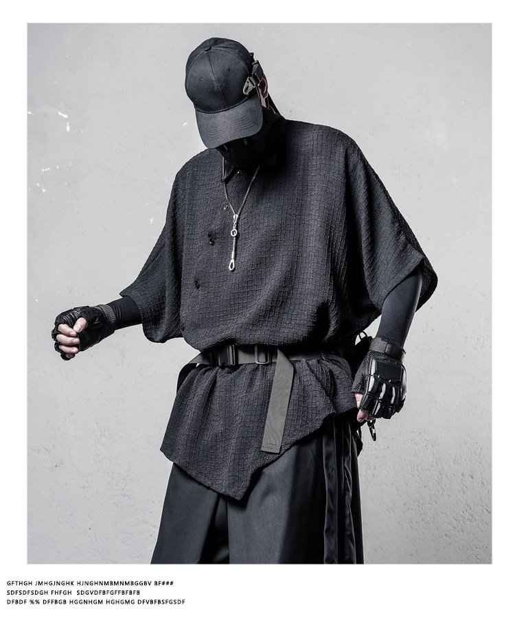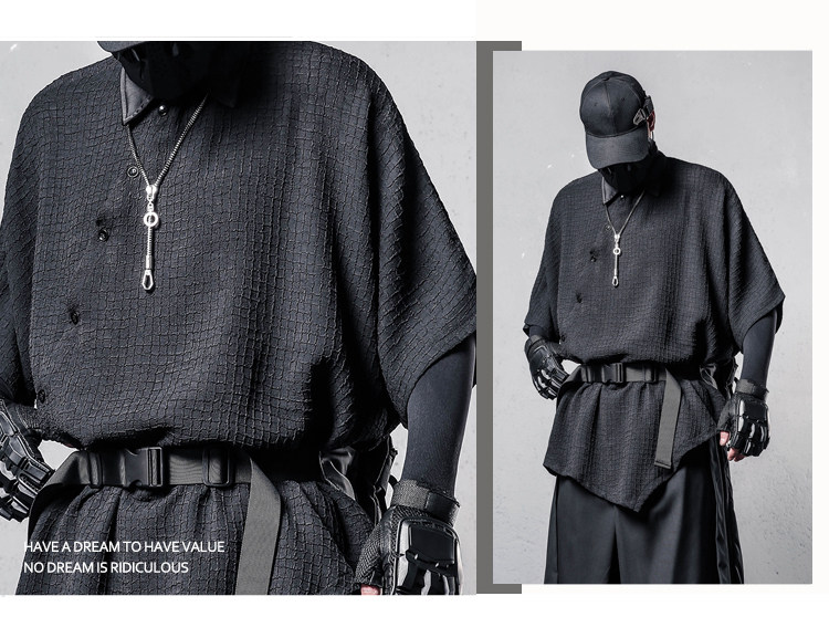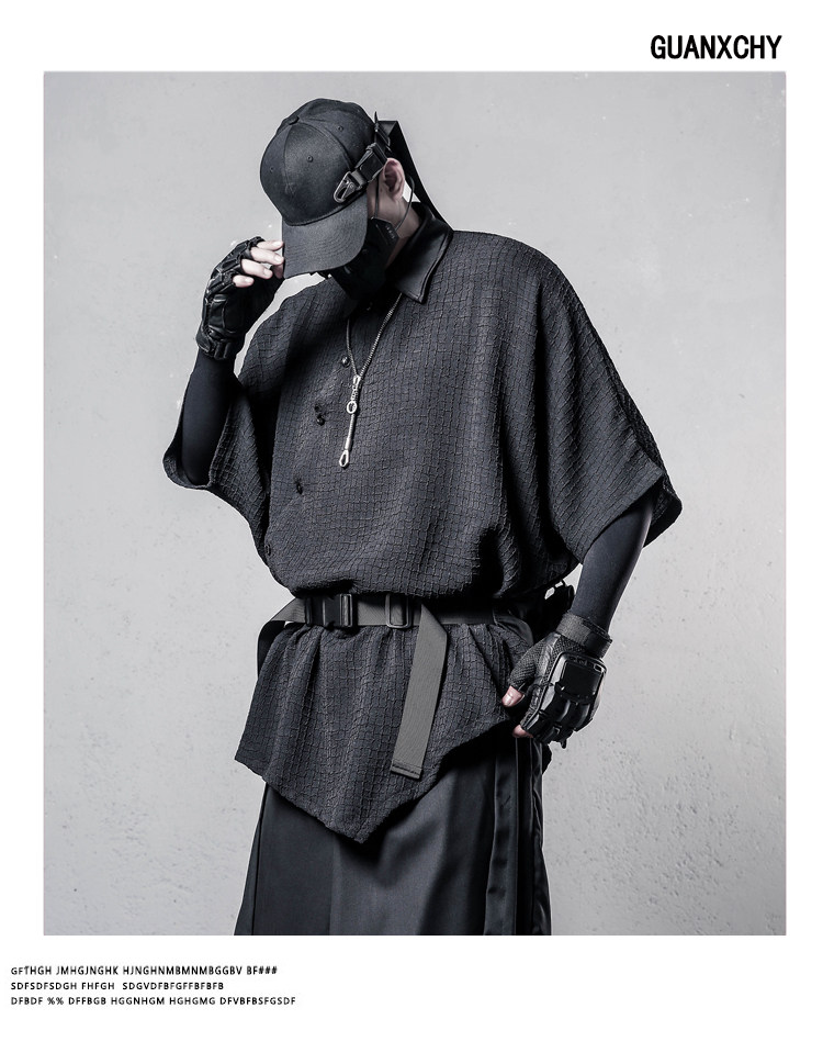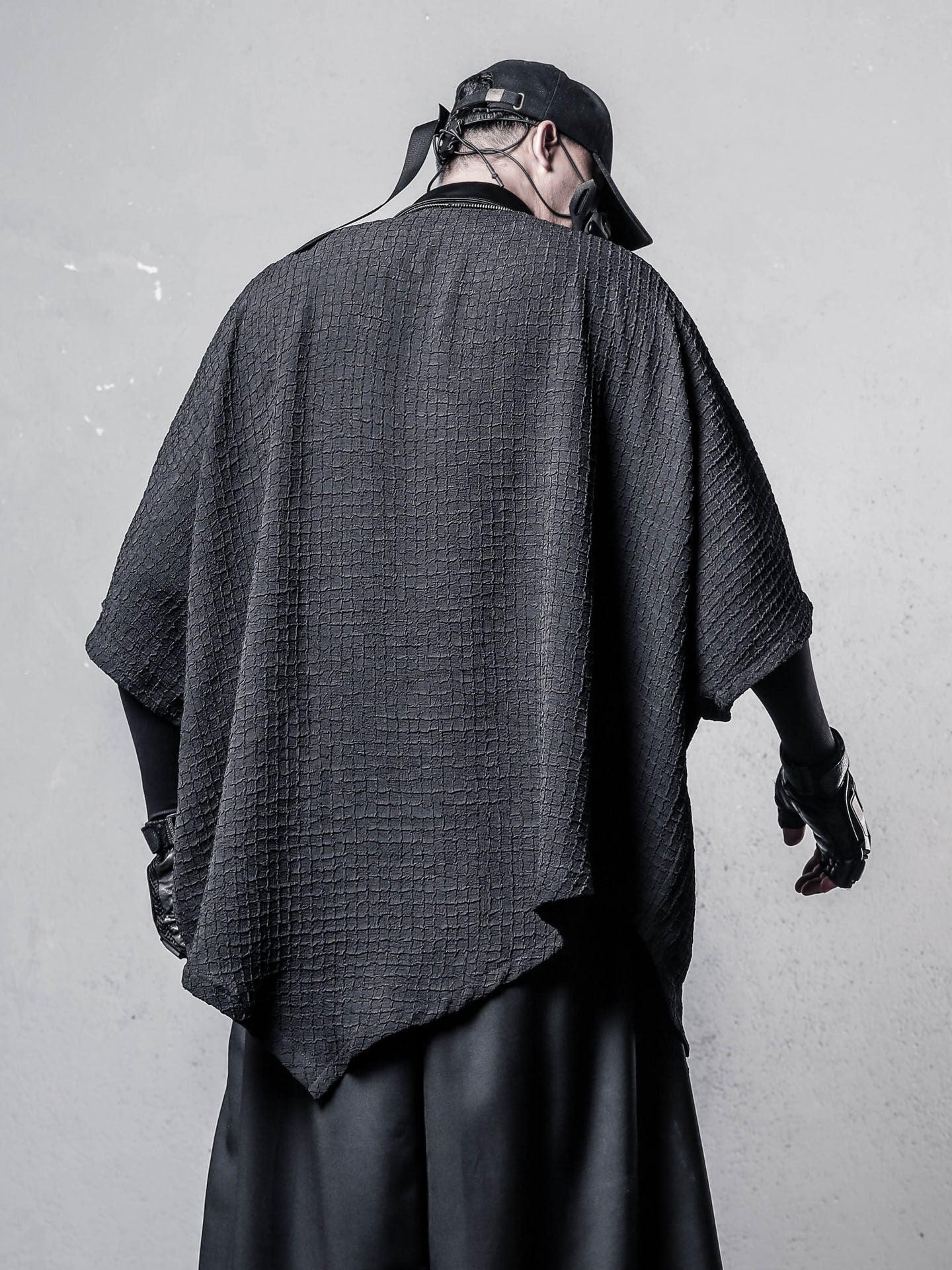 Irregular Texture Batwing Short Sleeve Shirt WN22569