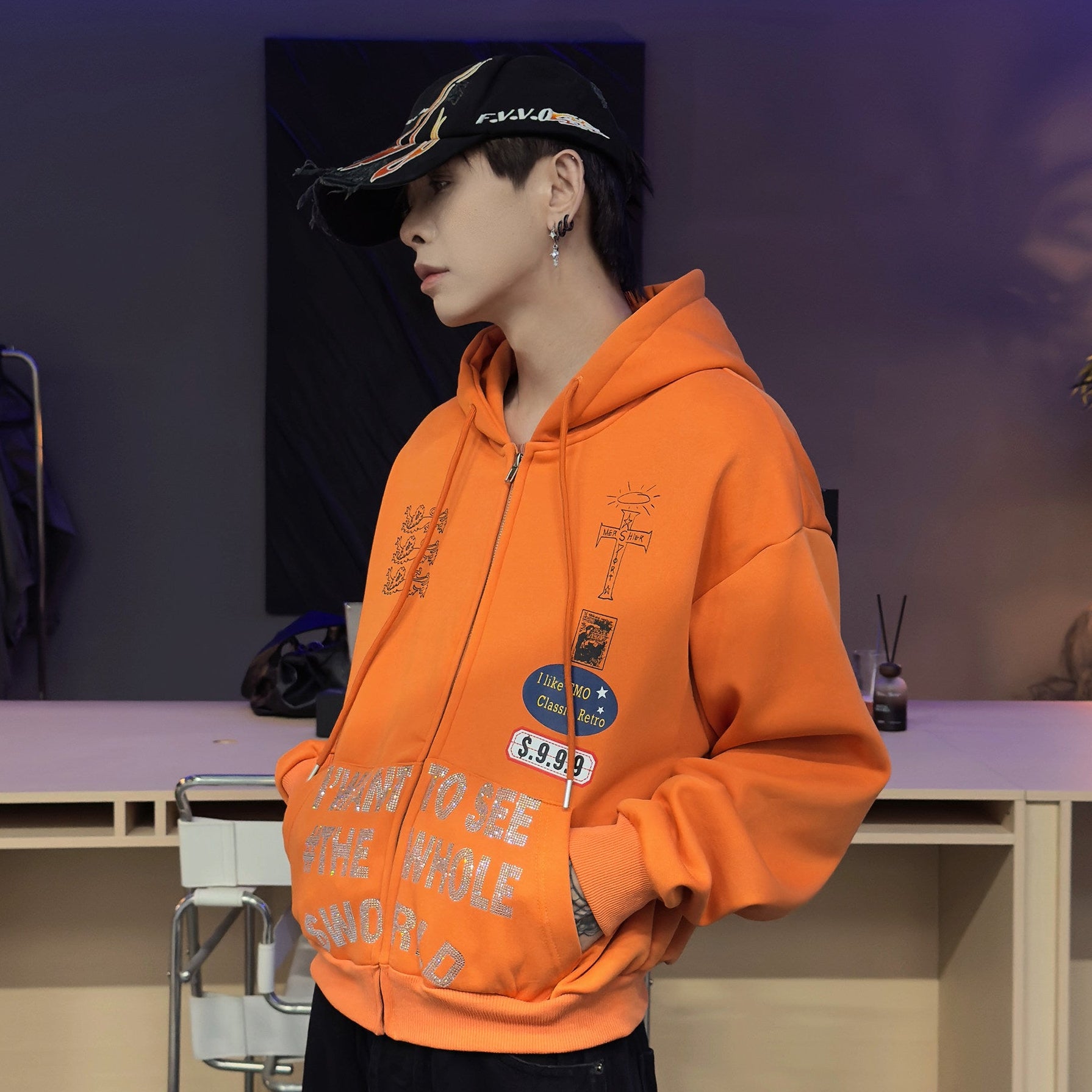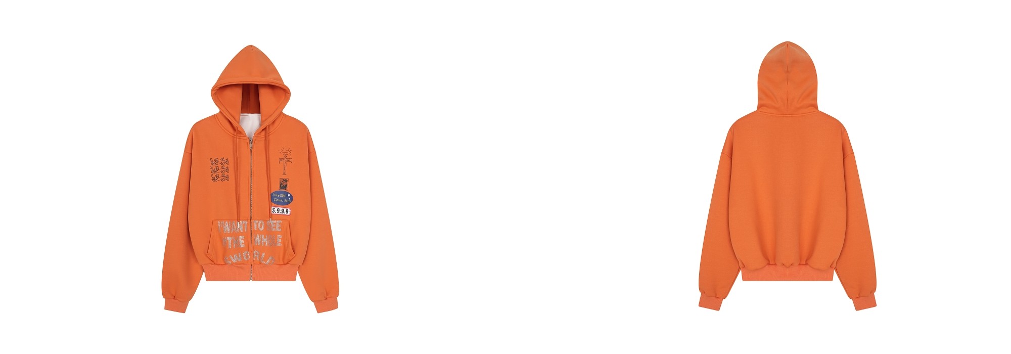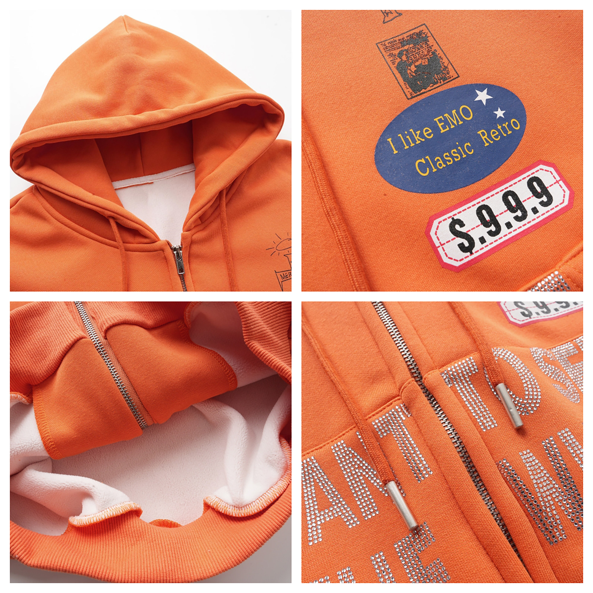 Rhinestone Design Fleece Zipper Hoodie WN22950