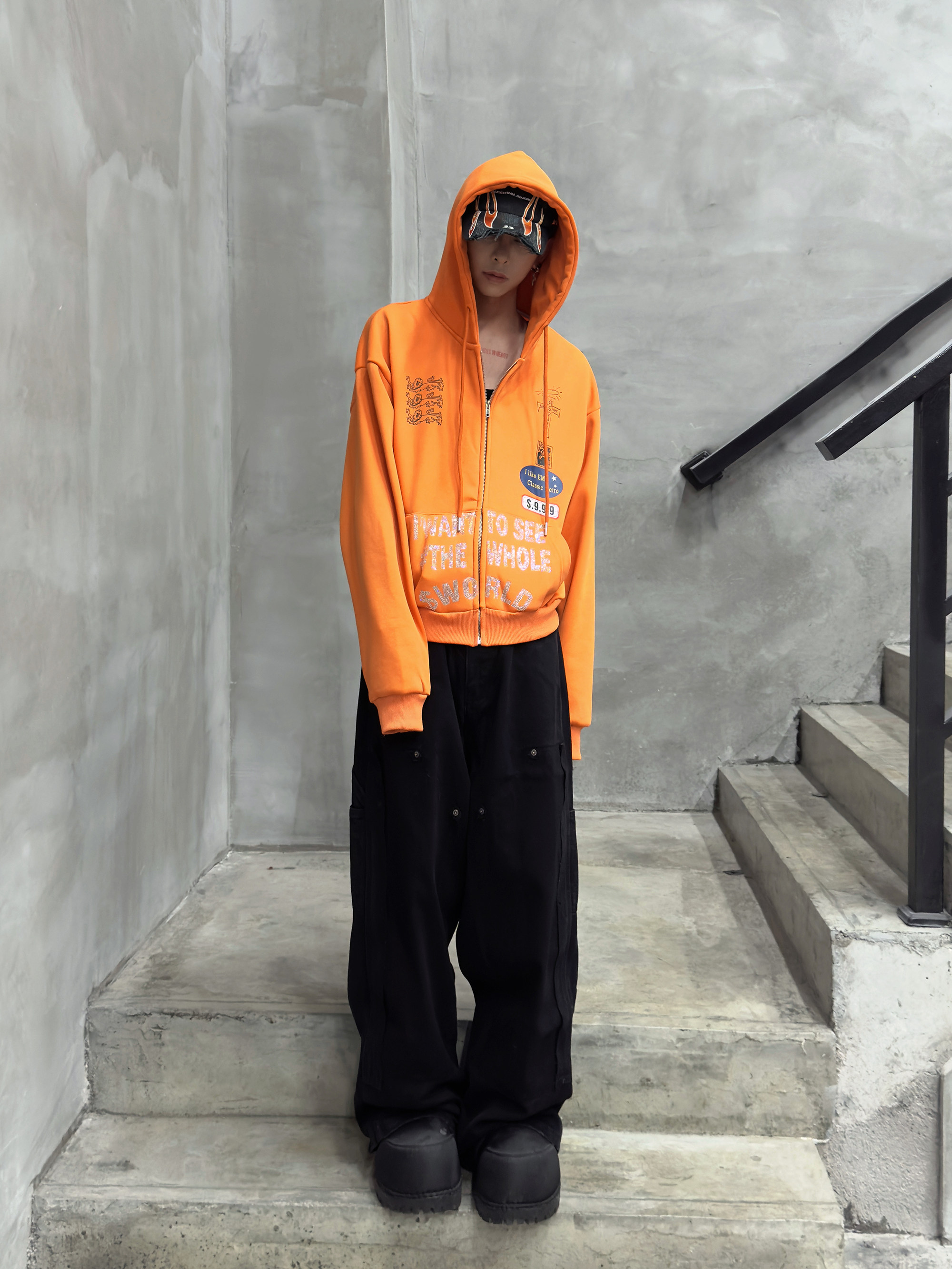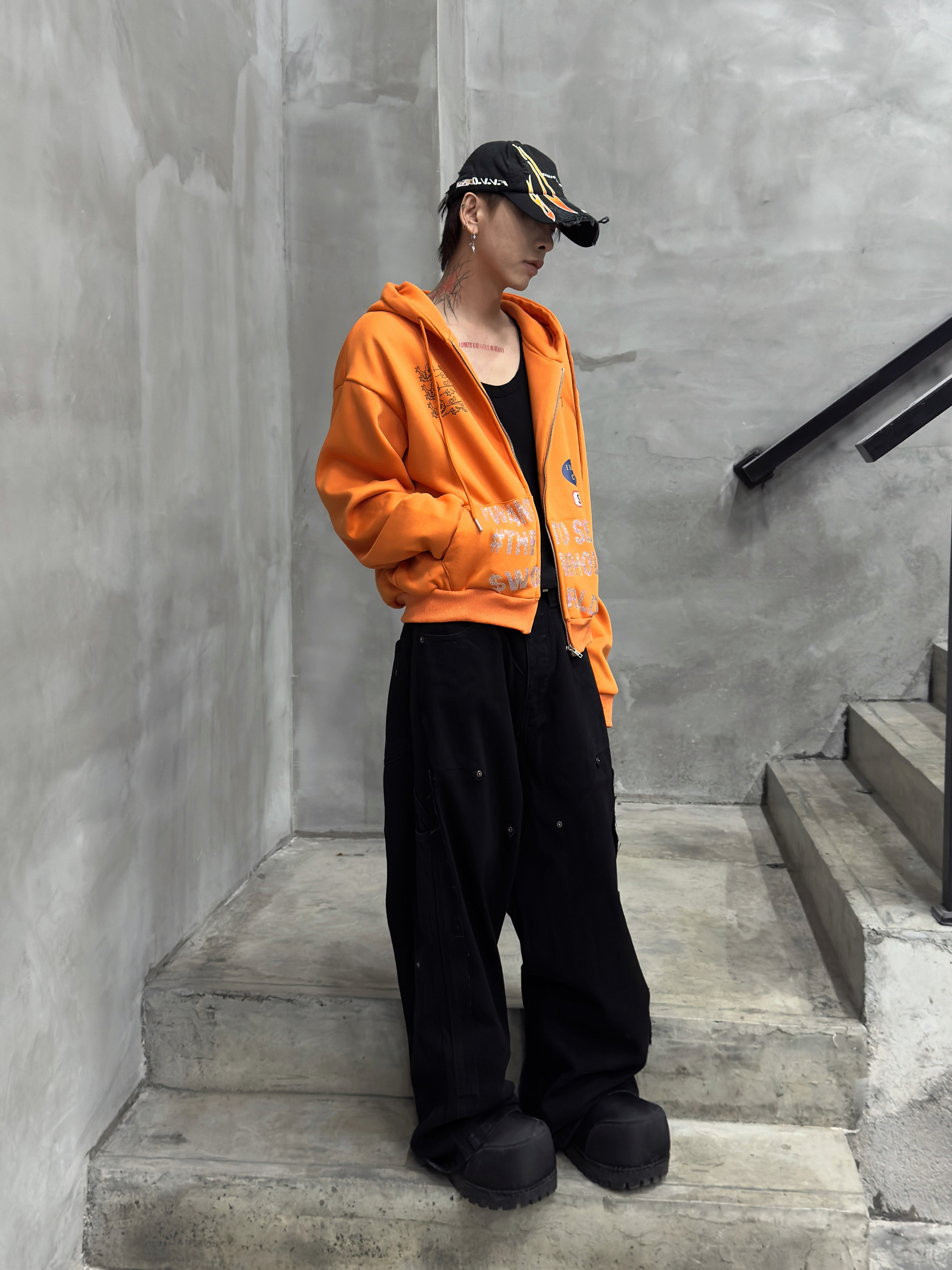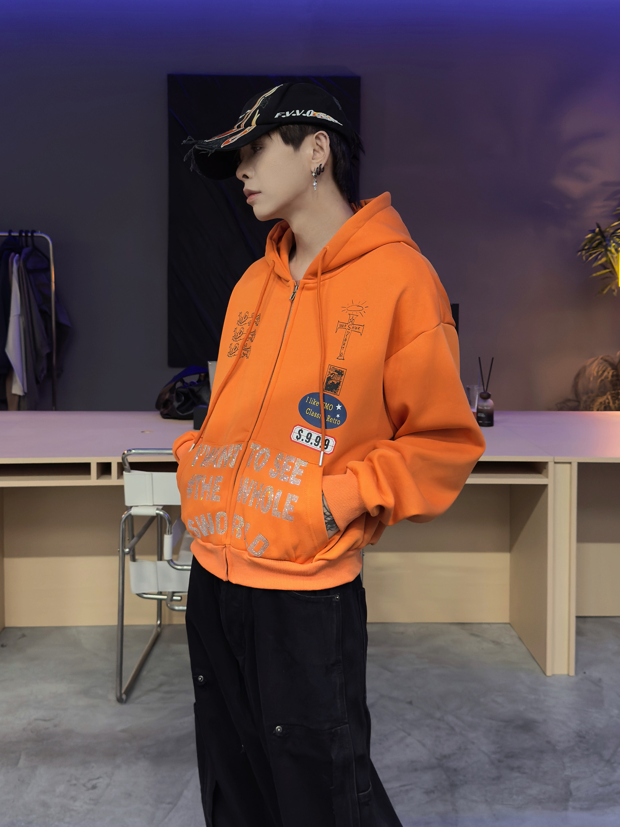 Rhinestone Design Fleece Zipper Hoodie WN22950