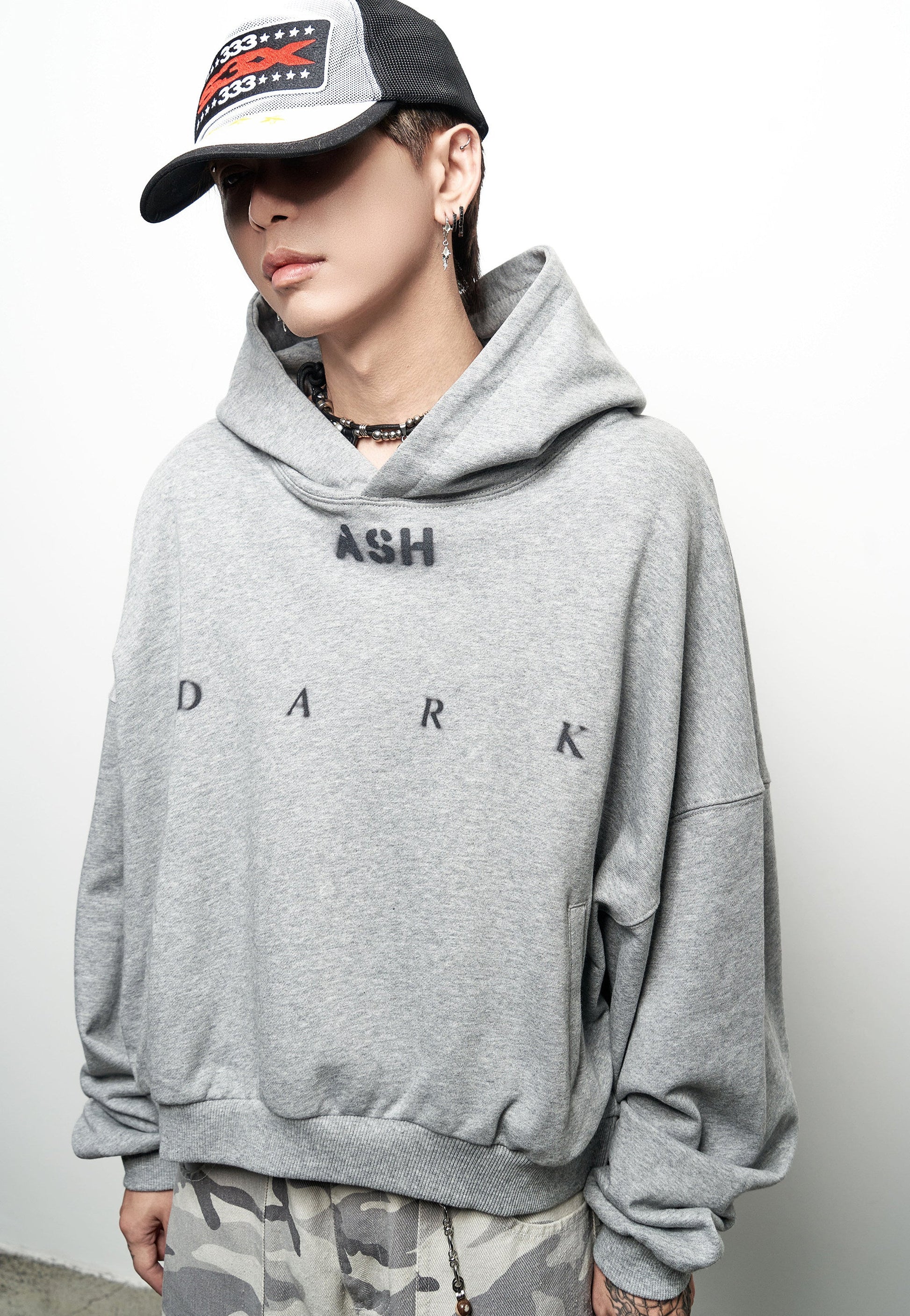 Washed Letter Print Oversize Hoodie WN22964
