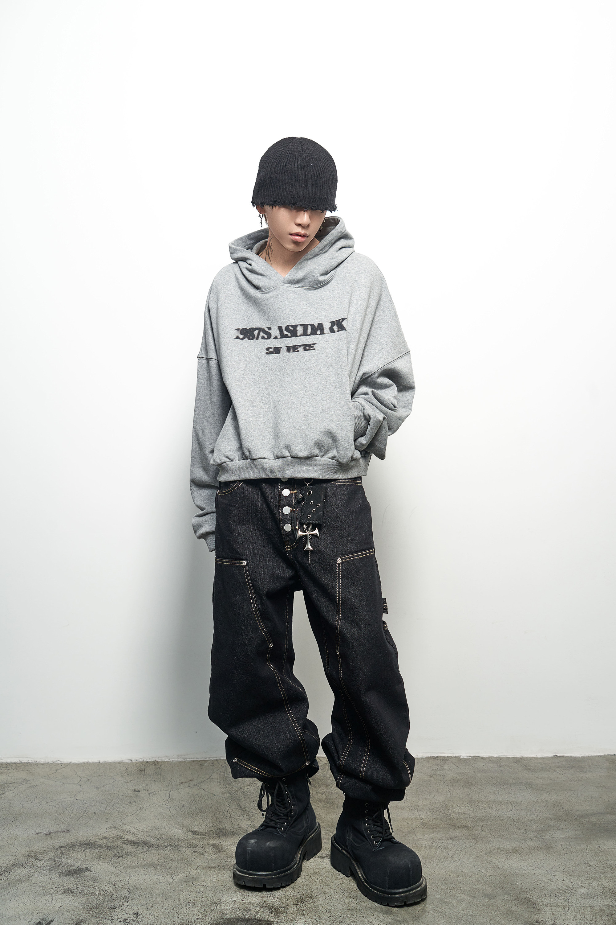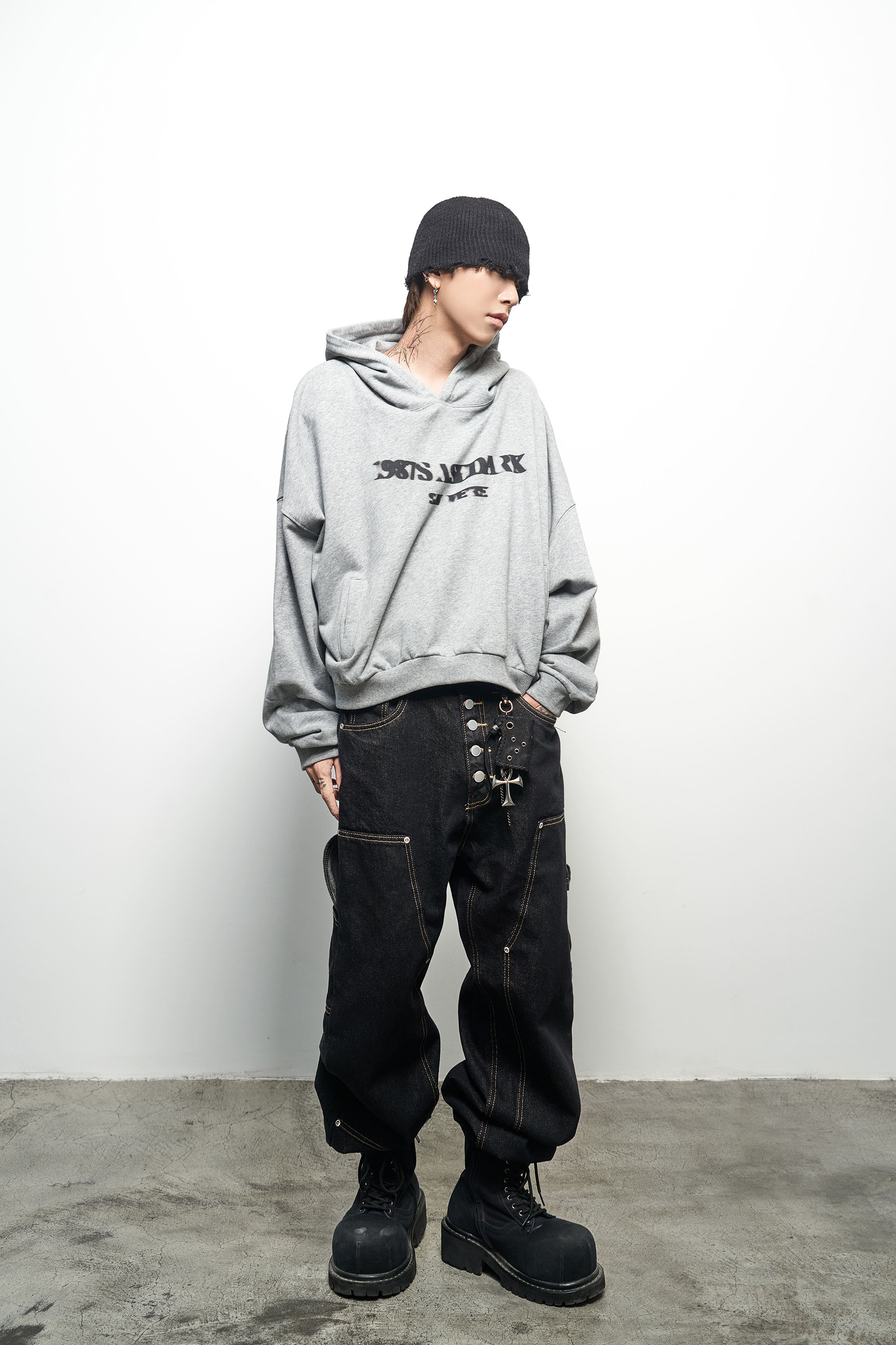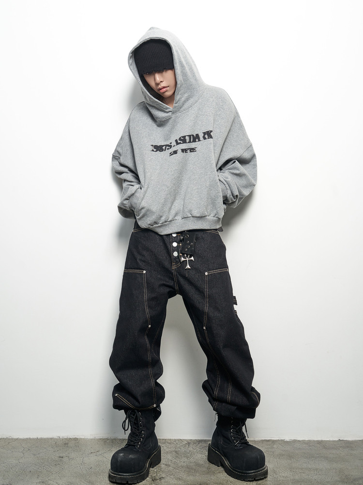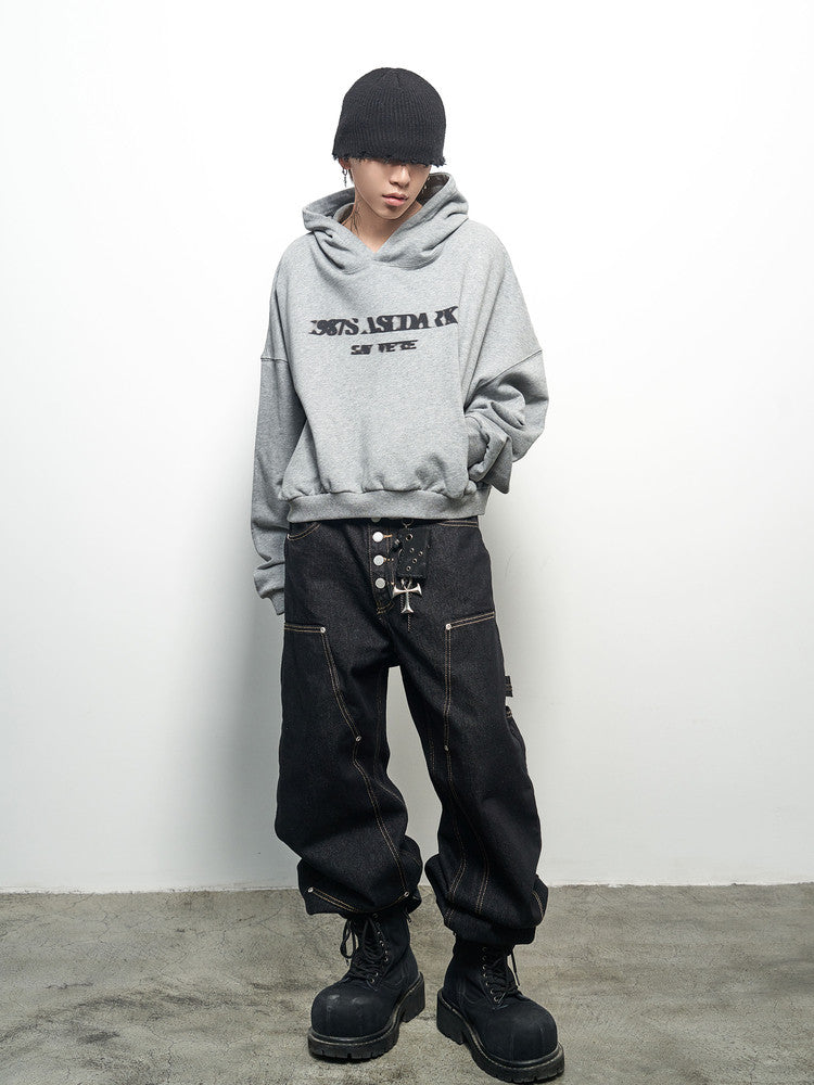 Letter Print Oversize Cropped Hoodie WN22973