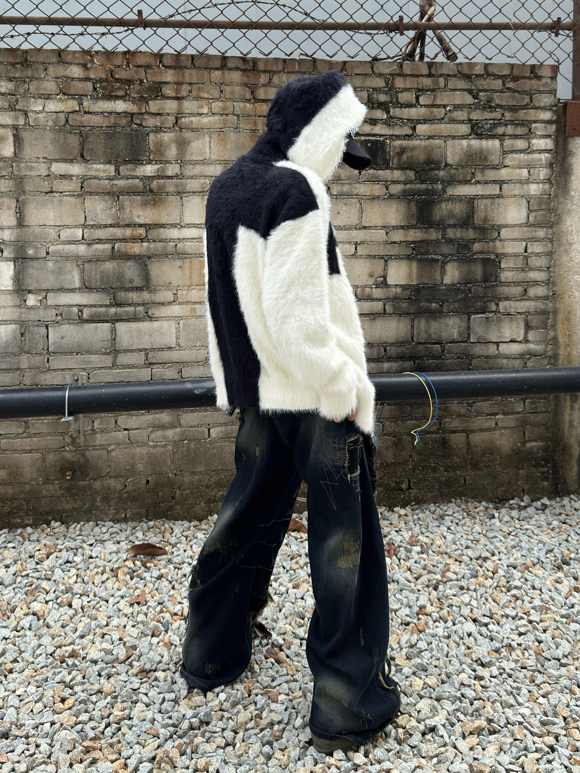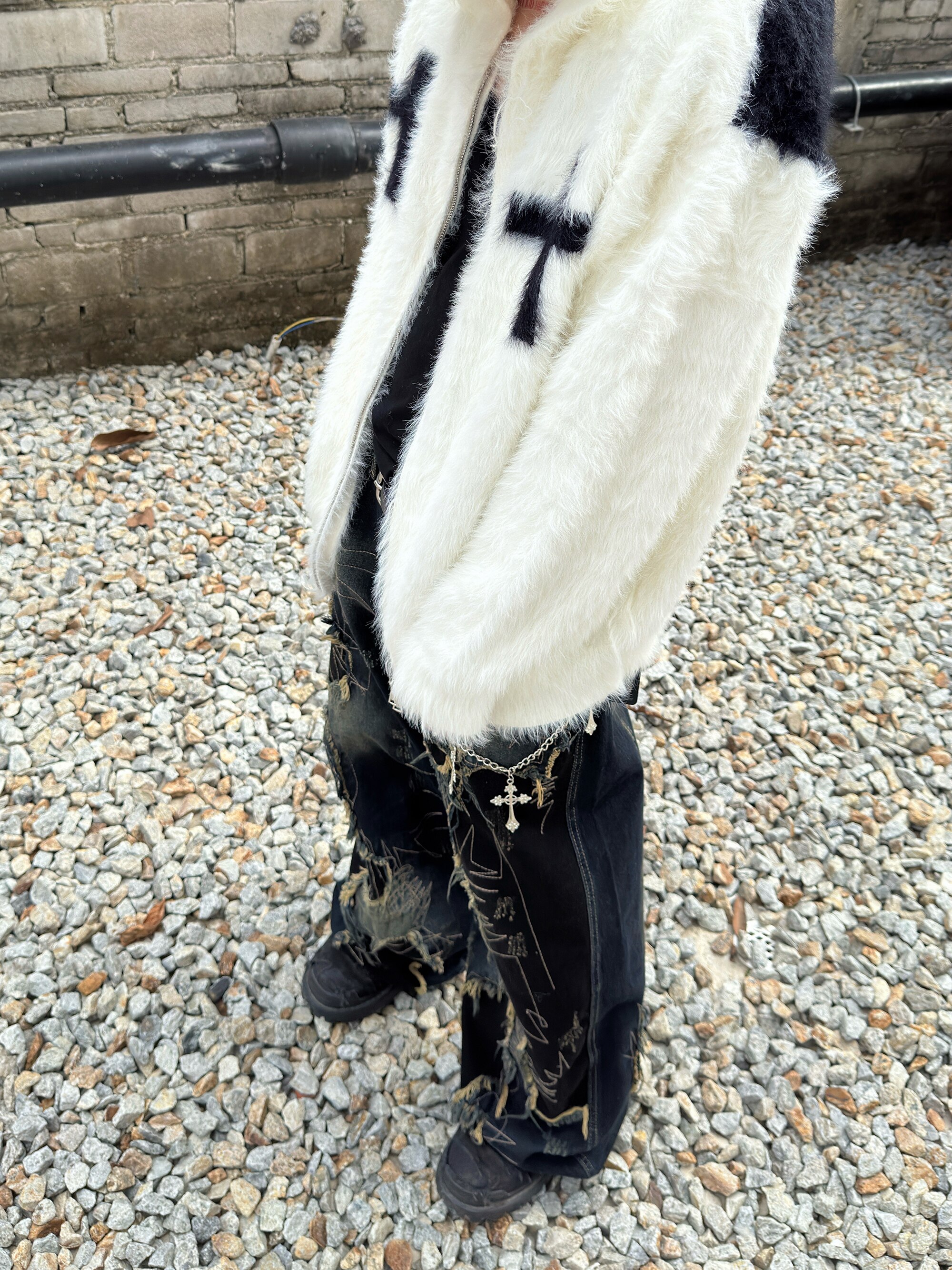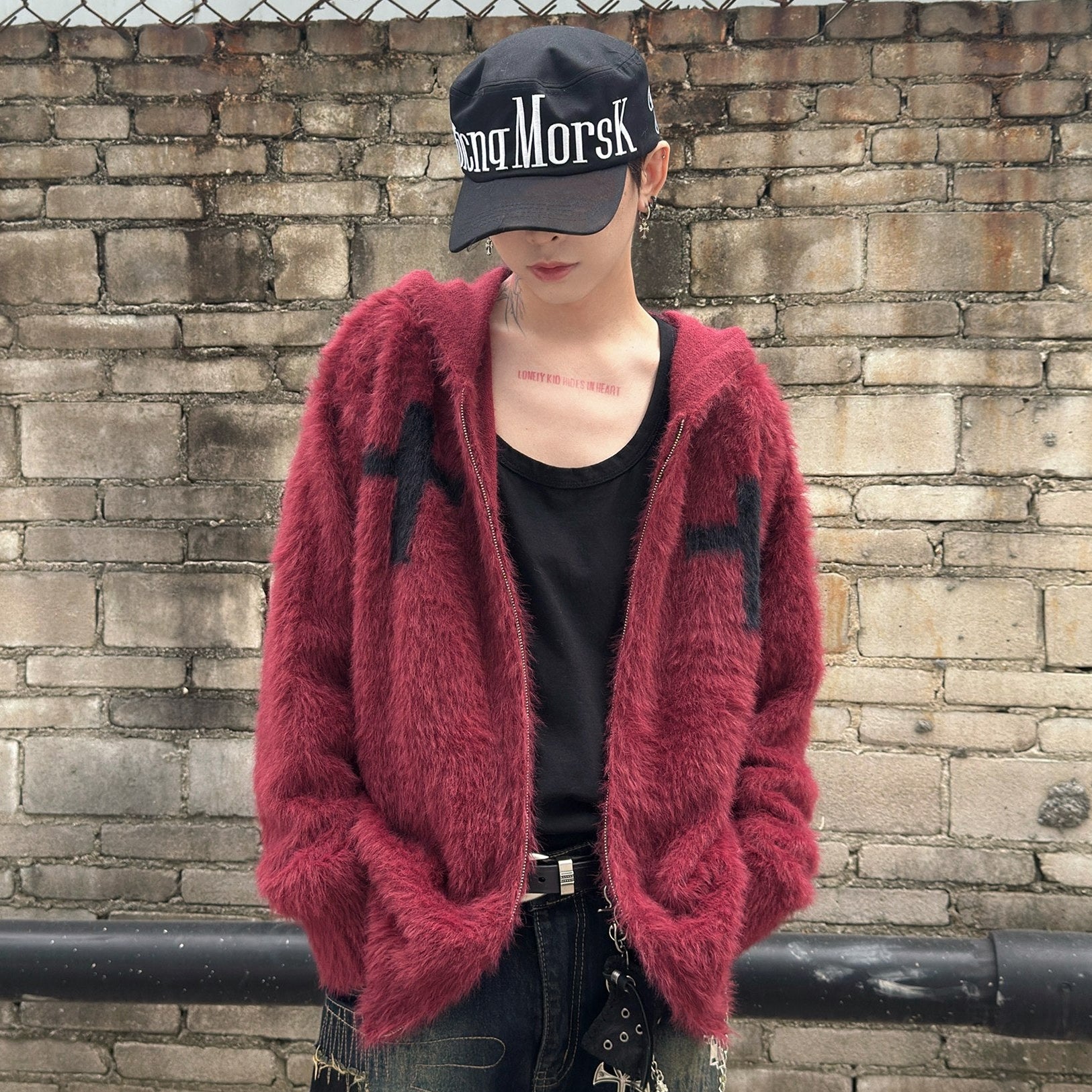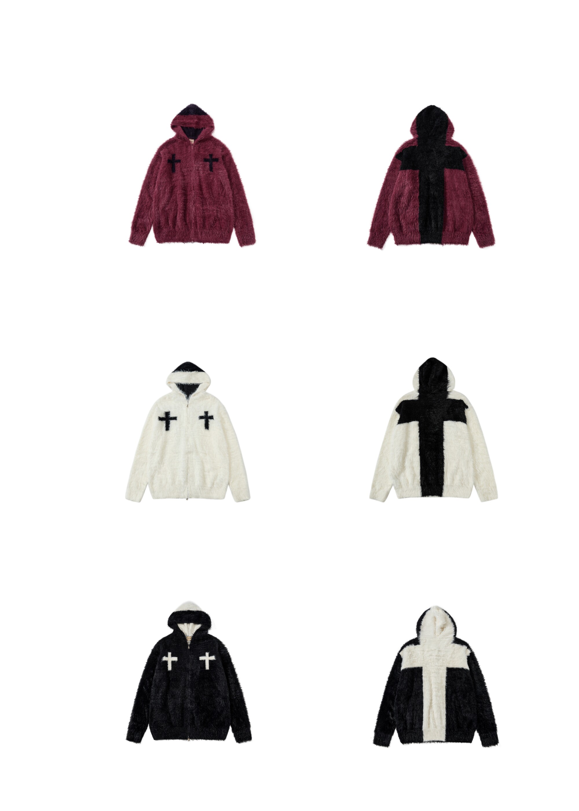 Cross Fake Mohair Oversize Zipper Hoodie WN22989
