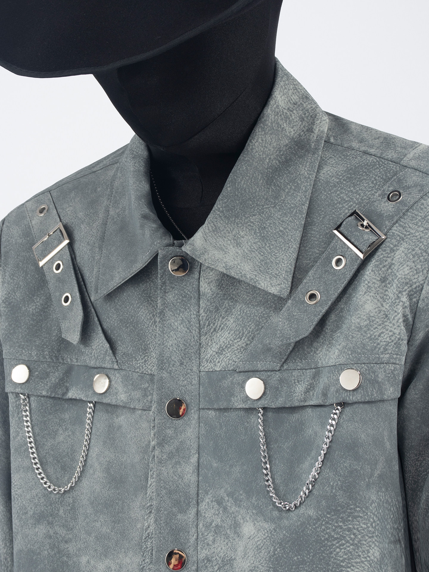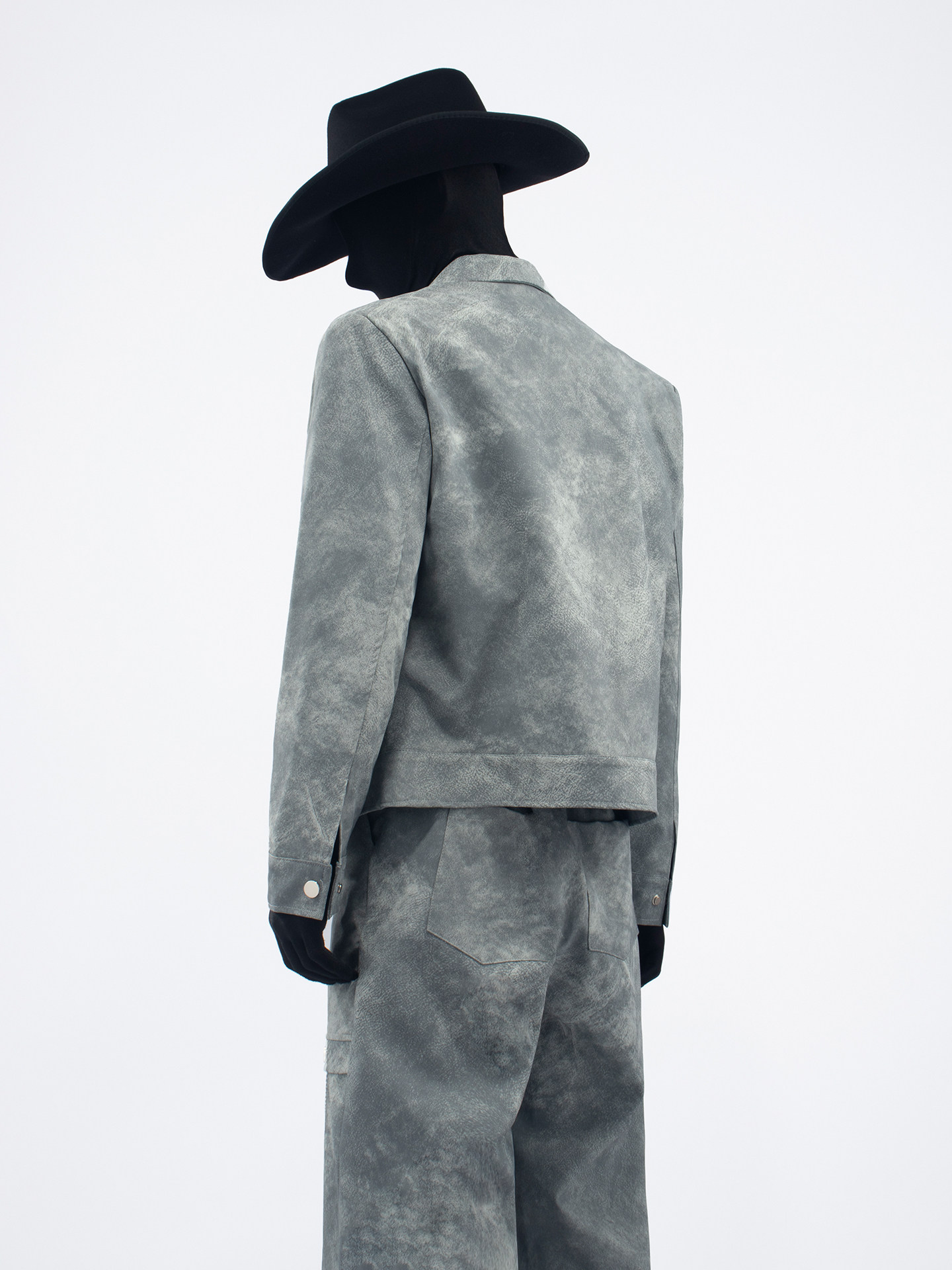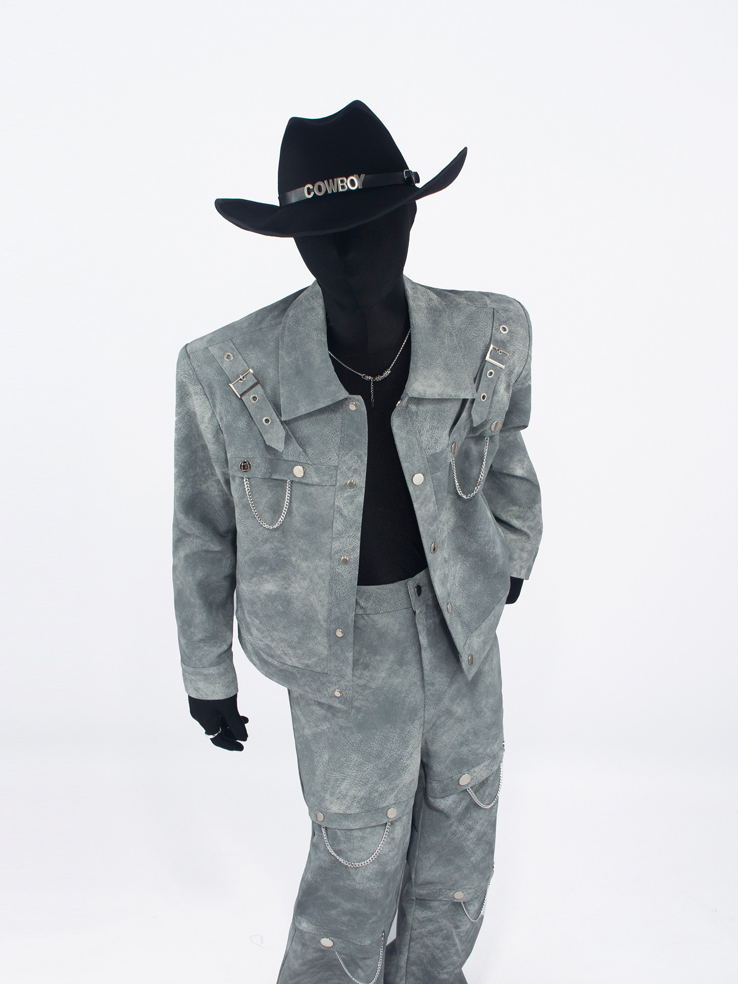Chain Decor PU Leather Short Jacket & Wide Leg PU Leather Pants Setup WN23678