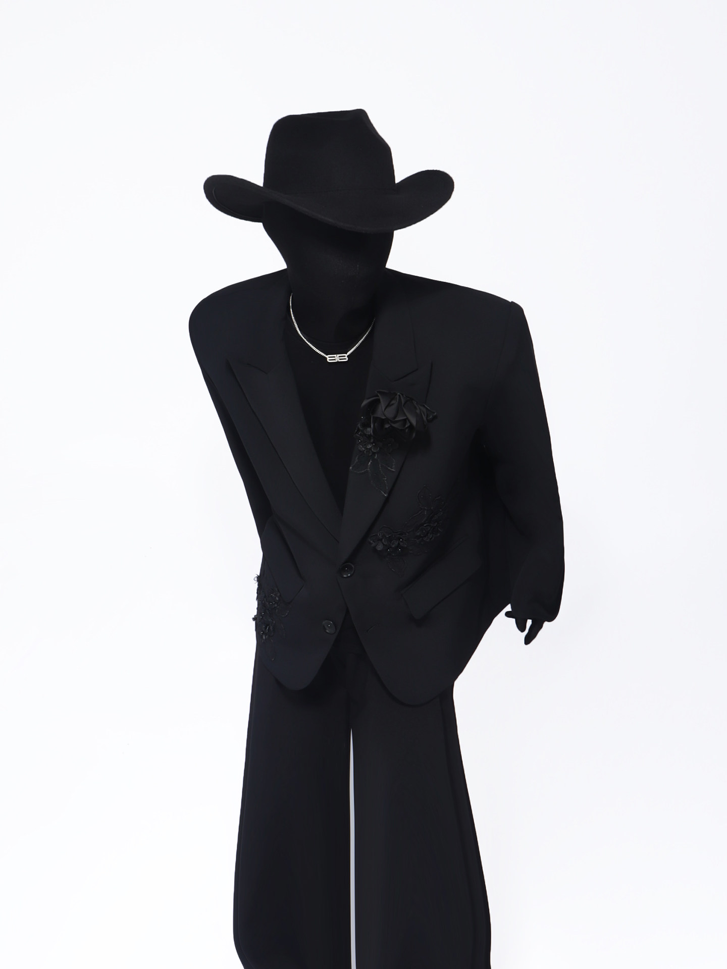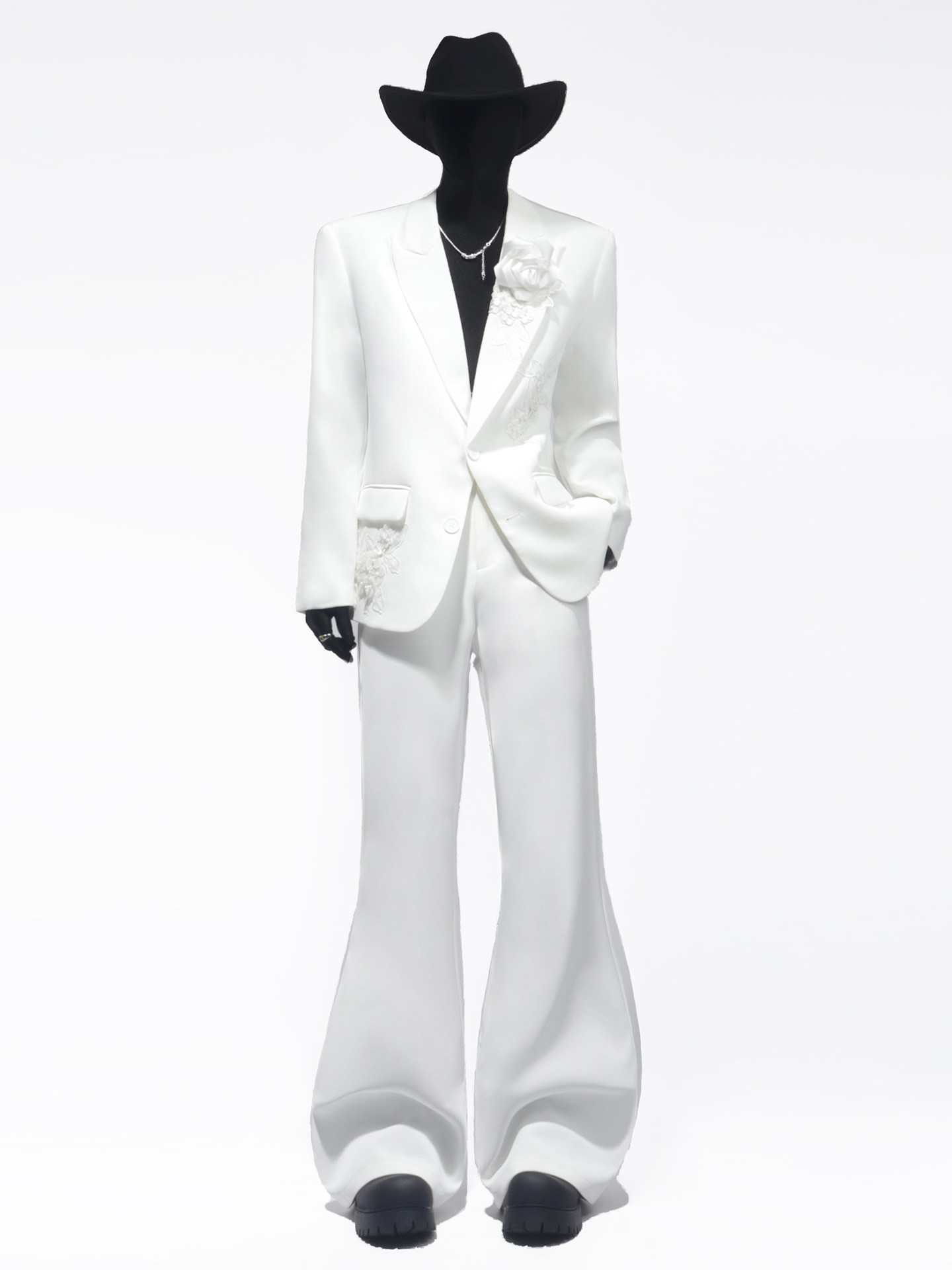 Flower Decor Tailored Jacket & Flare Trousers Setup WN23716