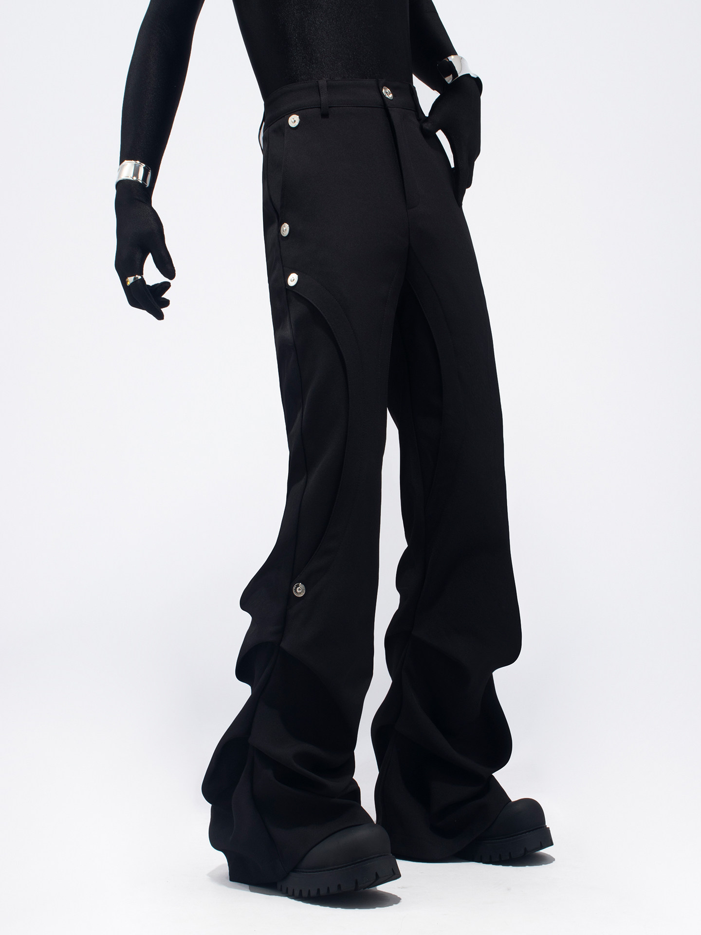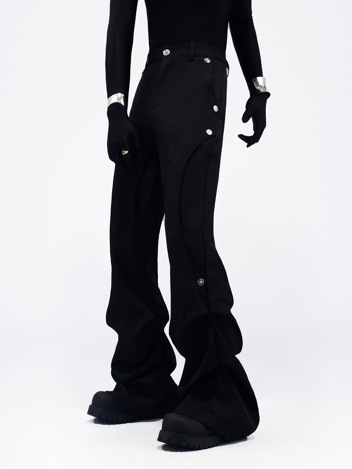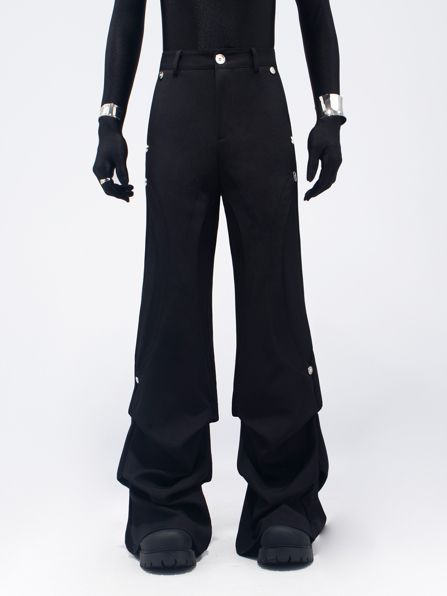 Pleats Rivet Design Flare Trousers WN23764