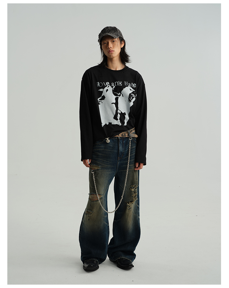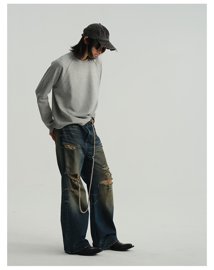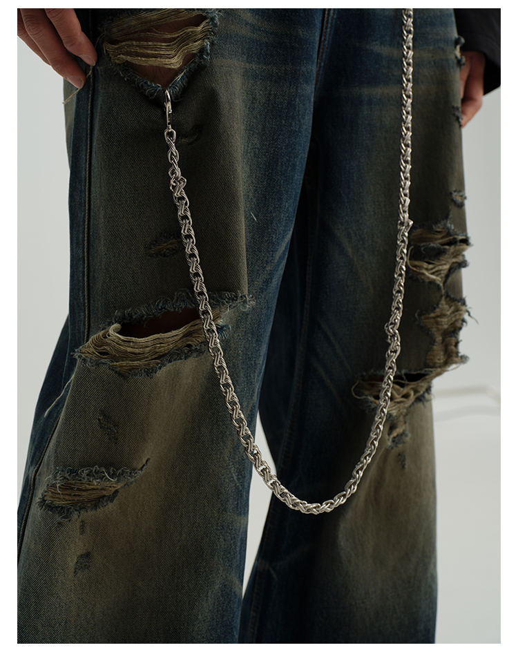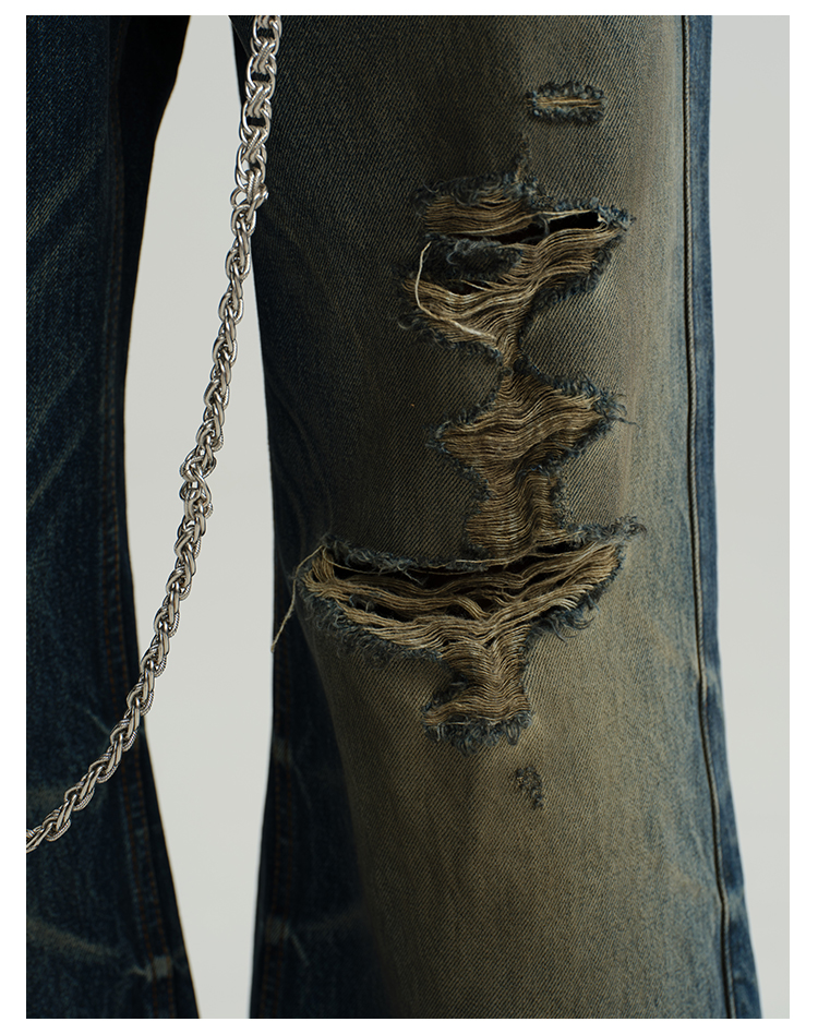 Damage Wide-Leg Straight Denim Jeans WN8556