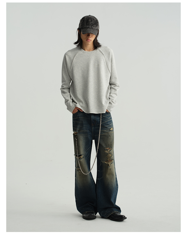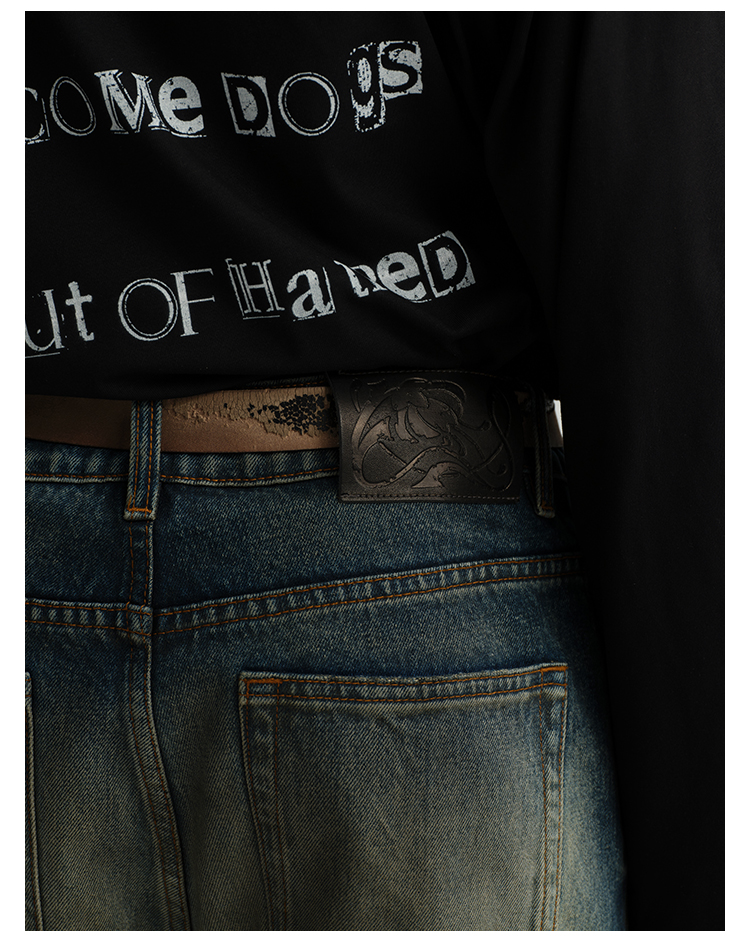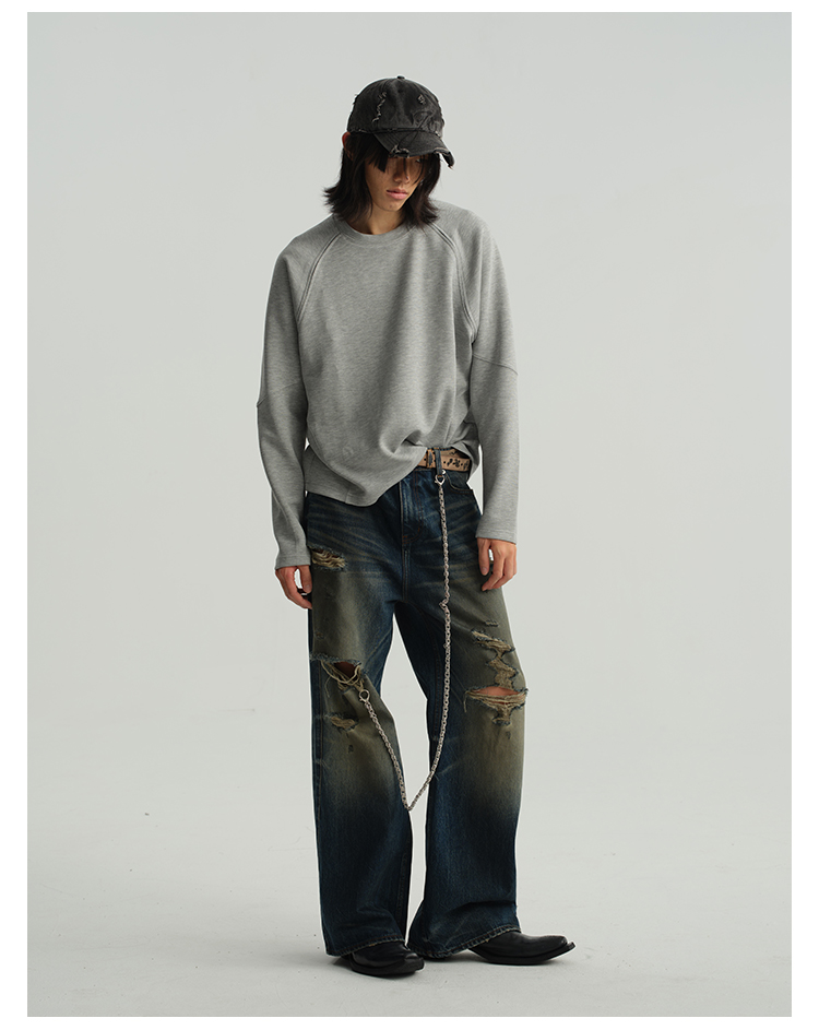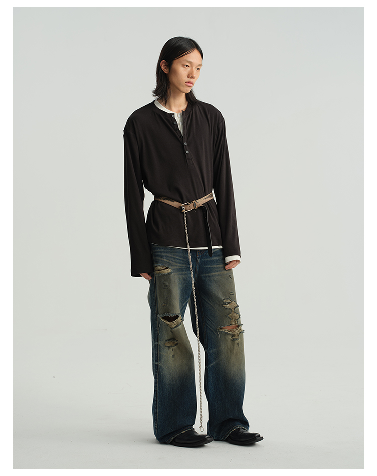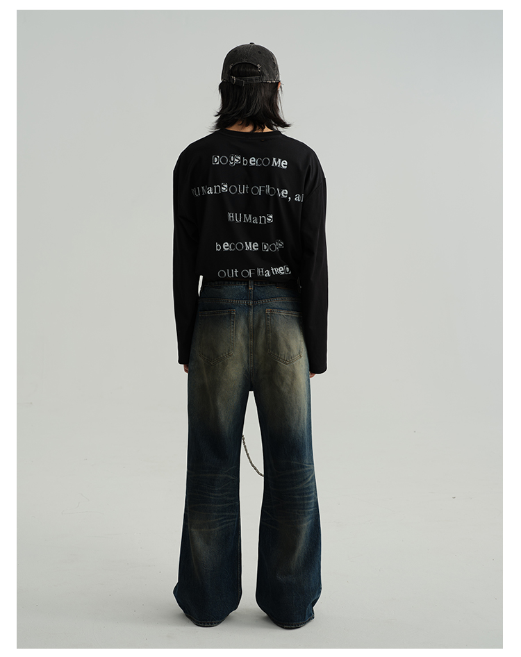 Damage Wide-Leg Straight Denim Jeans WN8556