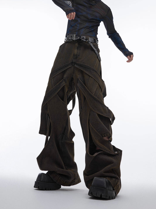 Three-dimensional Wrapping Wide Leg Workwear Denim Jeans WN7485