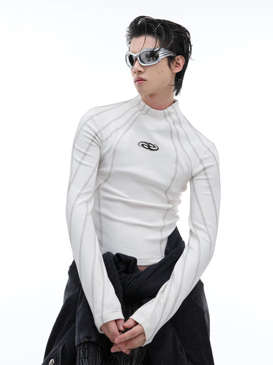 Stand Neck Metal Decoration Slim Fit Long Sleeve T-shirt WN8033