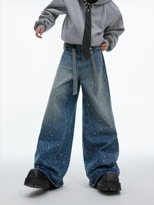 Rinestone Design Wide Leg Denim Jeans WN8037