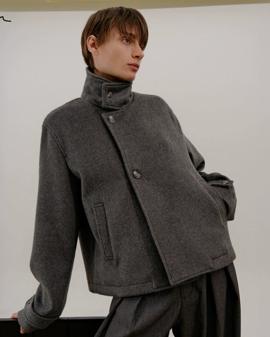 Standing-Collar Double-Breasted Wool Coat WN21642