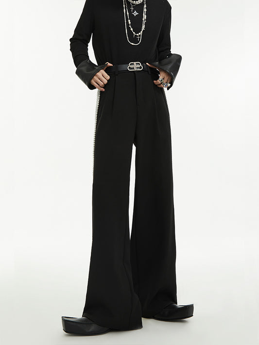Pearl Detail Draping Wide Leg Trousers WN15446