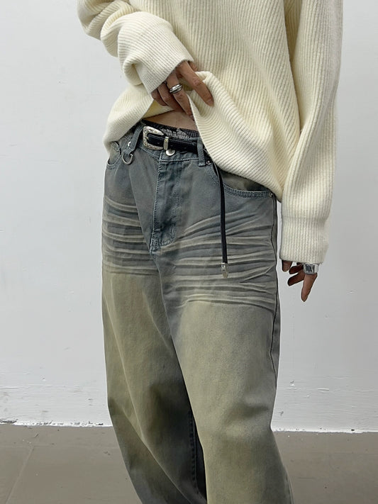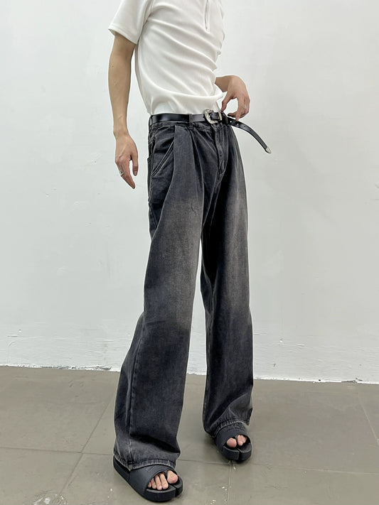 High Waist Front Pleats Straight Leg Denim Jeans WN7347