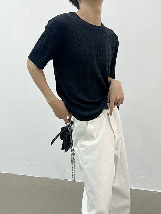Round Neck Short Sleeve Knit T-shirt WN7343