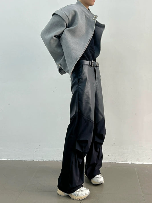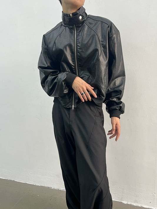 Stand Neck Shoulder Pad Short PU Leather Jacket WN5037