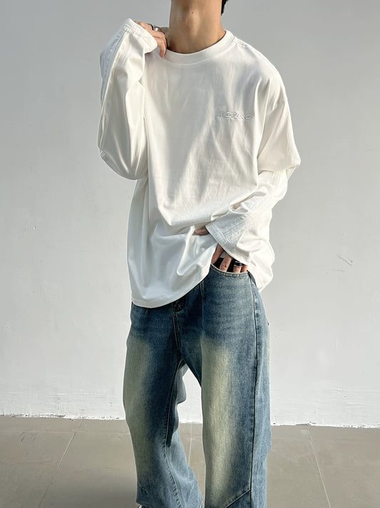 Pleats Design Round Neck Long Sleeve T-Shirt WN5046