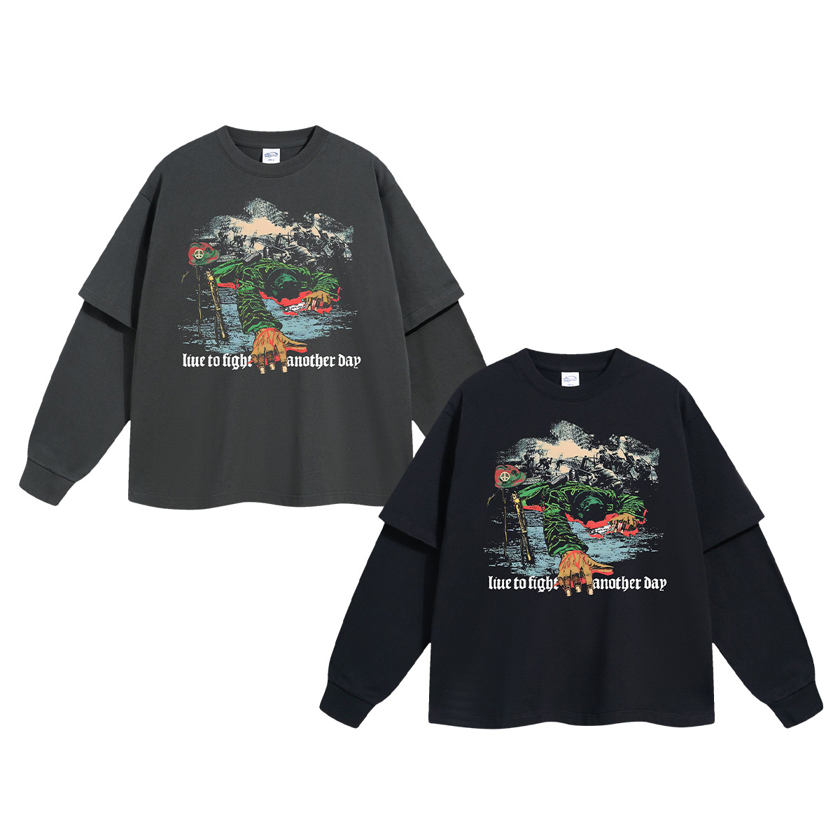 Fake Layered White Ink Digital Print Long Sleeve T-Shirt WN10003