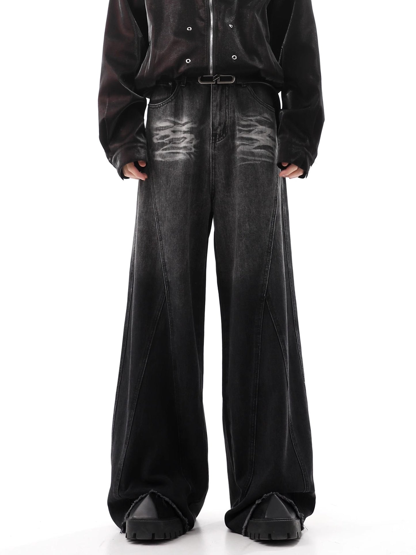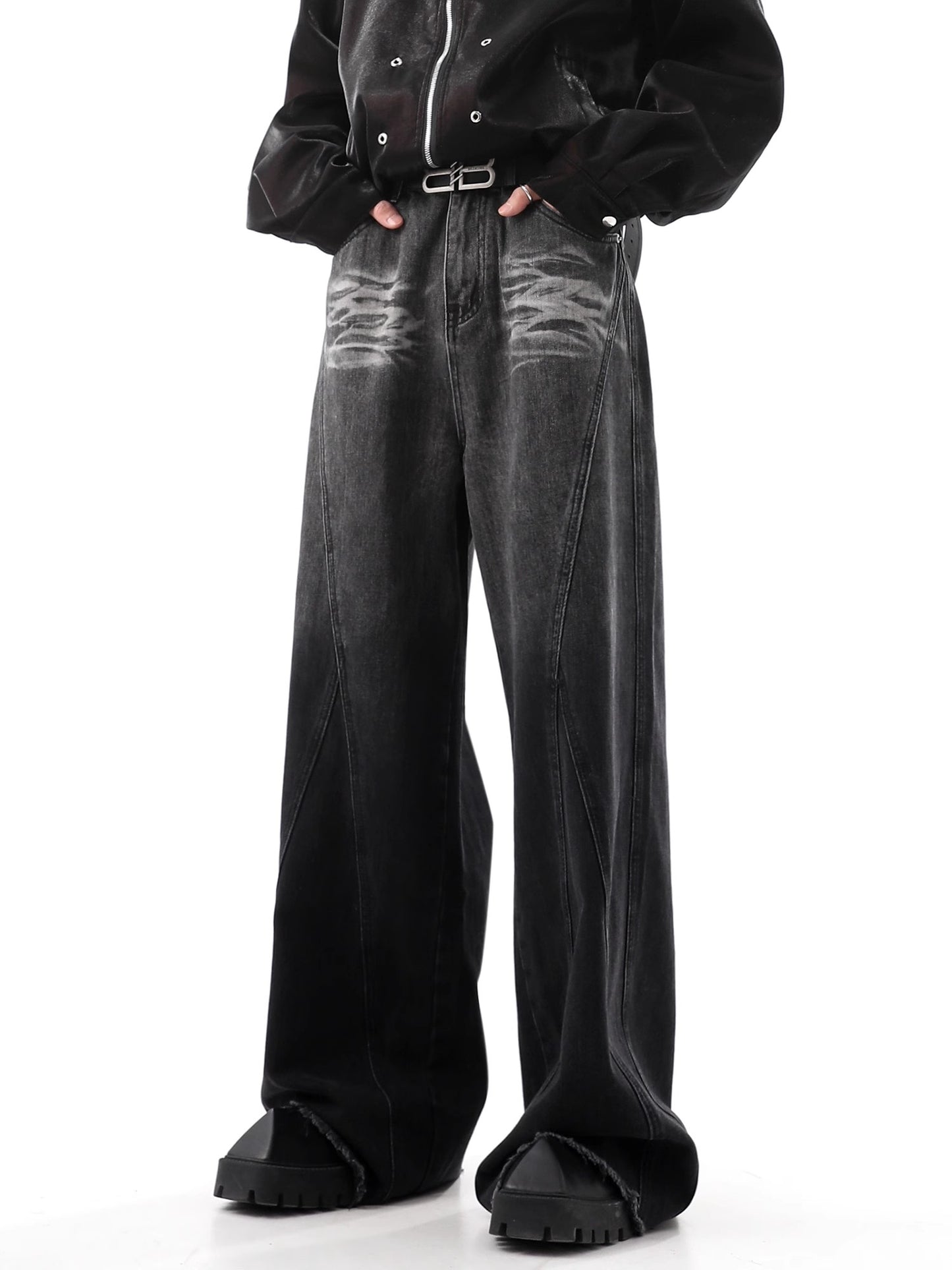 Washed Drape Wide-Leg Denim Jeans WN10428