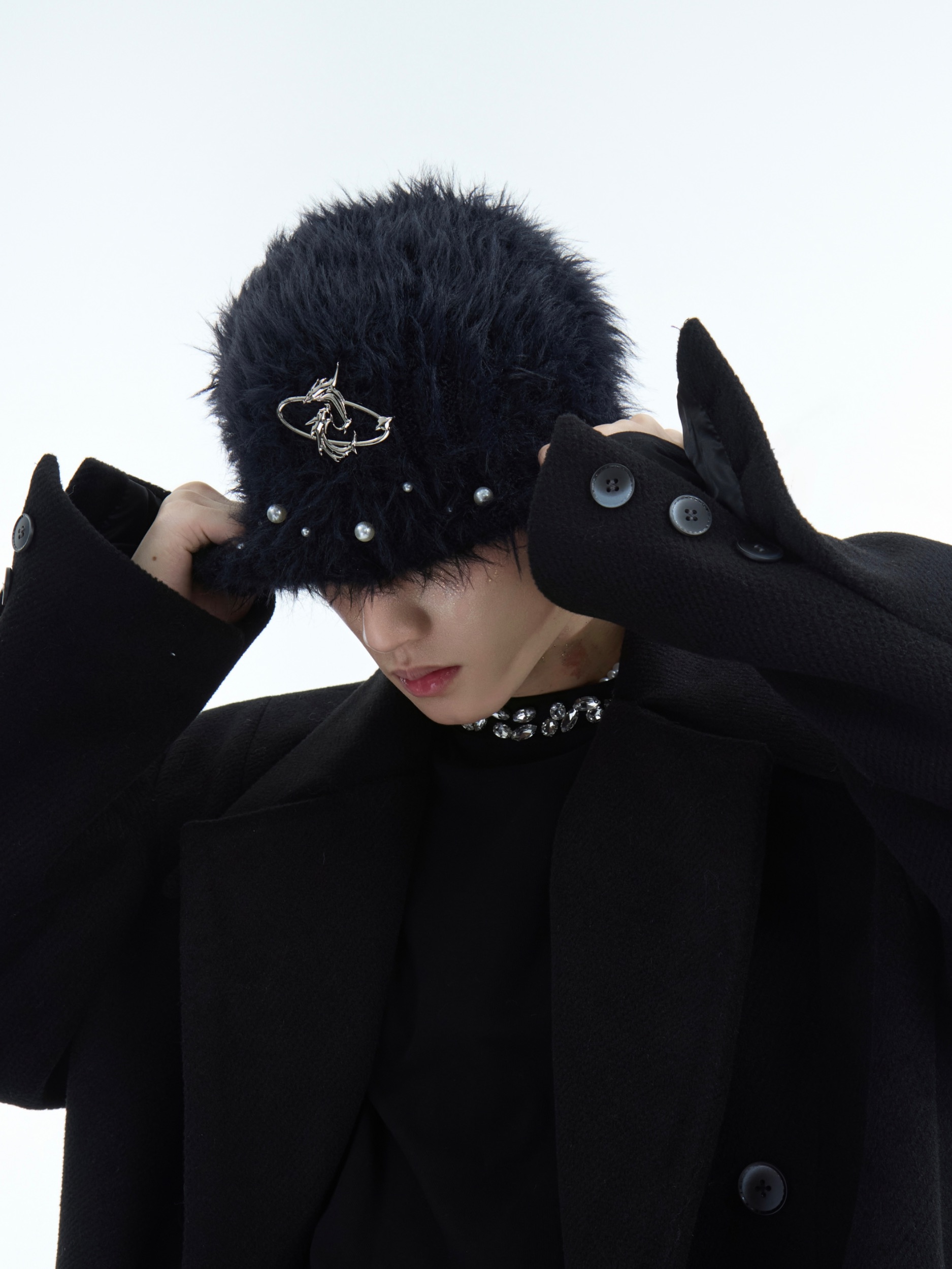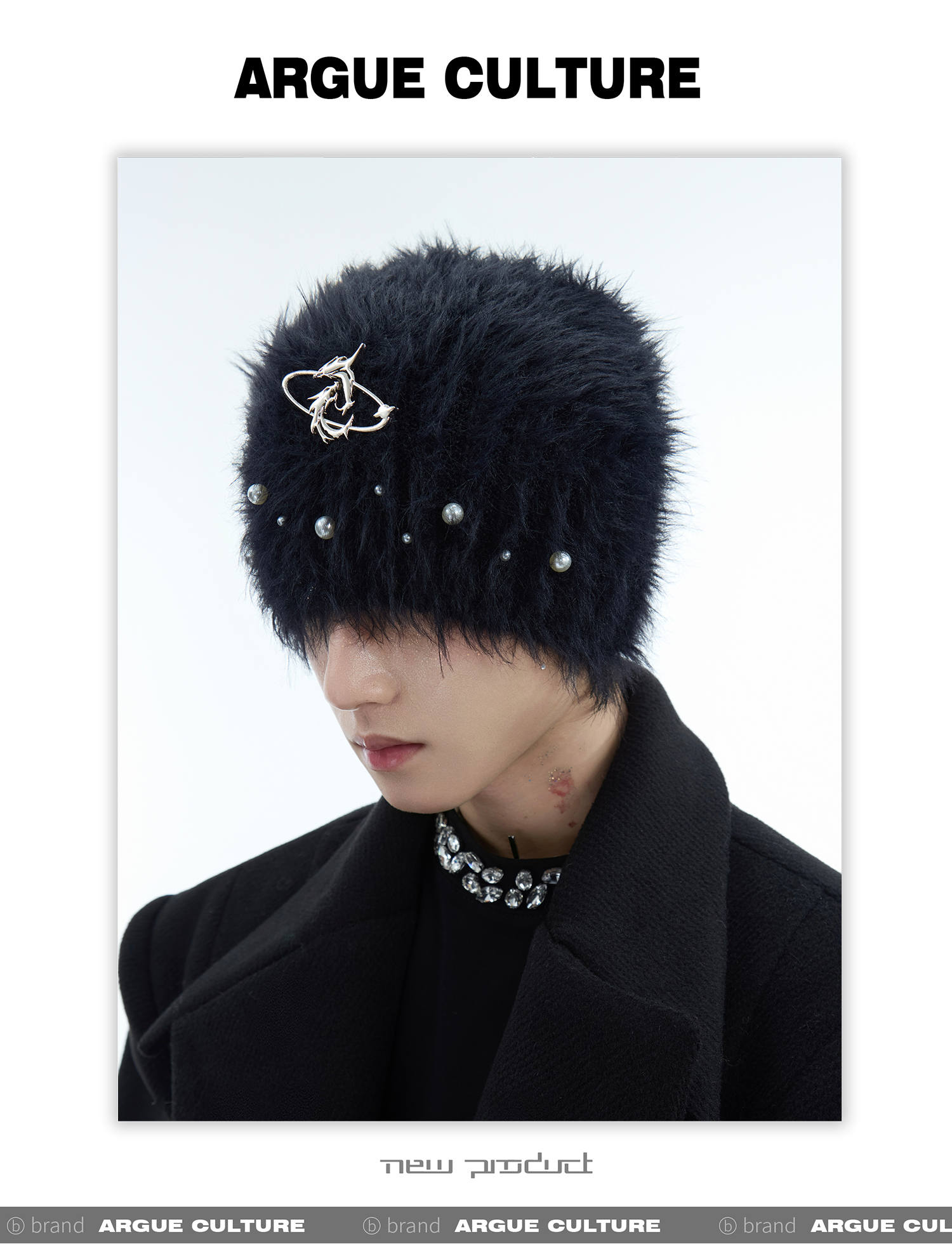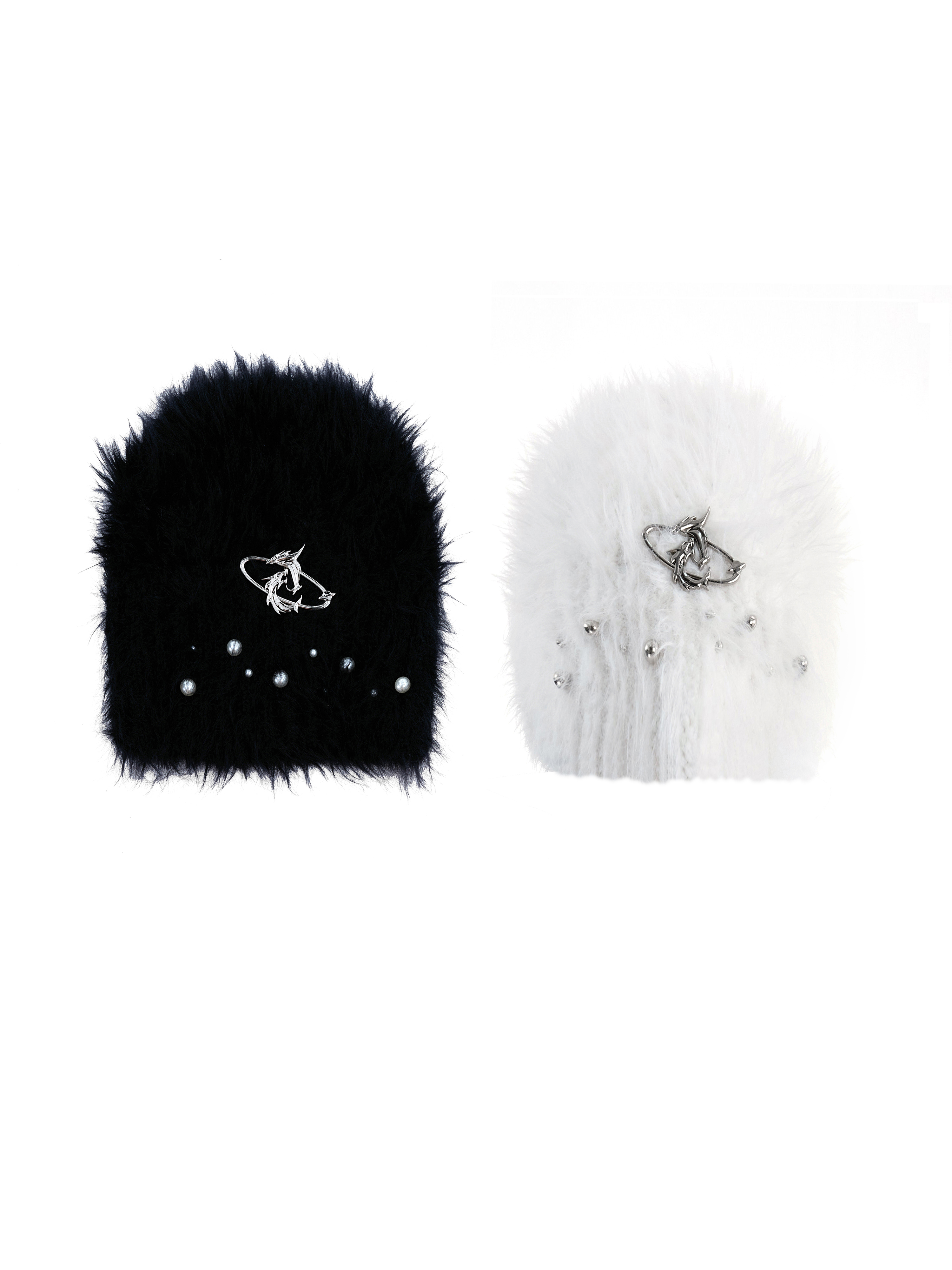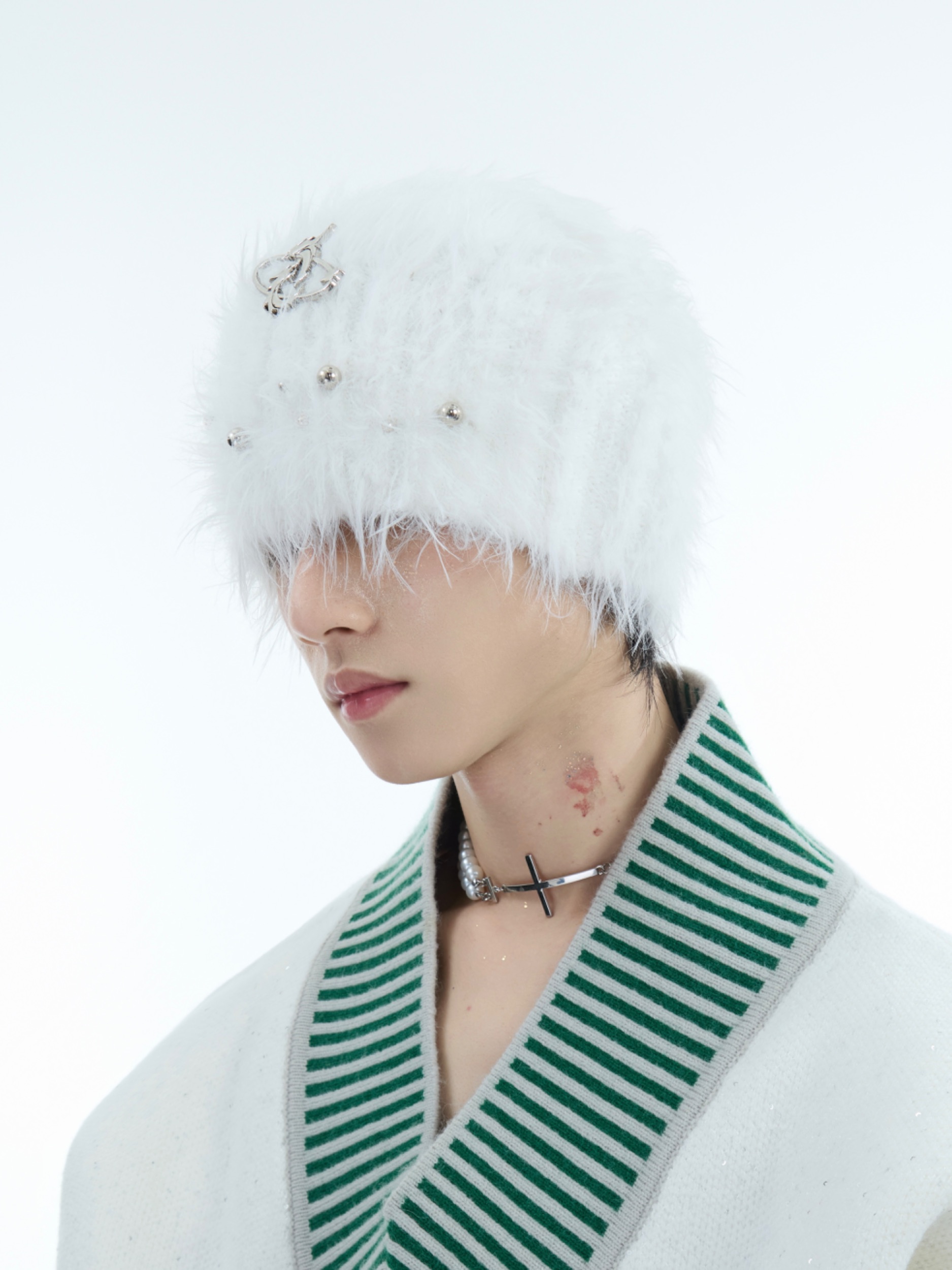 Pearl-Embellished Fuzzy Knit Hat WN10877