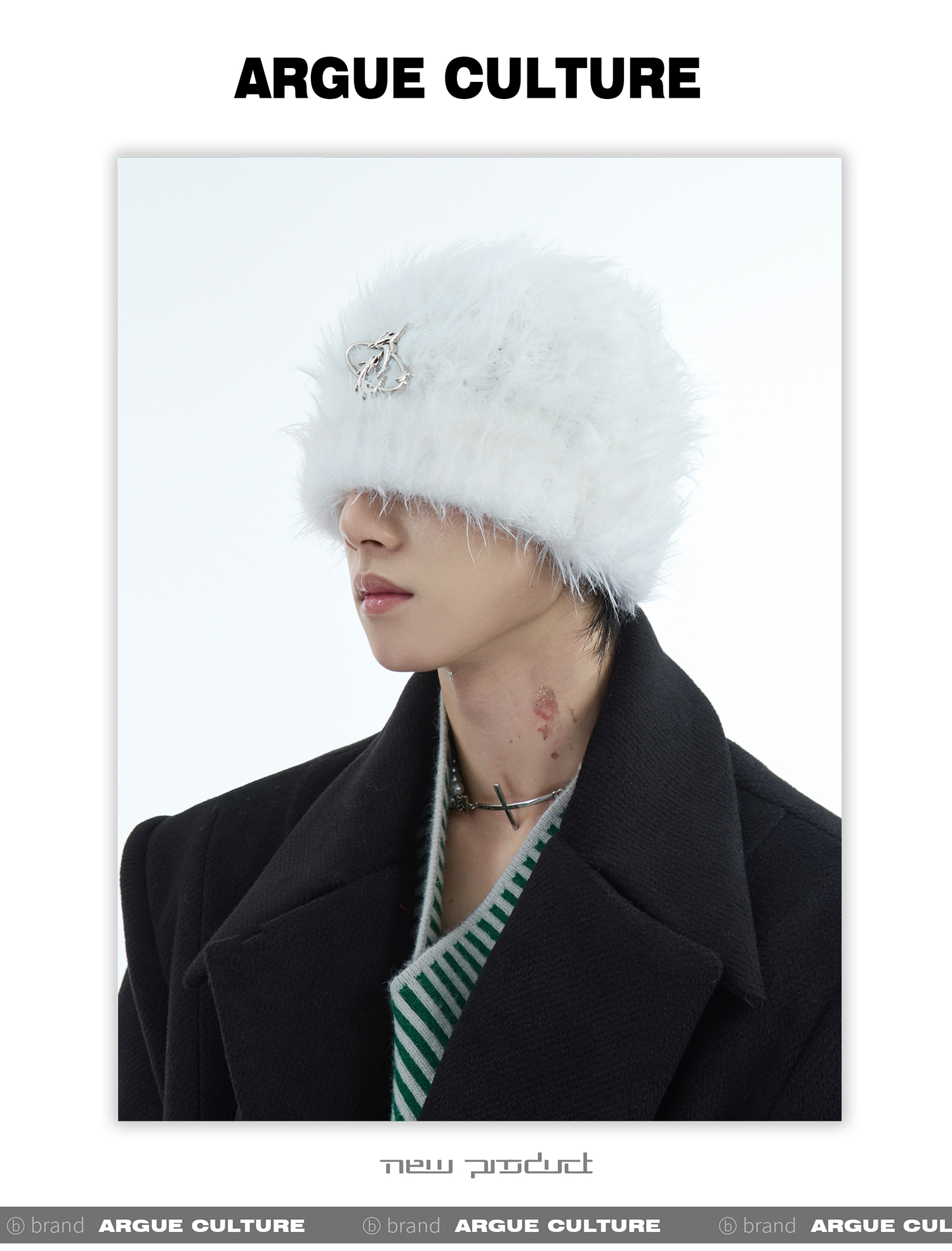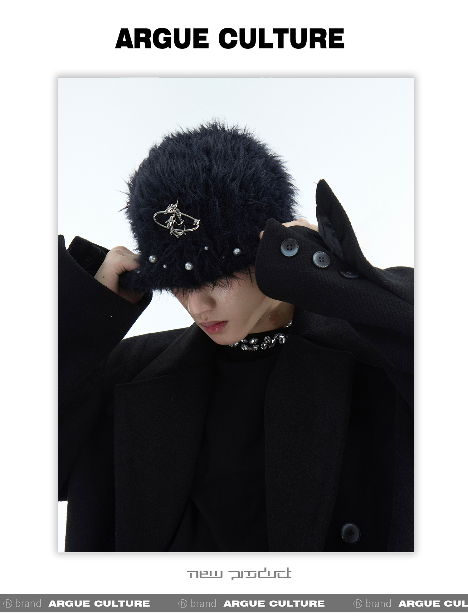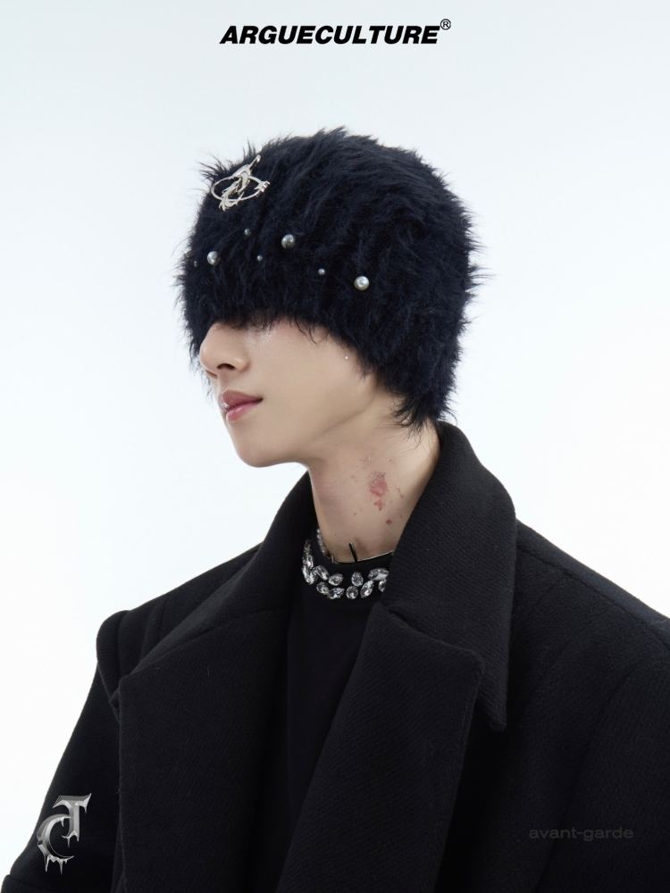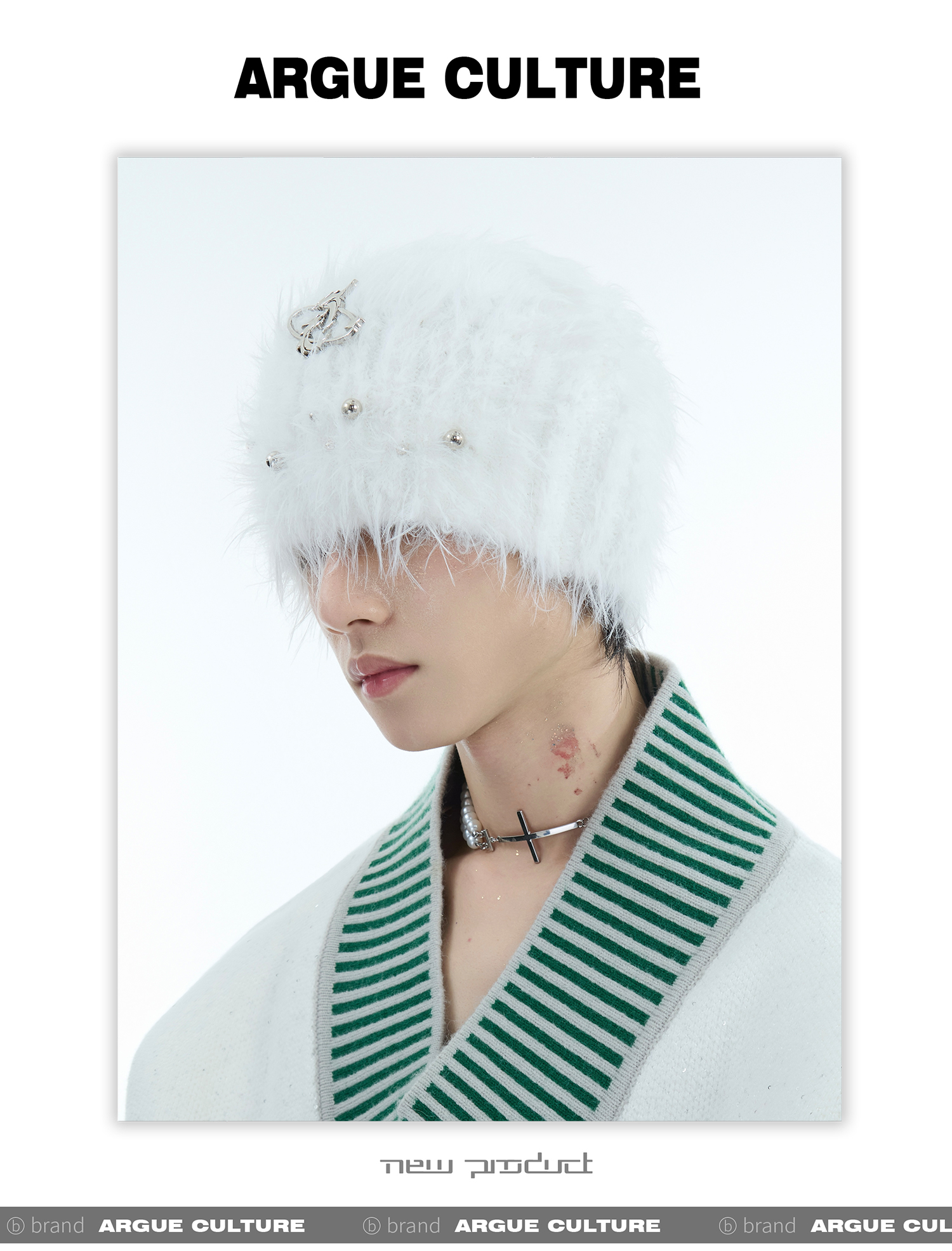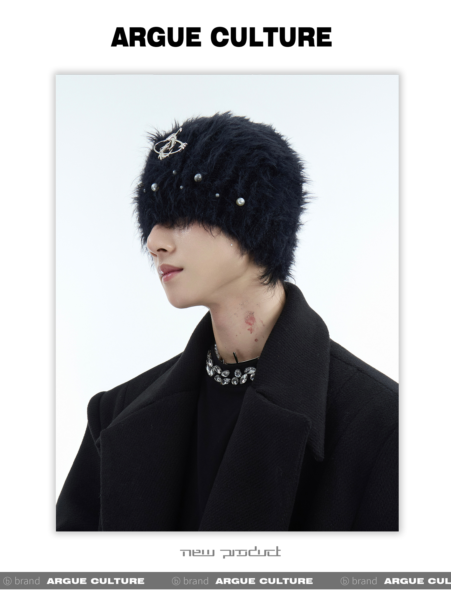 Pearl-Embellished Fuzzy Knit Hat WN10877
