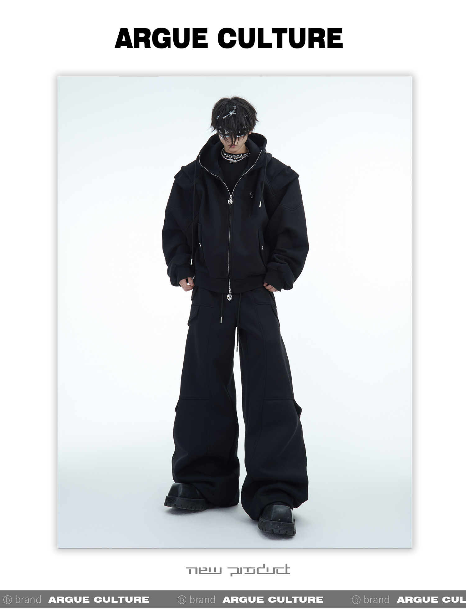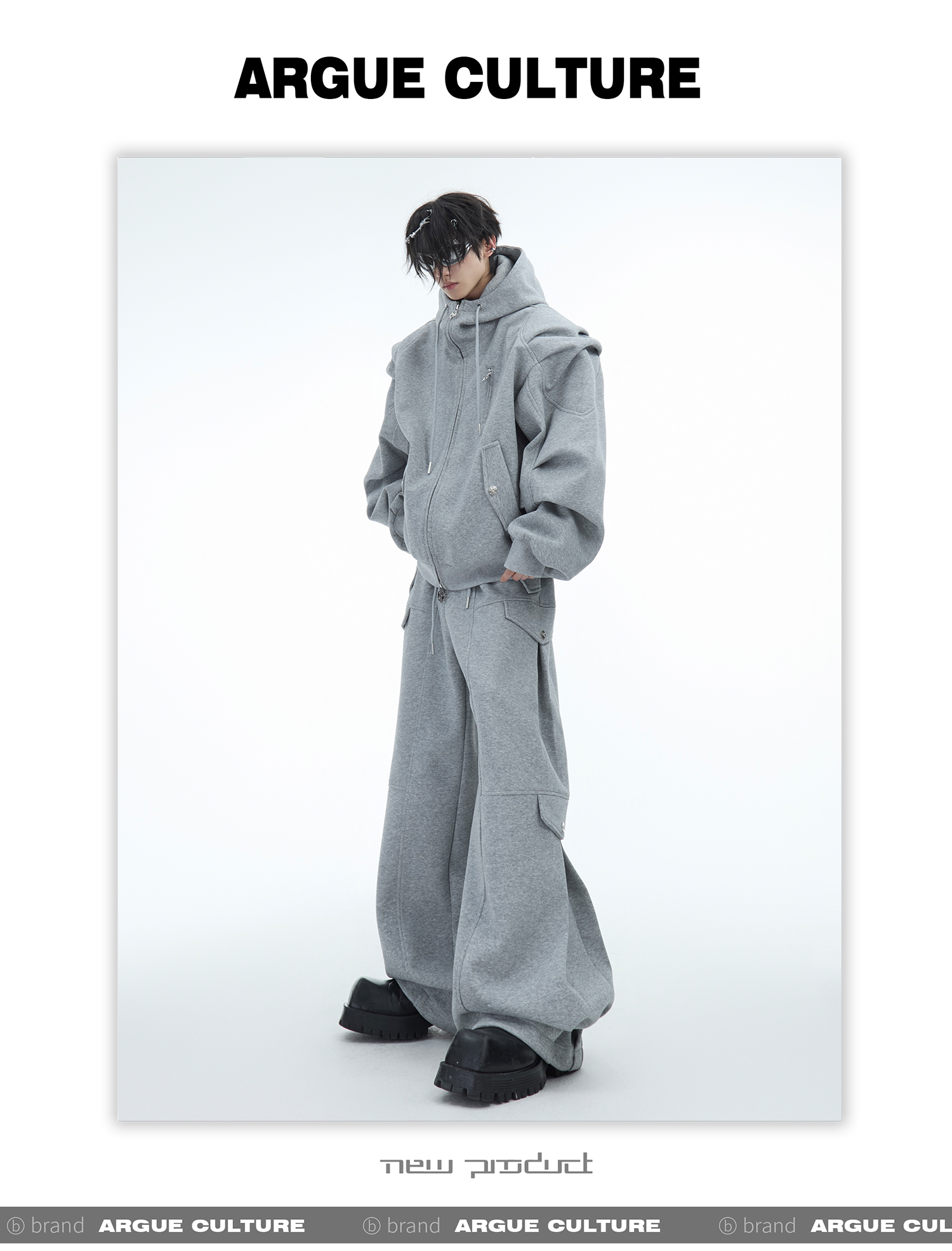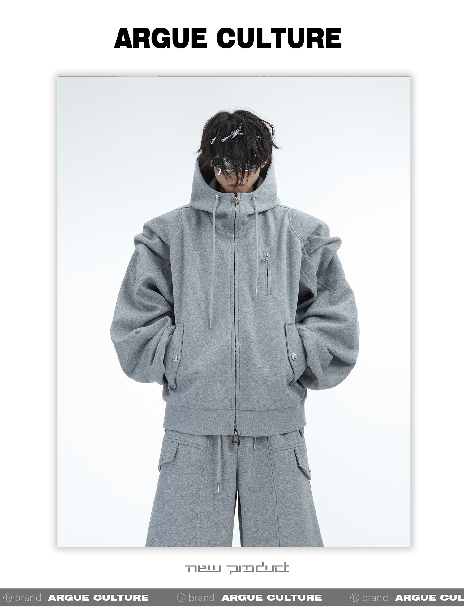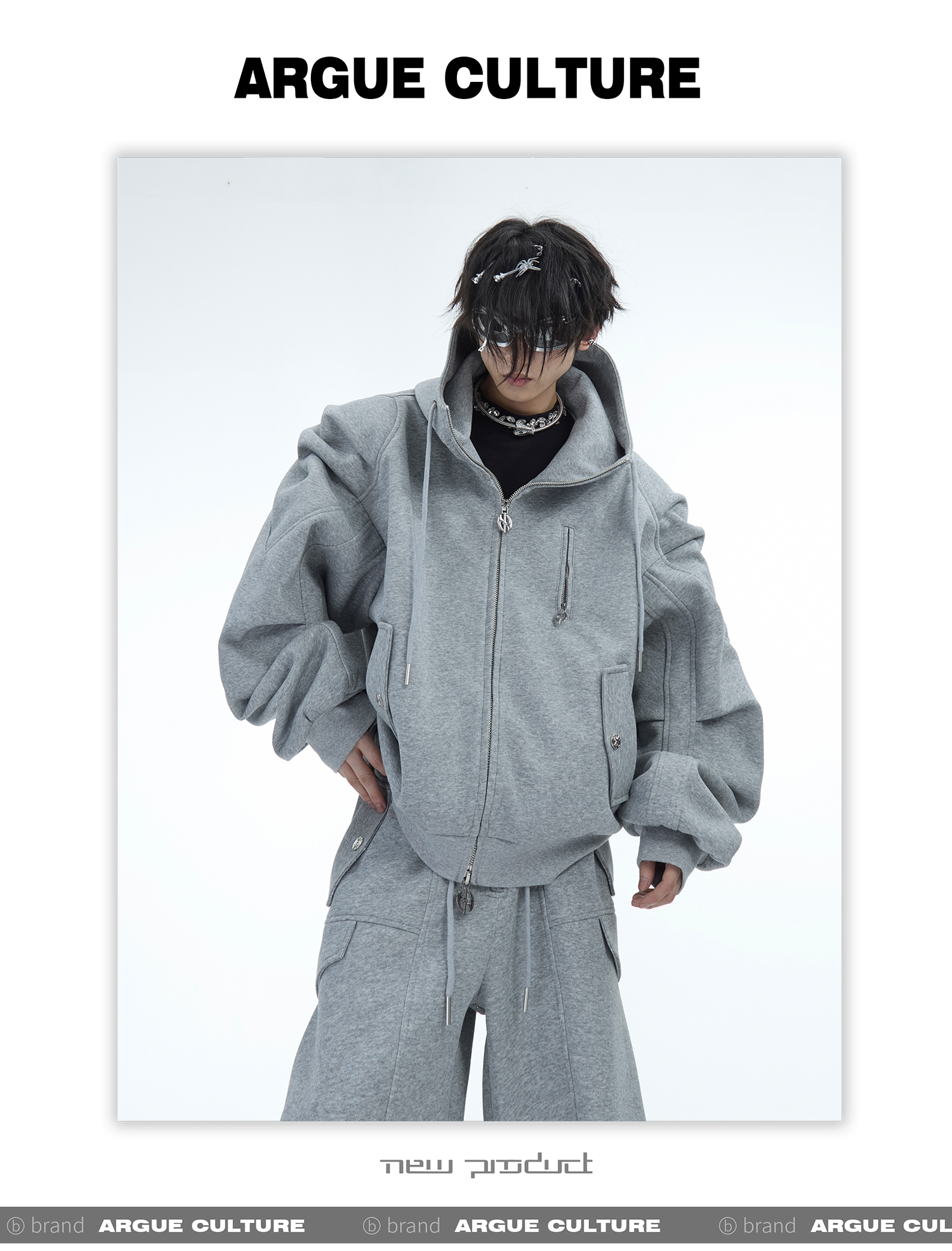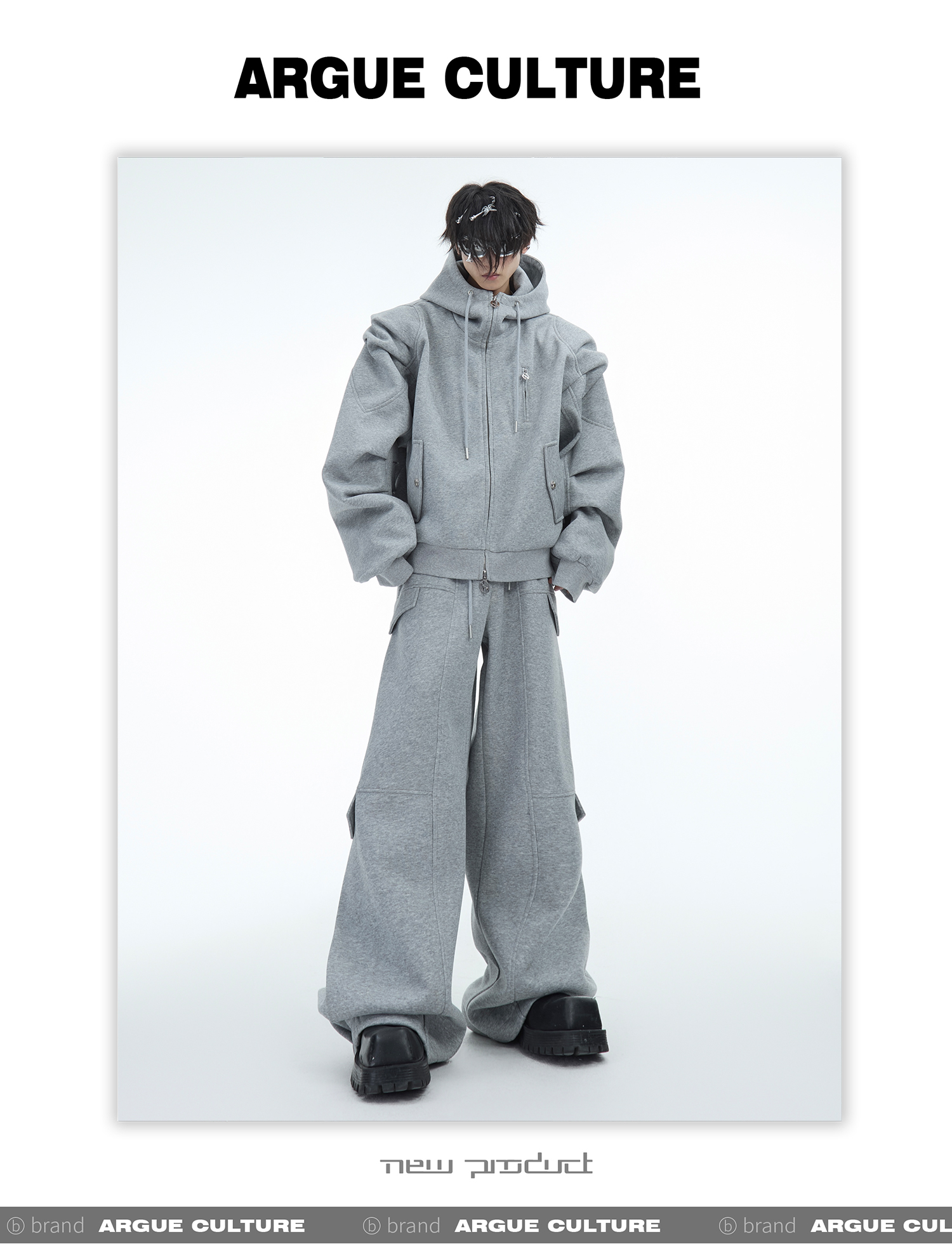 Heavyweight Short Zipper Hoodie & Wide-leg Cargo Sweatpants Setup WN10885-K