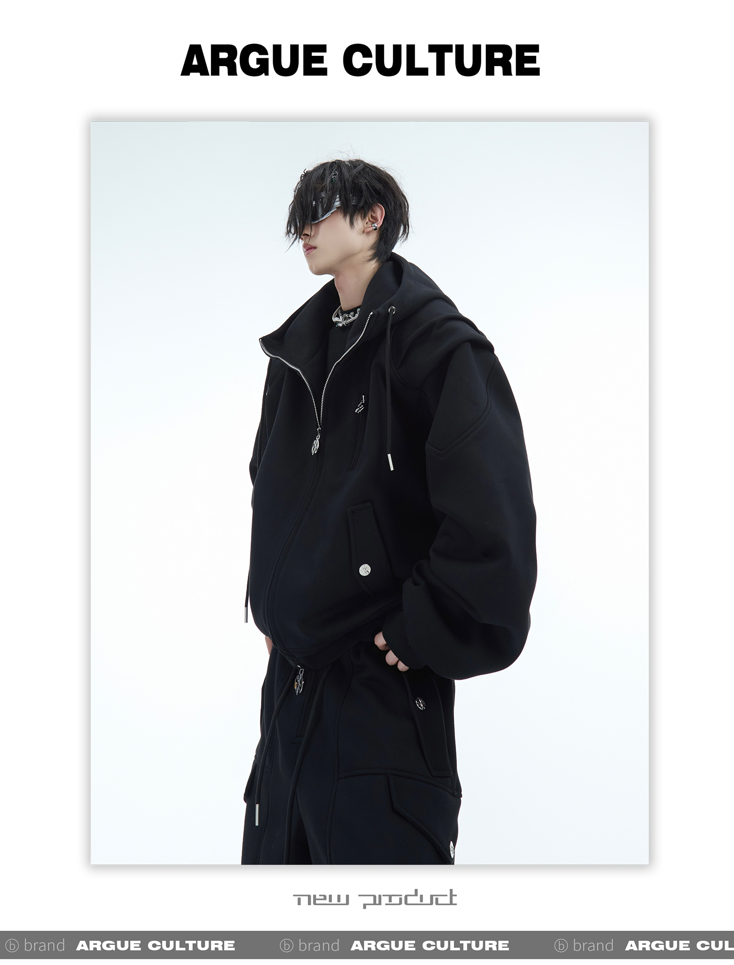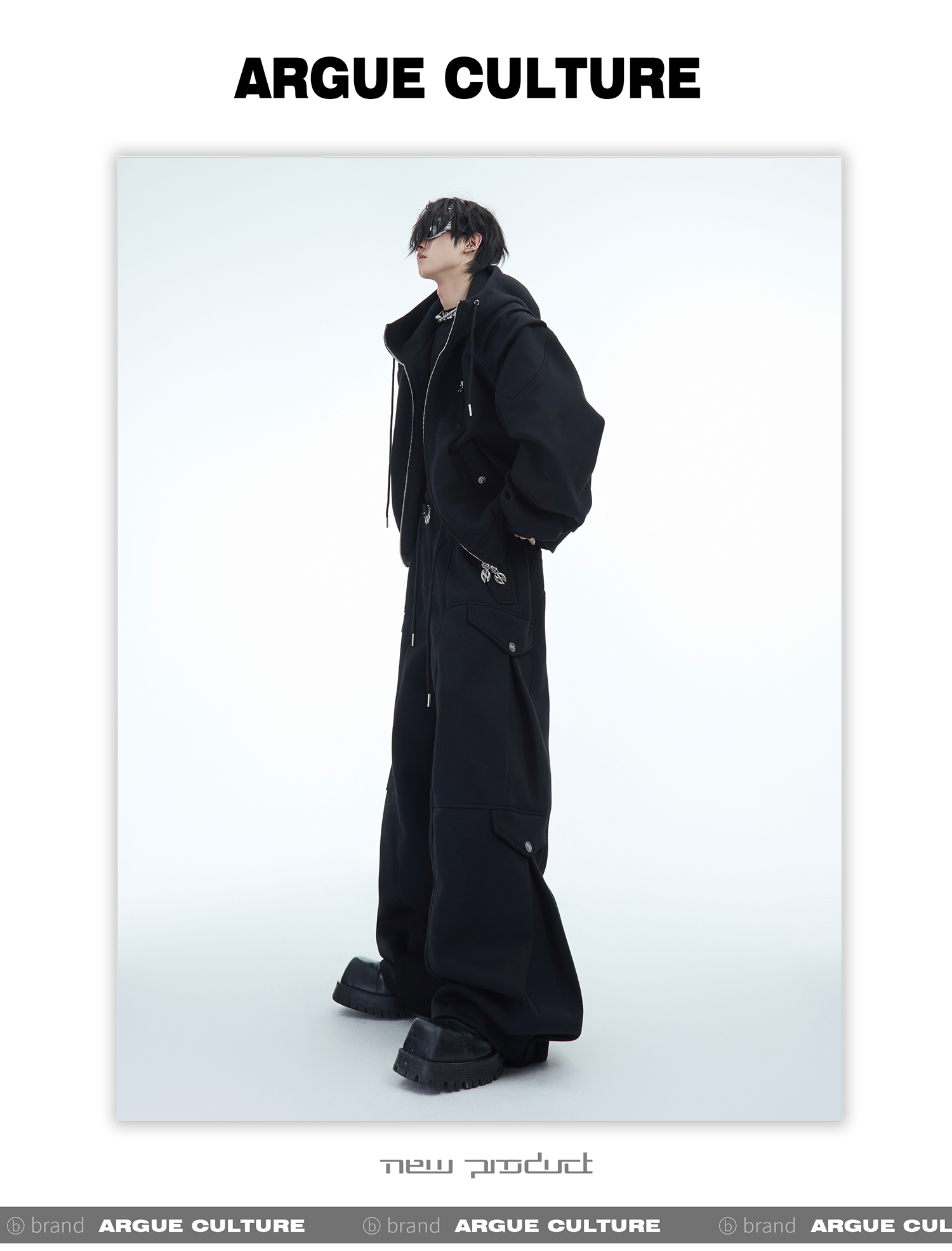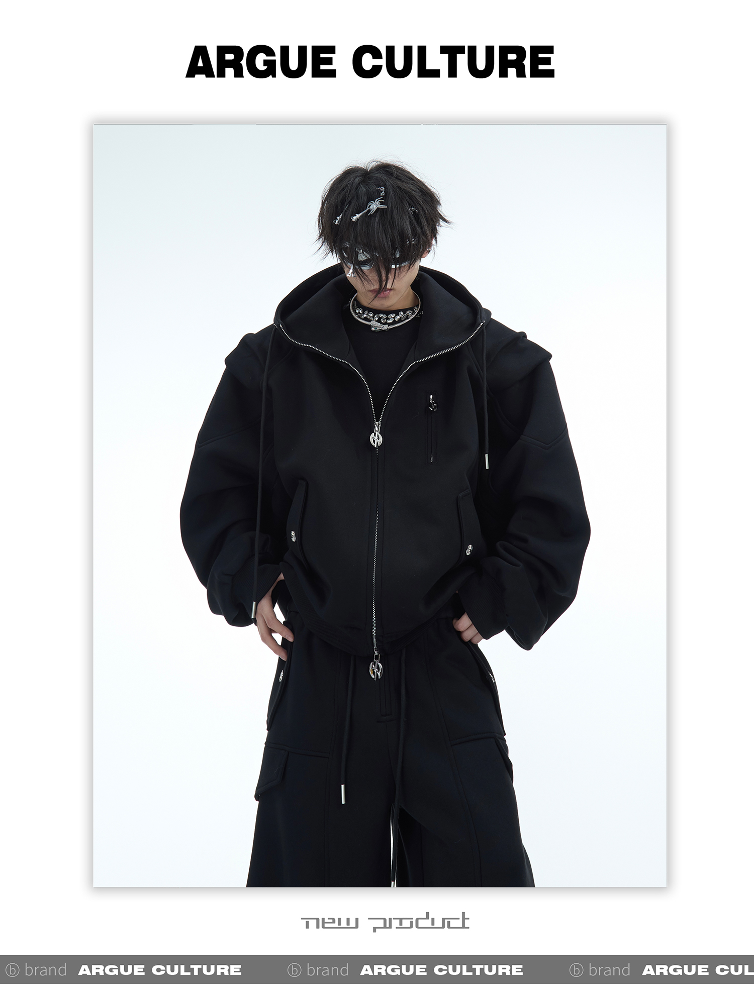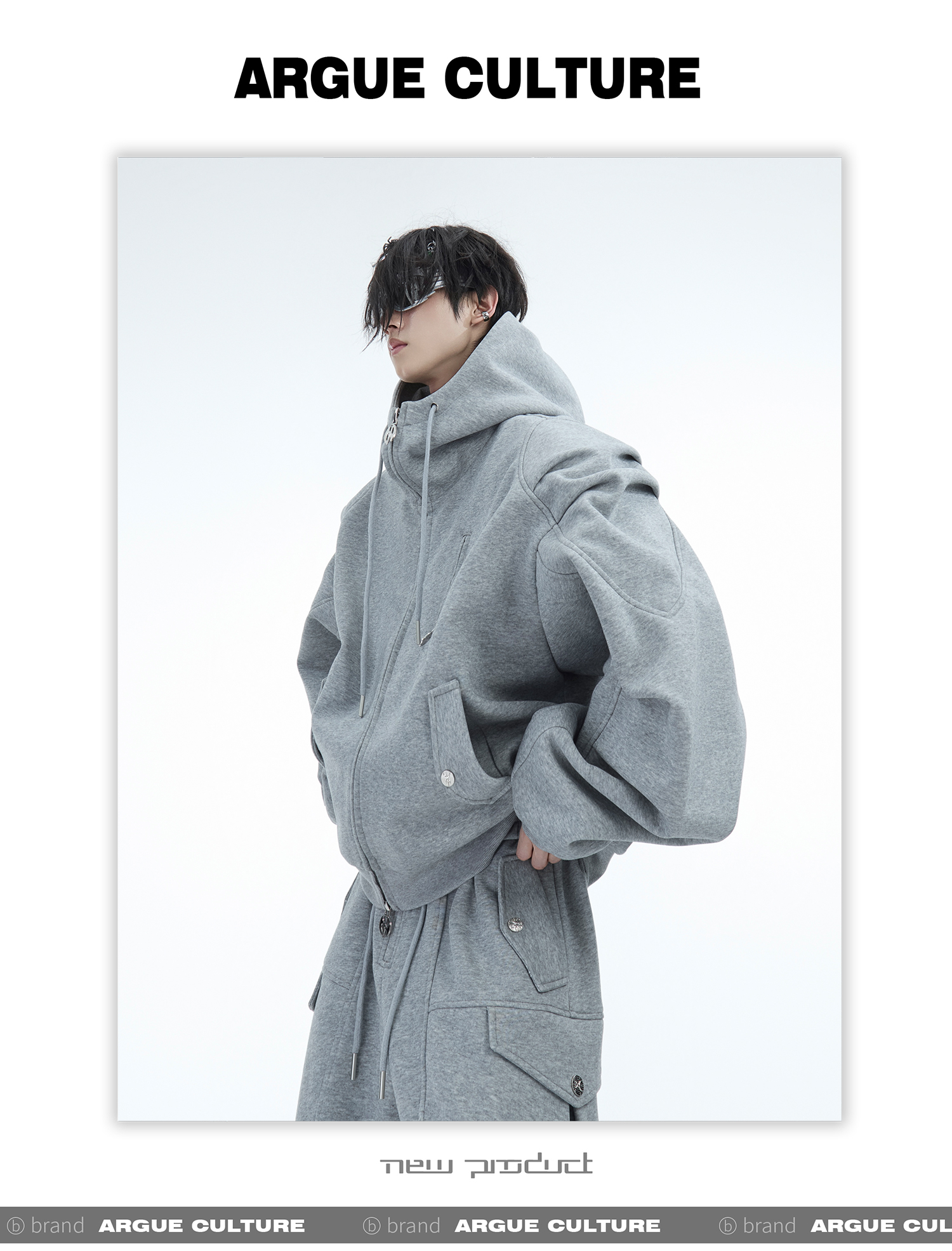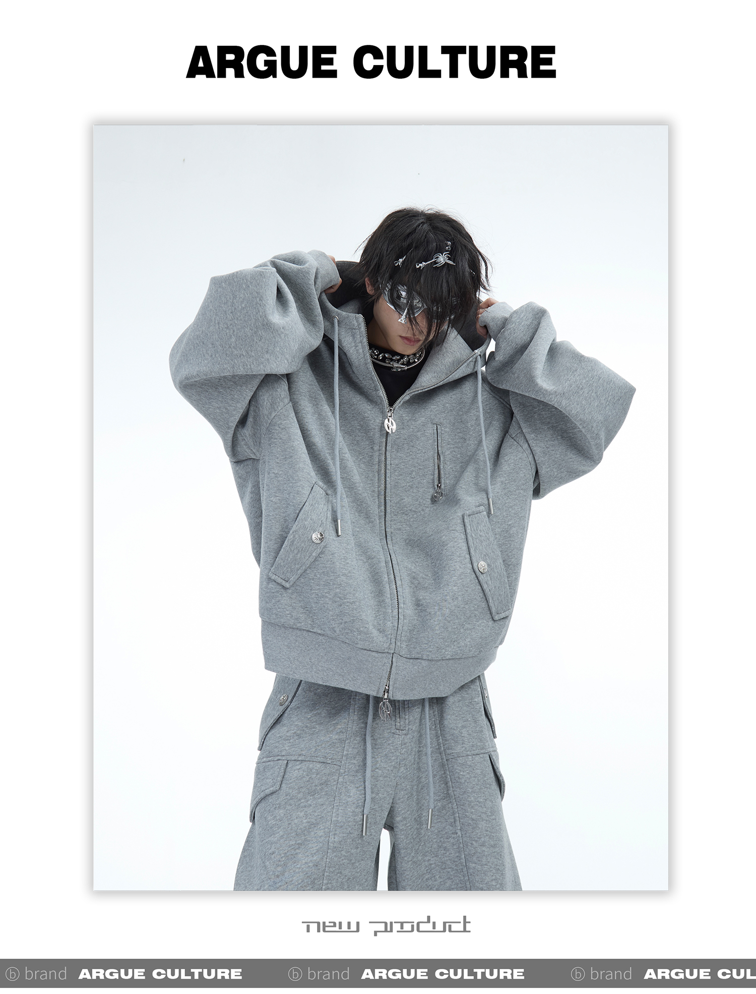 Heavyweight Short Zipper Hoodie & Wide-leg Cargo Sweatpants Setup WN10885-K