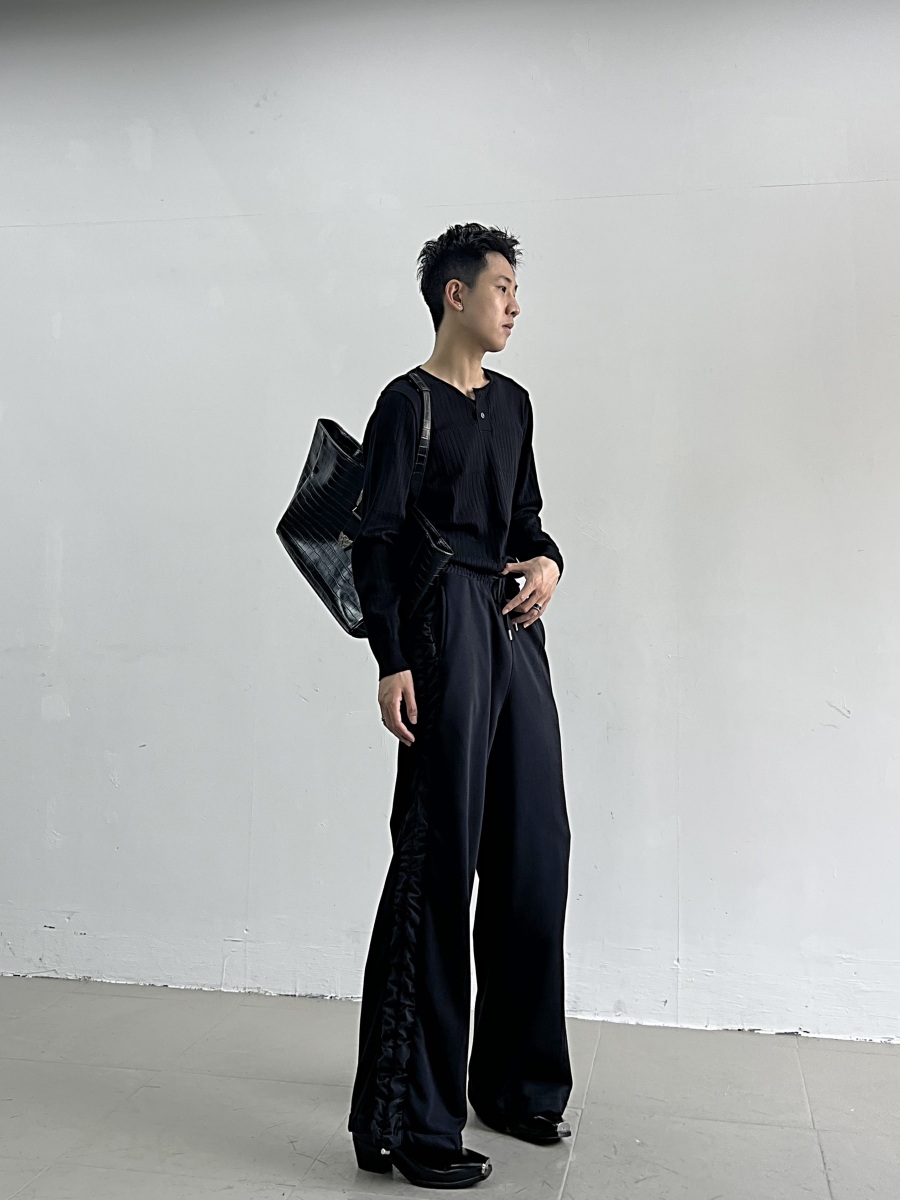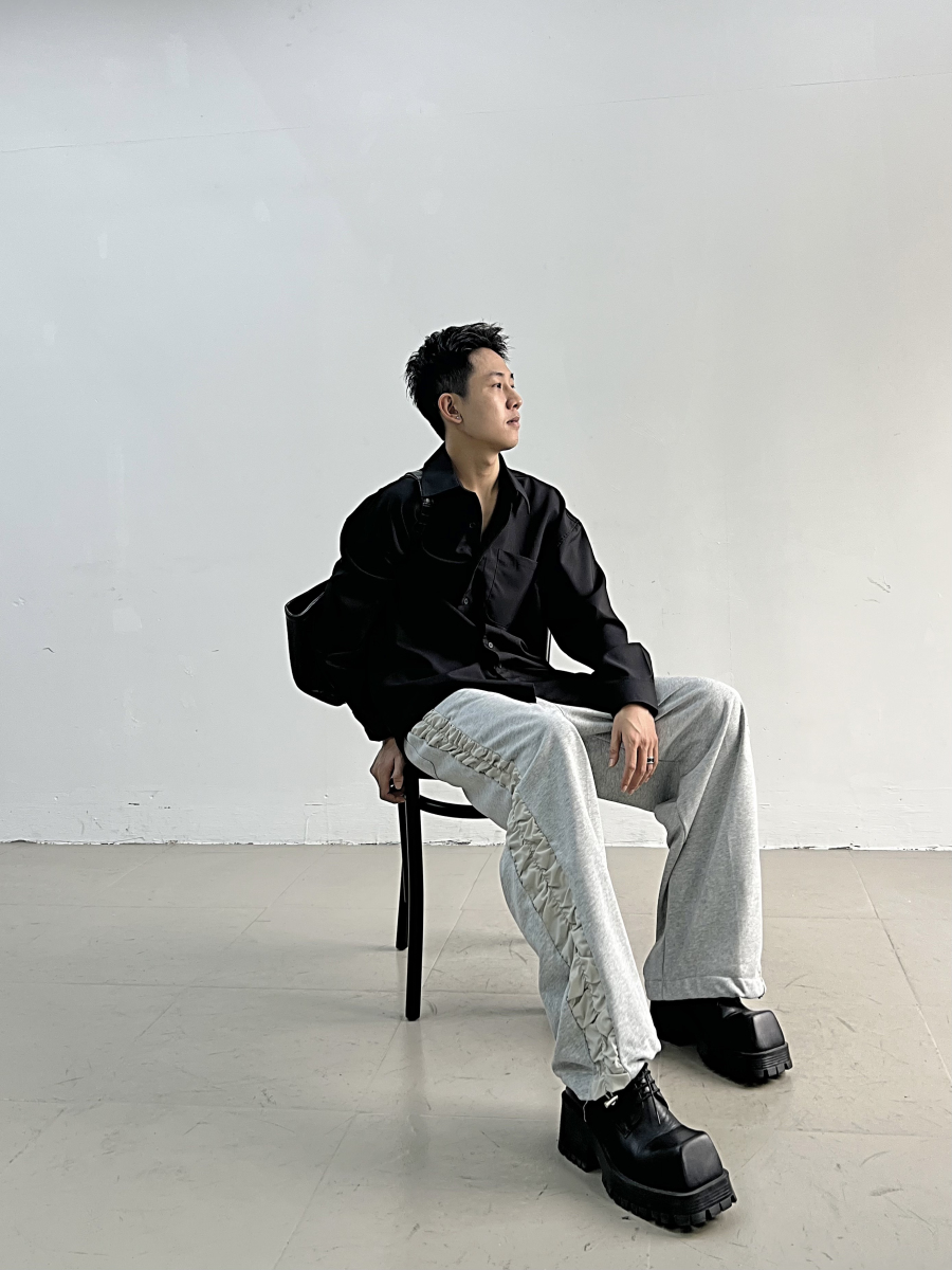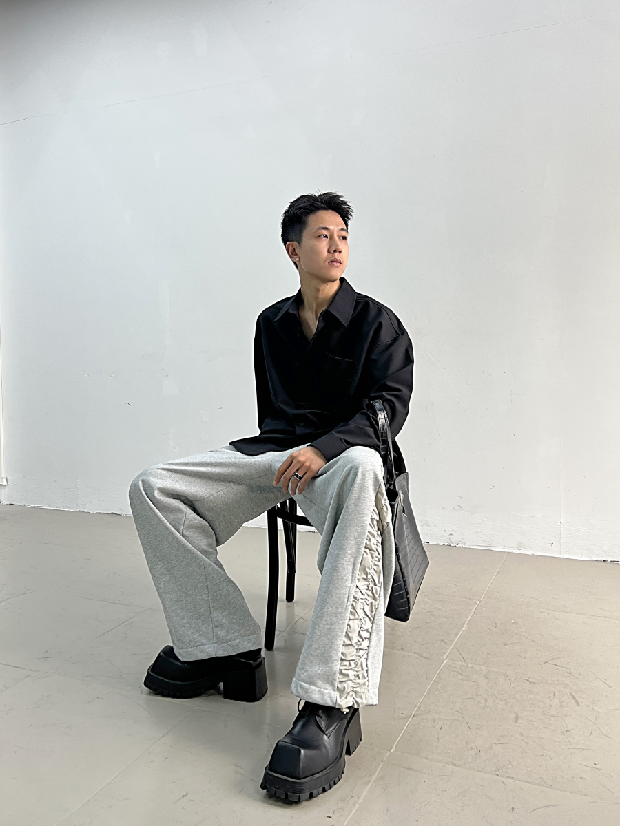 Patchwork Straight-Leg Draped Sweat Pants WN11653