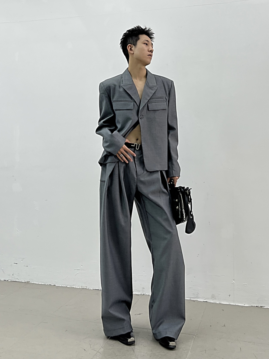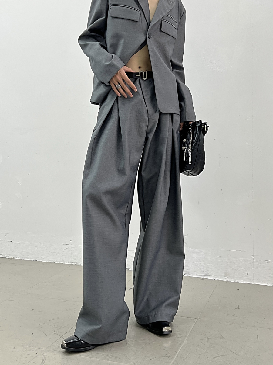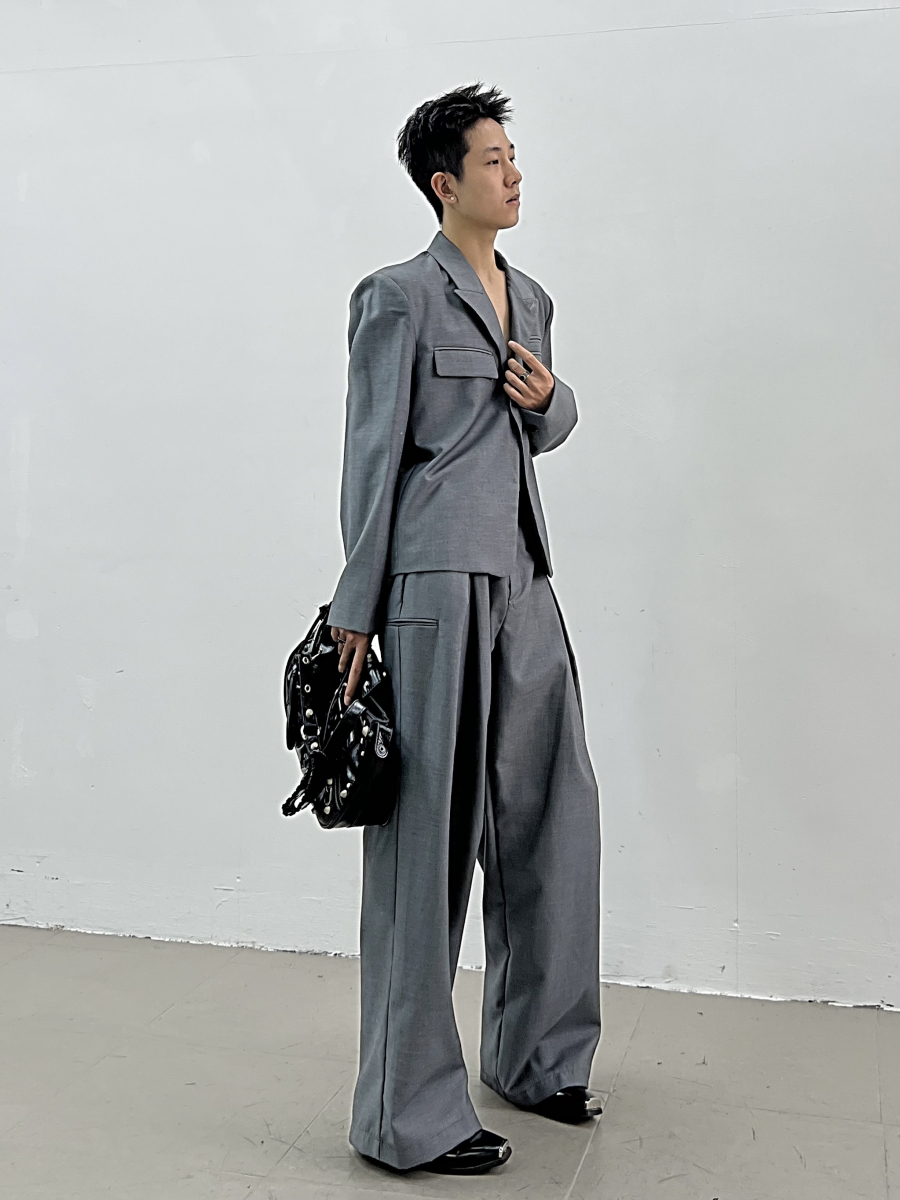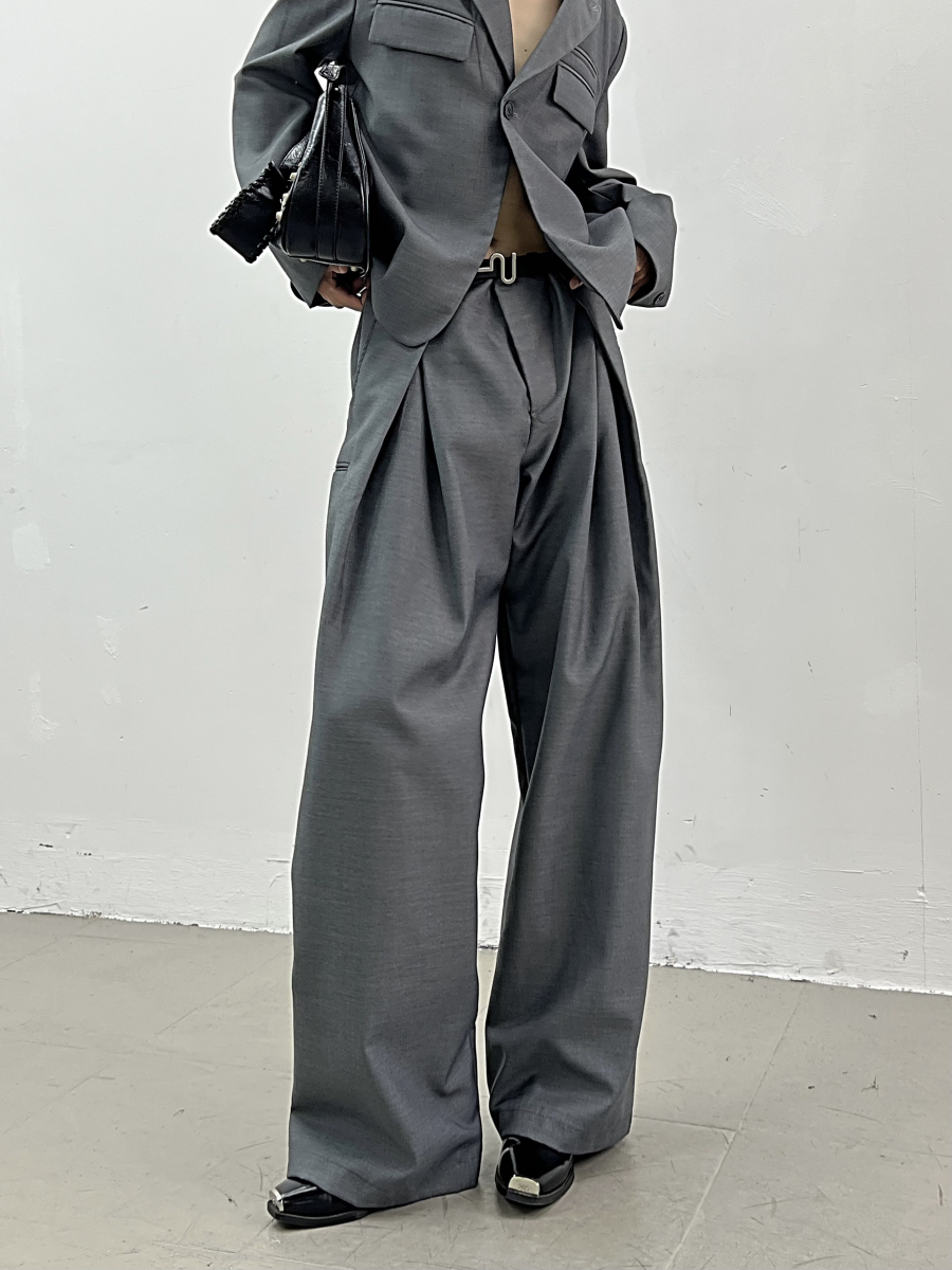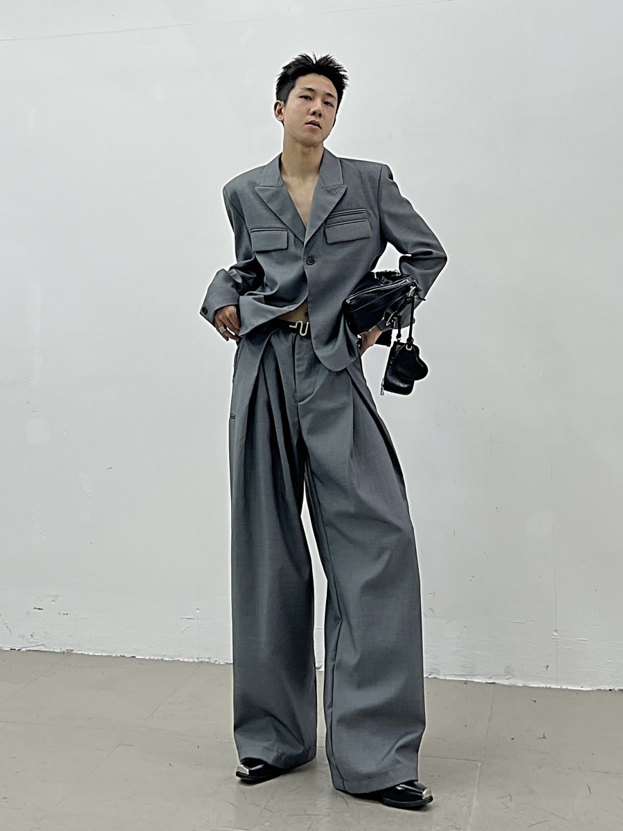 Shoulder-Pad Tailored Jacket & Wide-Leg Wrinkled Trousers Setup WN11665