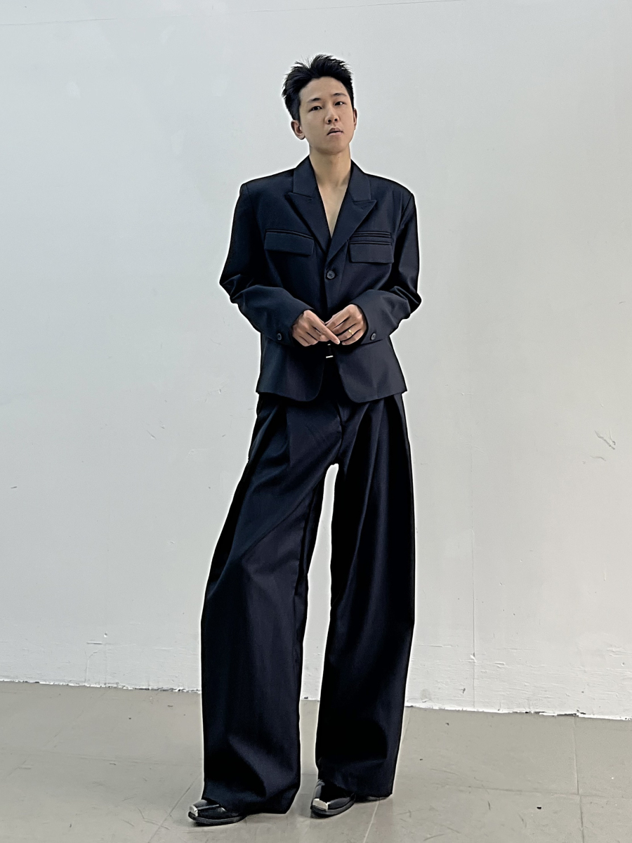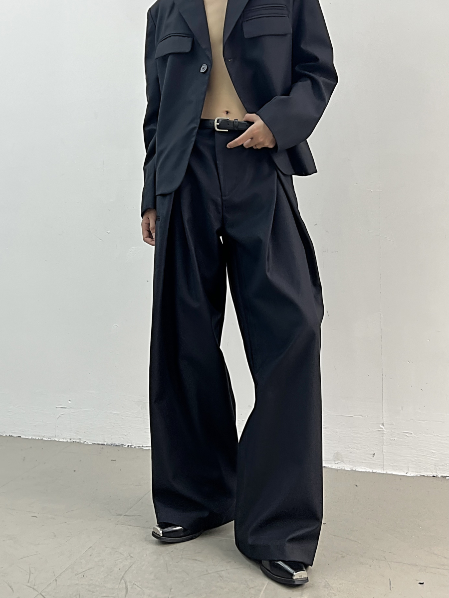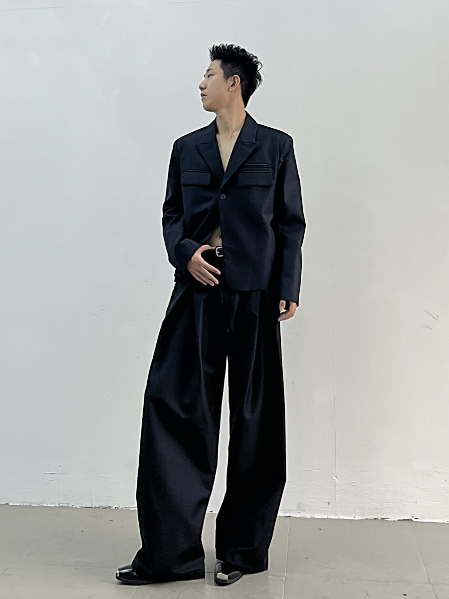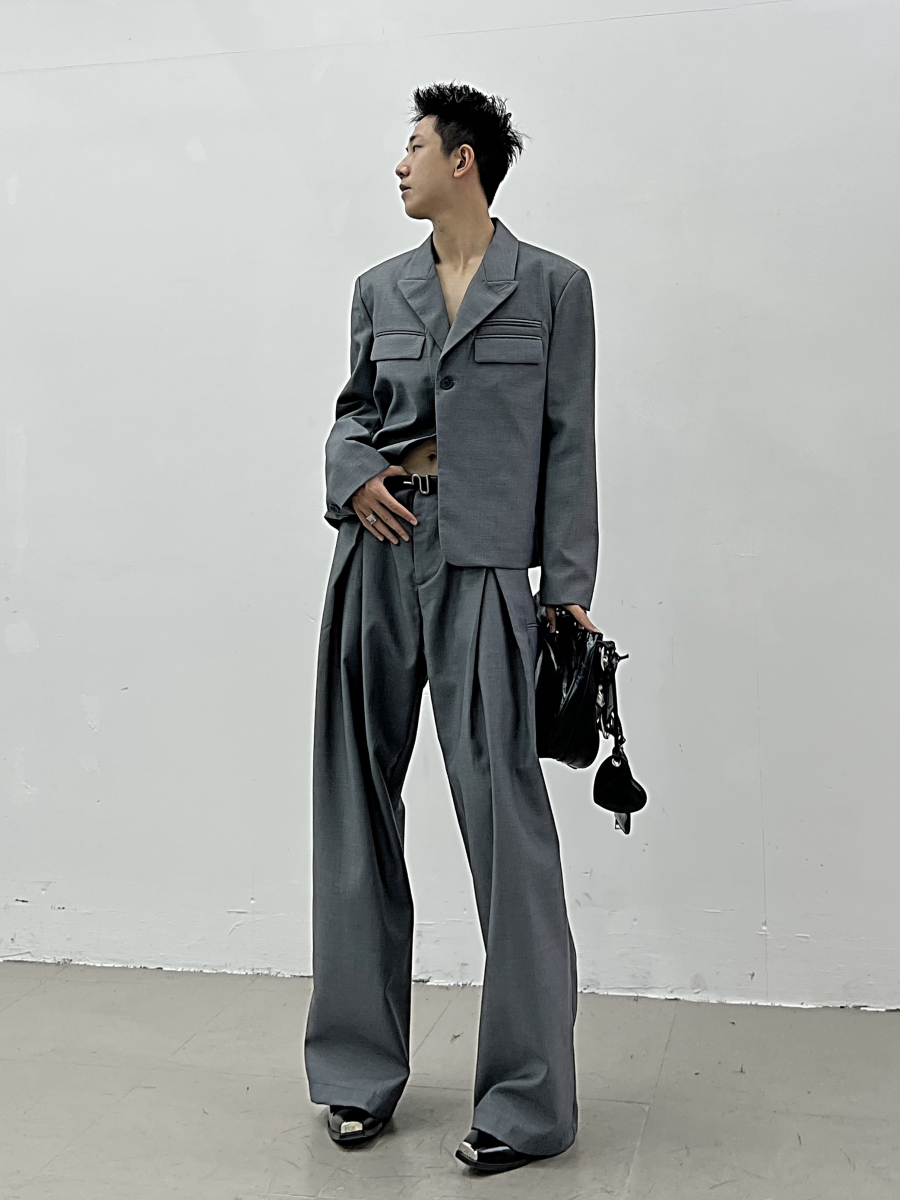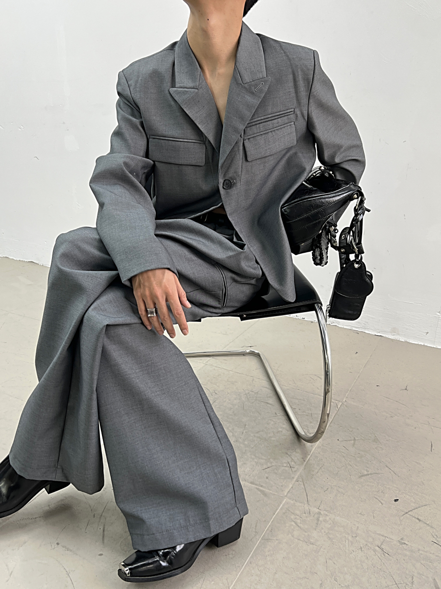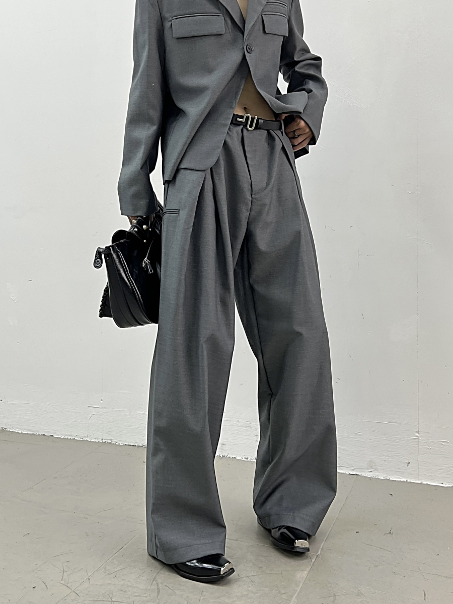 Shoulder-Pad Tailored Jacket & Wide-Leg Wrinkled Trousers Setup WN11665