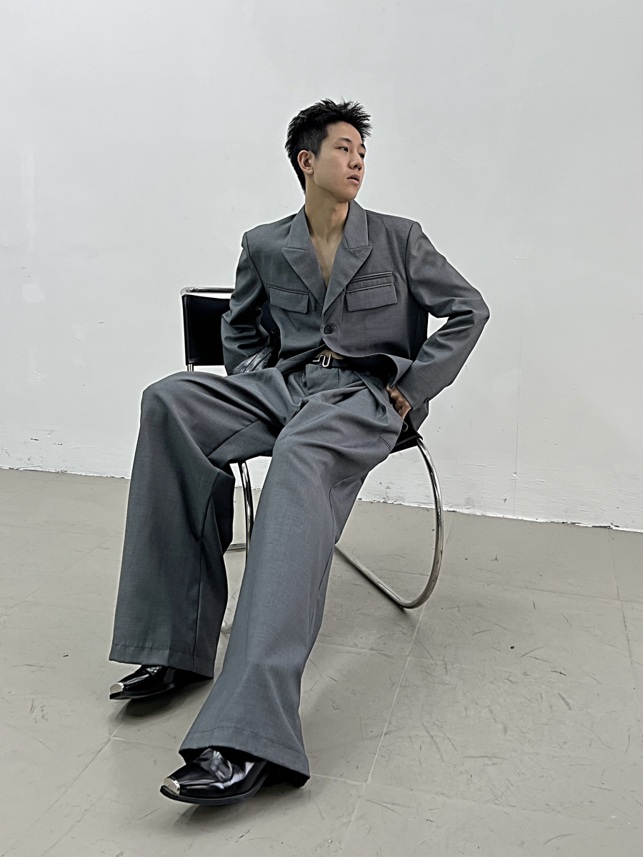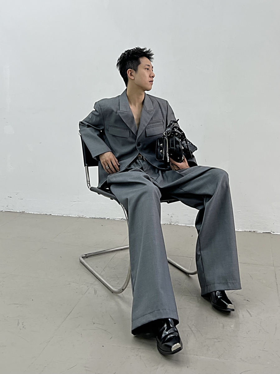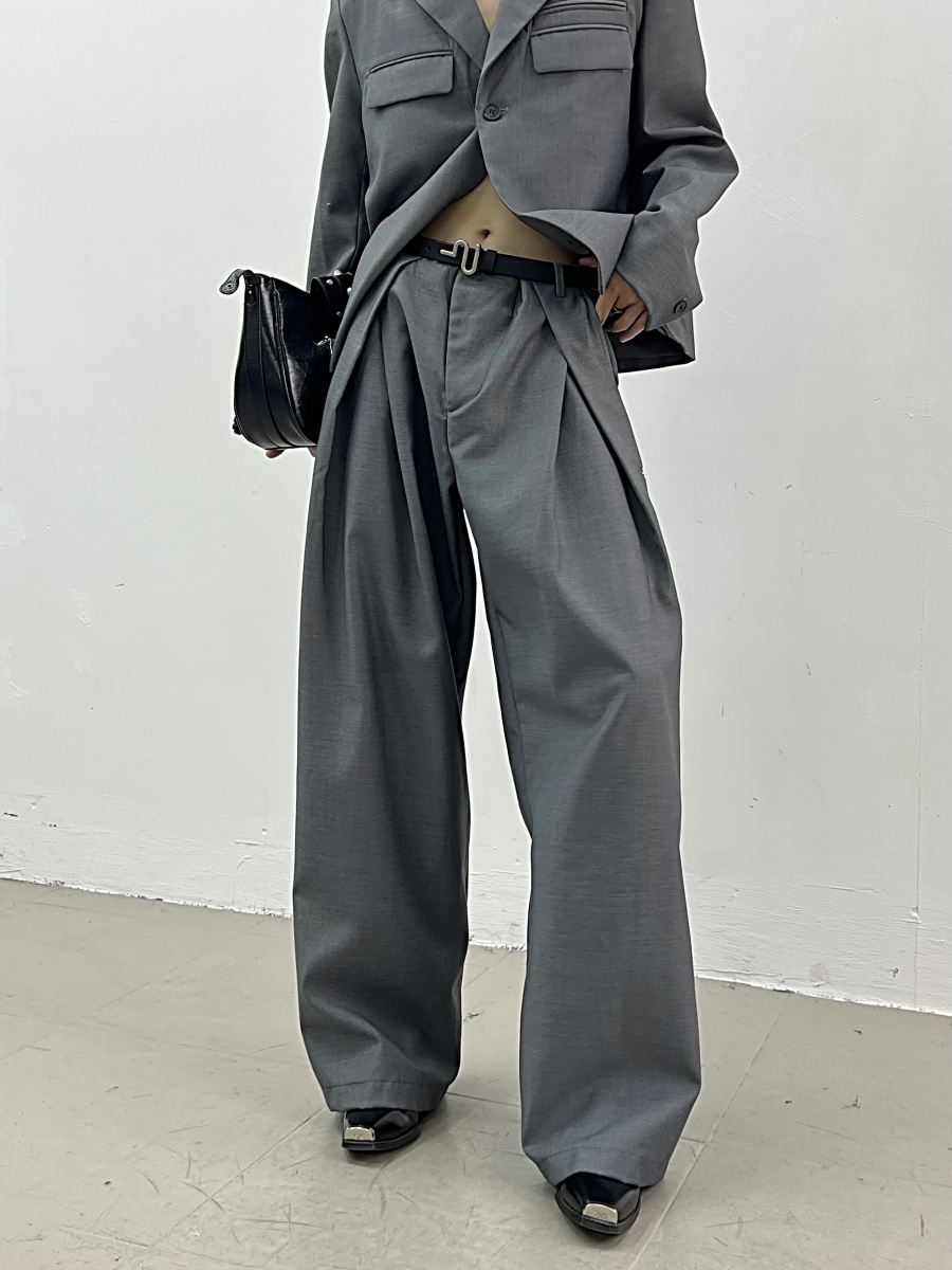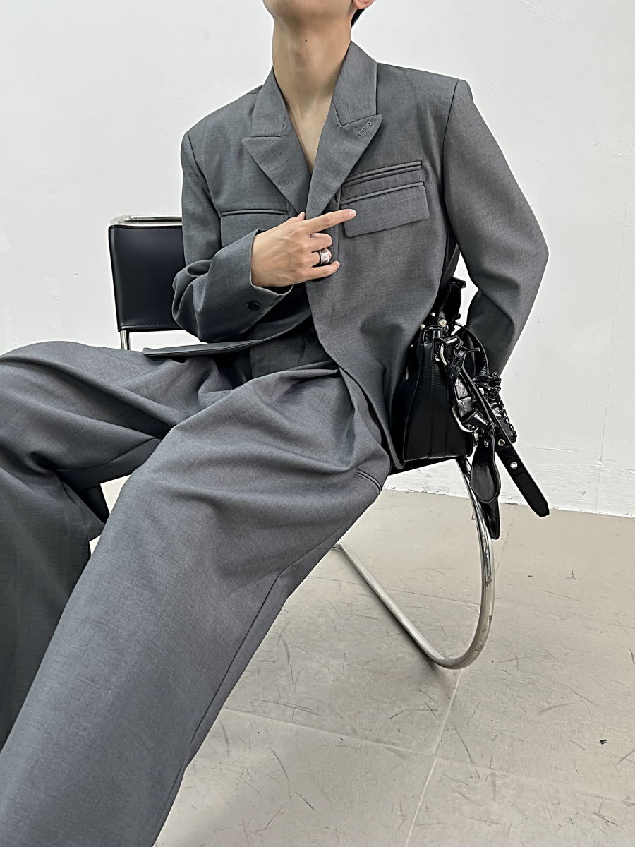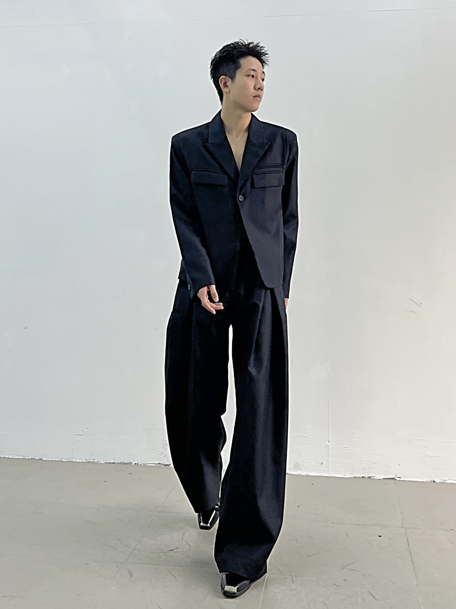 Shoulder-Pad Tailored Jacket & Wide-Leg Wrinkled Trousers Setup WN11665