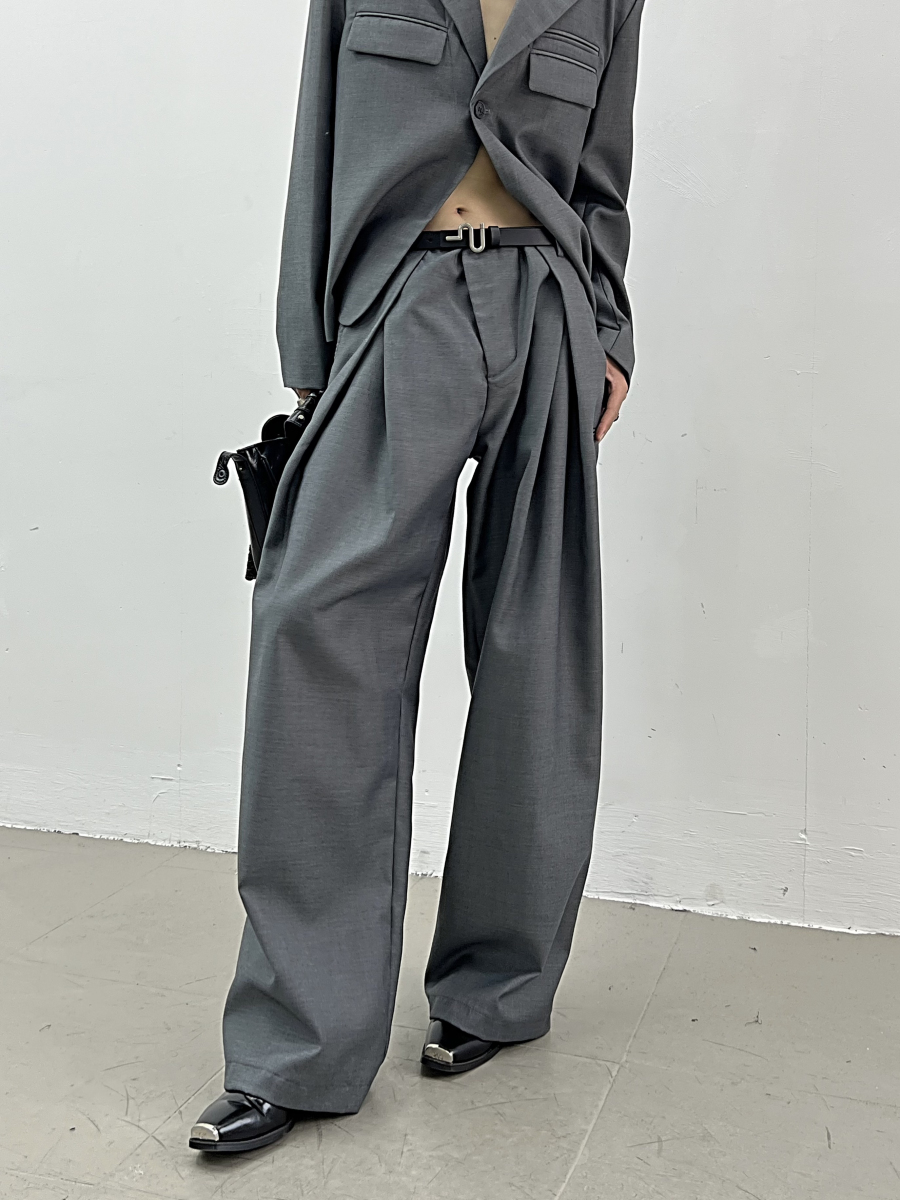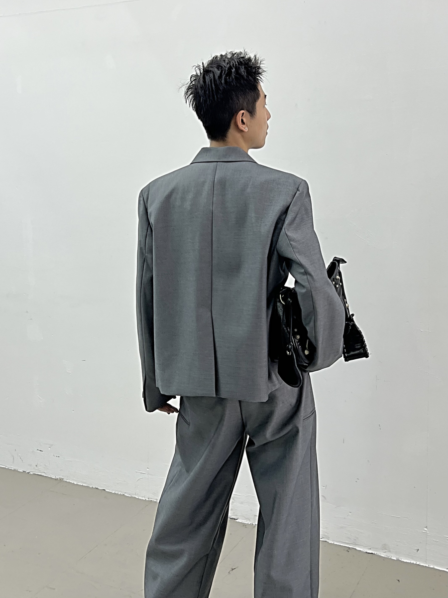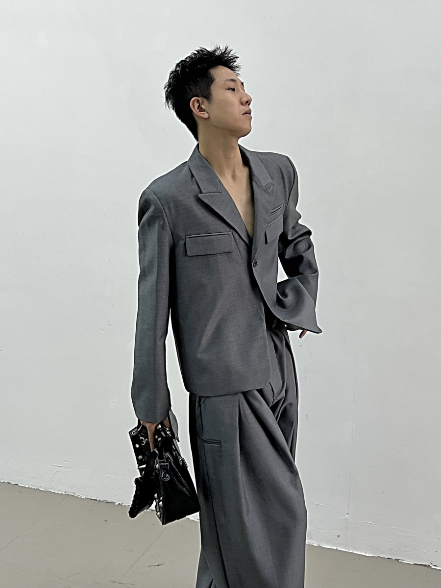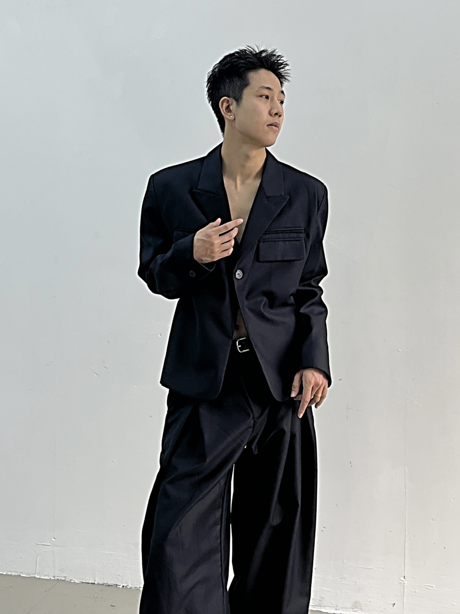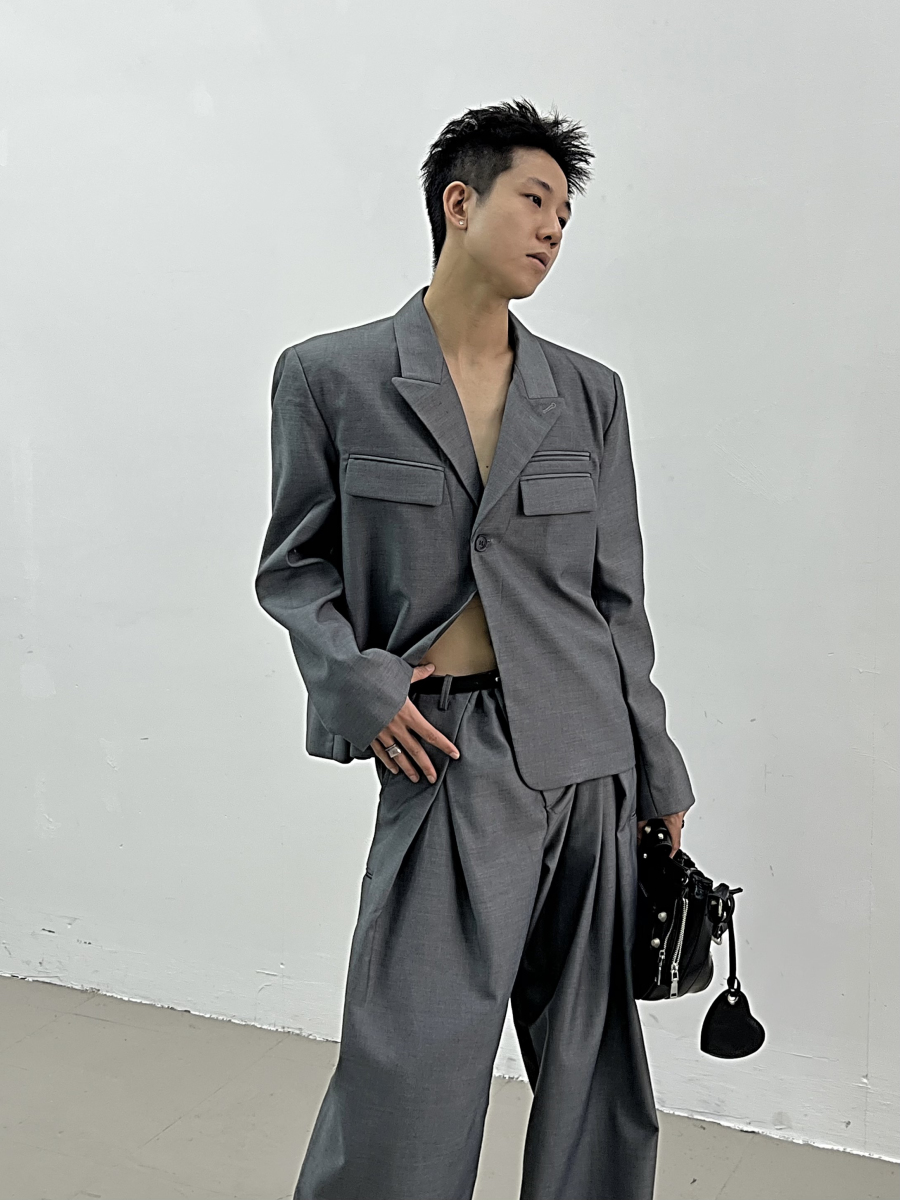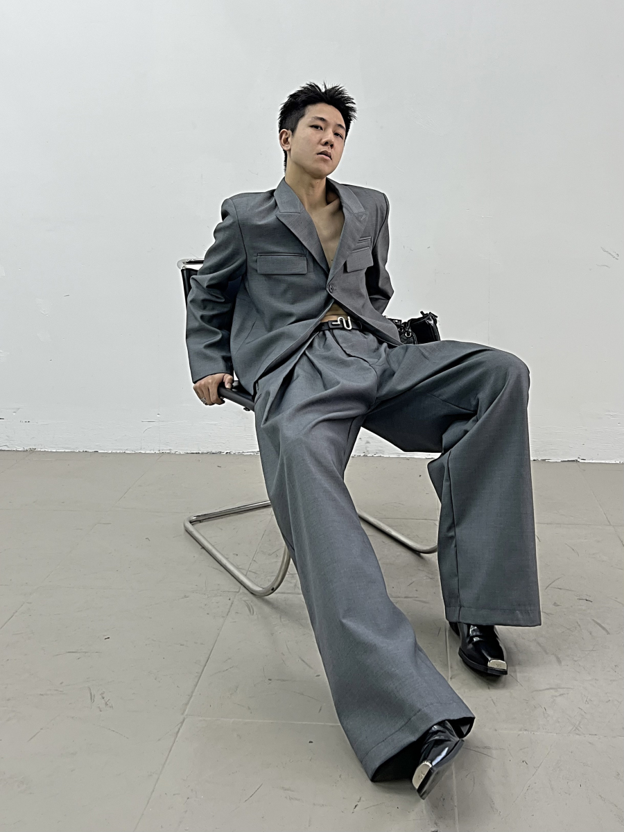 Shoulder-Pad Tailored Jacket & Wide-Leg Wrinkled Trousers Setup WN11665