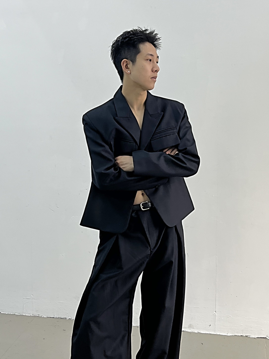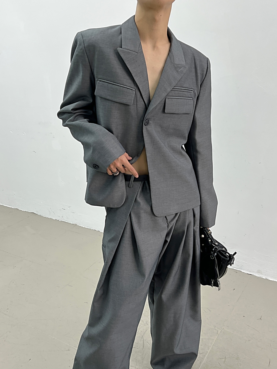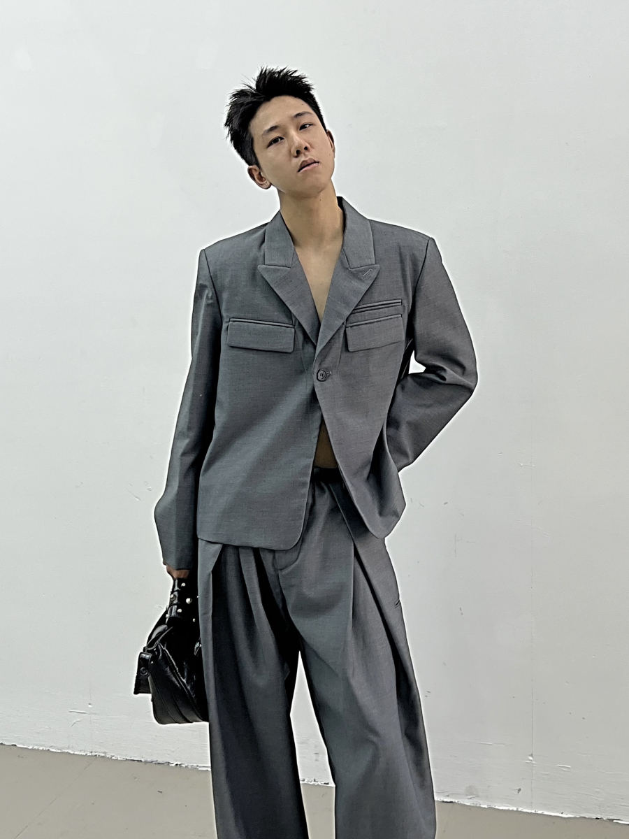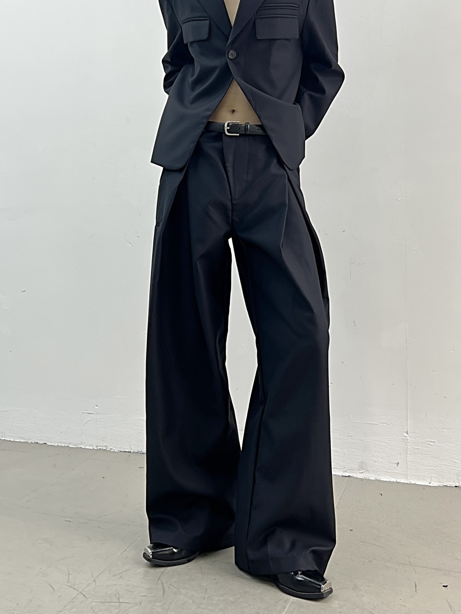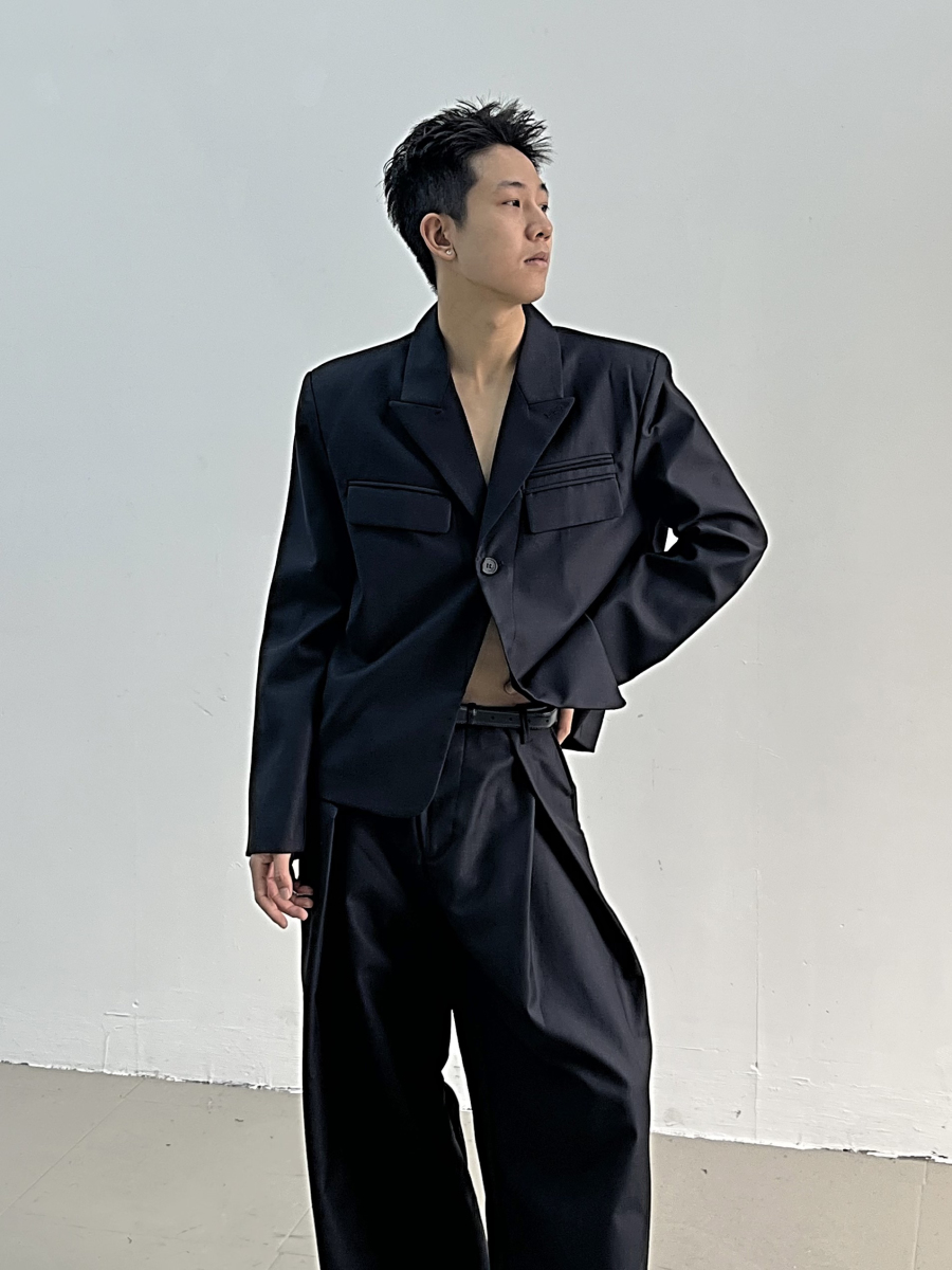 Shoulder-Pad Tailored Jacket & Wide-Leg Wrinkled Trousers Setup WN11665