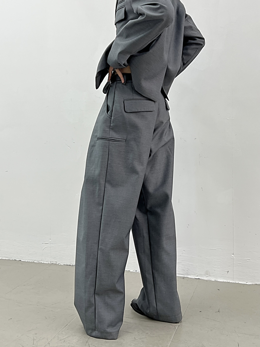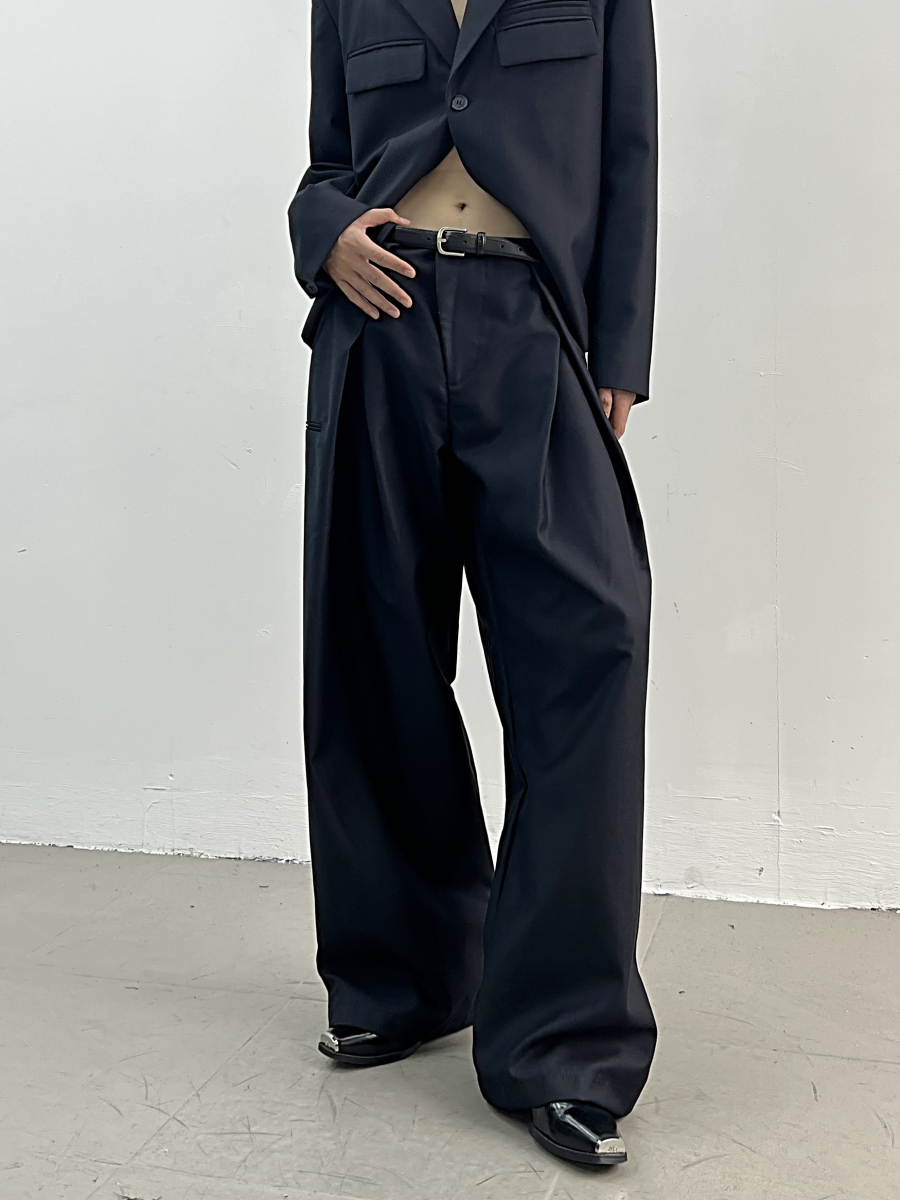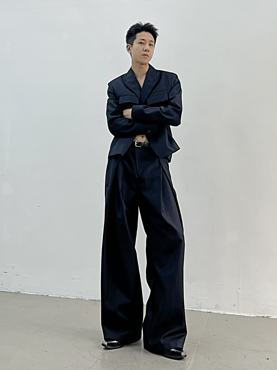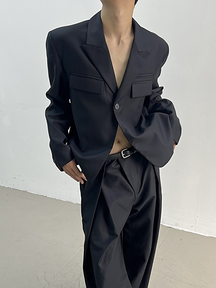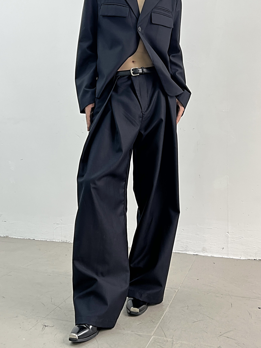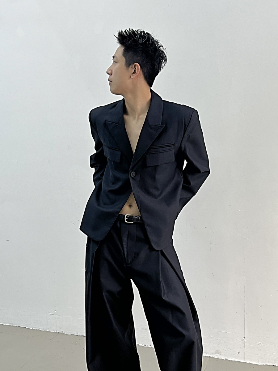 Shoulder-Pad Tailored Jacket & Wide-Leg Wrinkled Trousers Setup WN11665