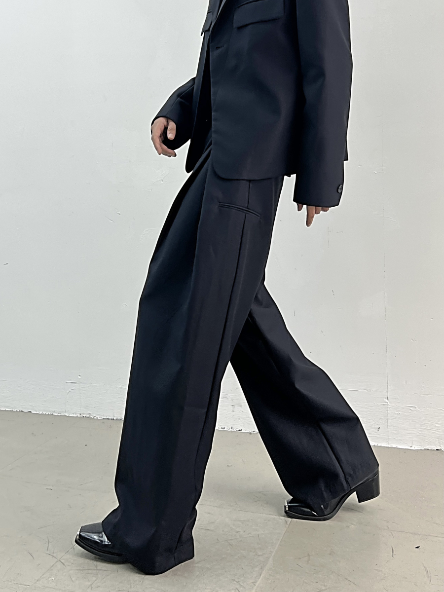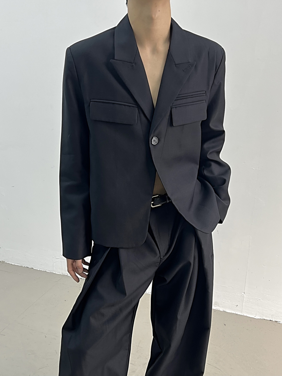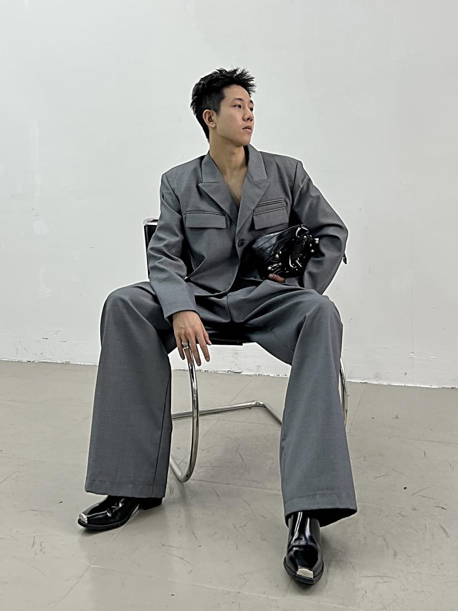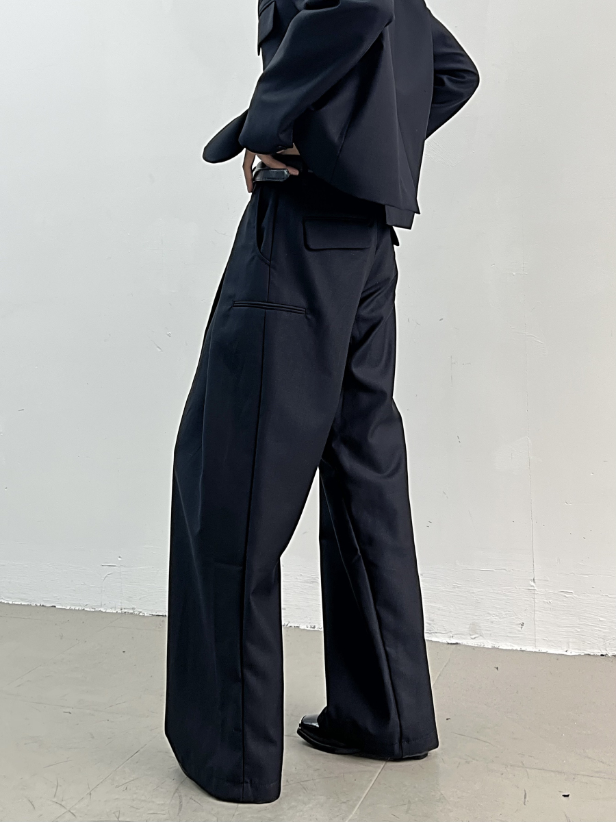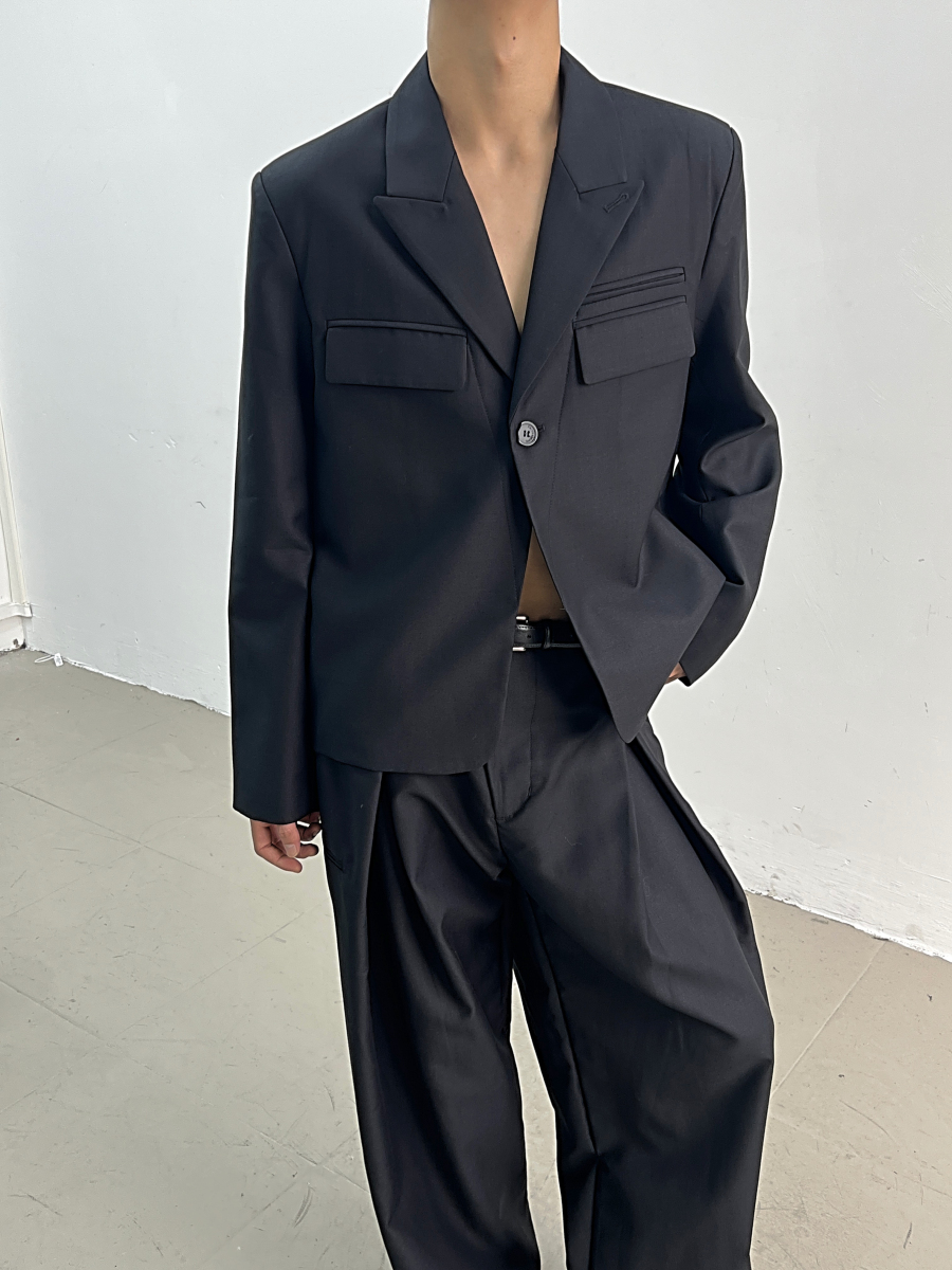 Shoulder-Pad Tailored Jacket & Wide-Leg Wrinkled Trousers Setup WN11665