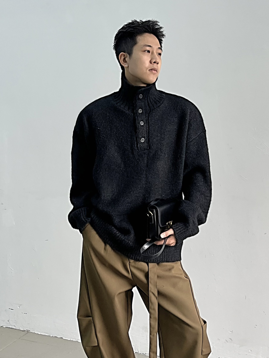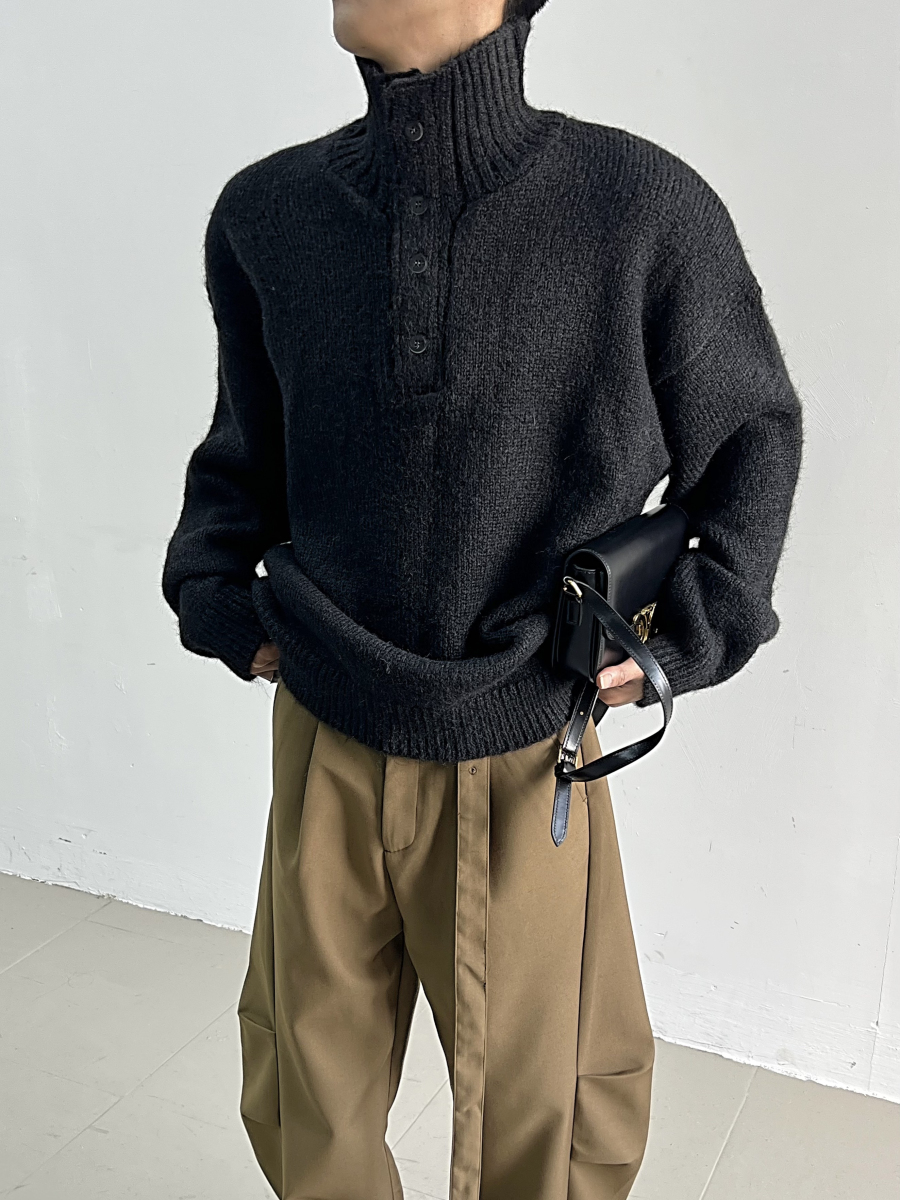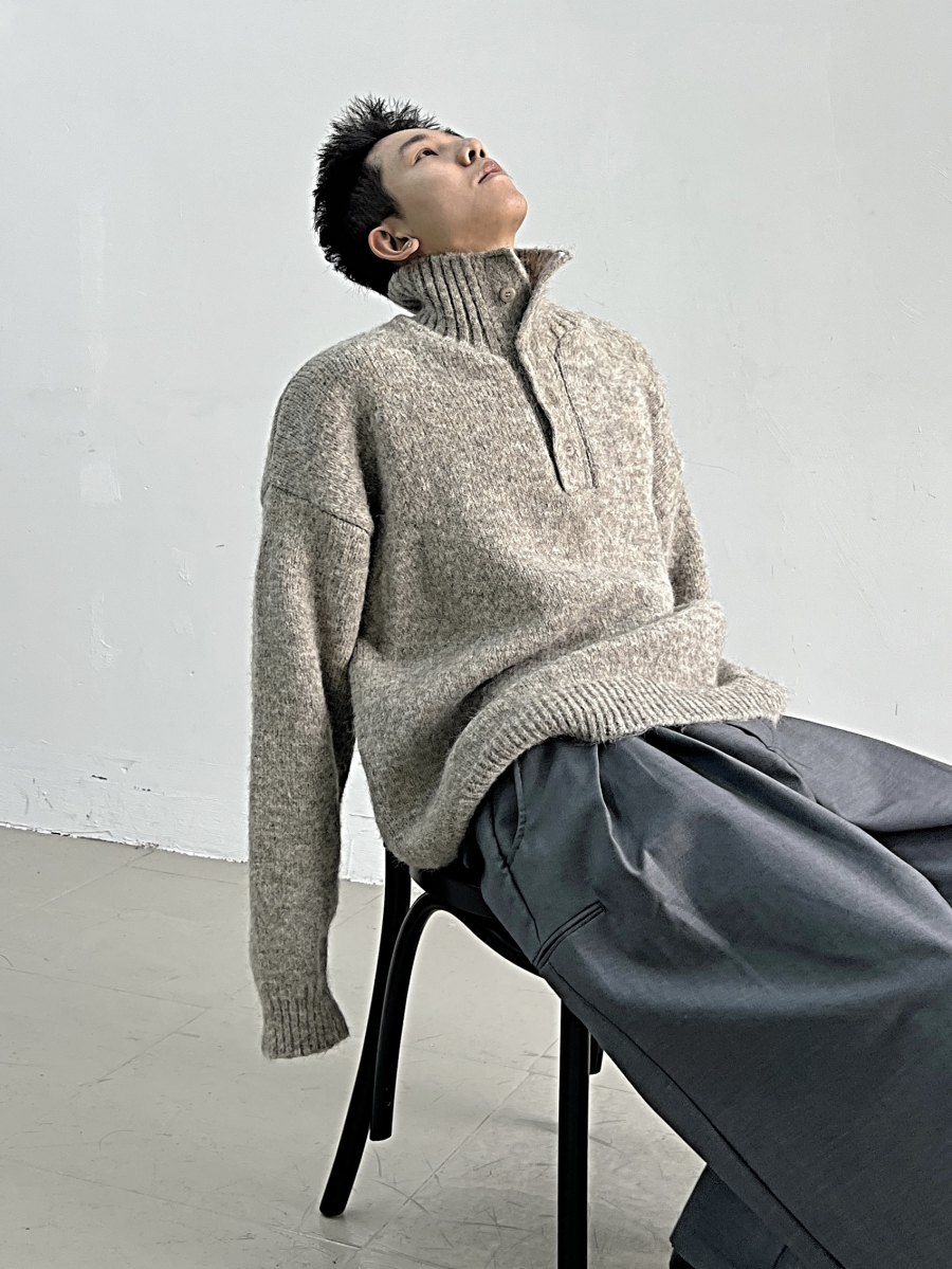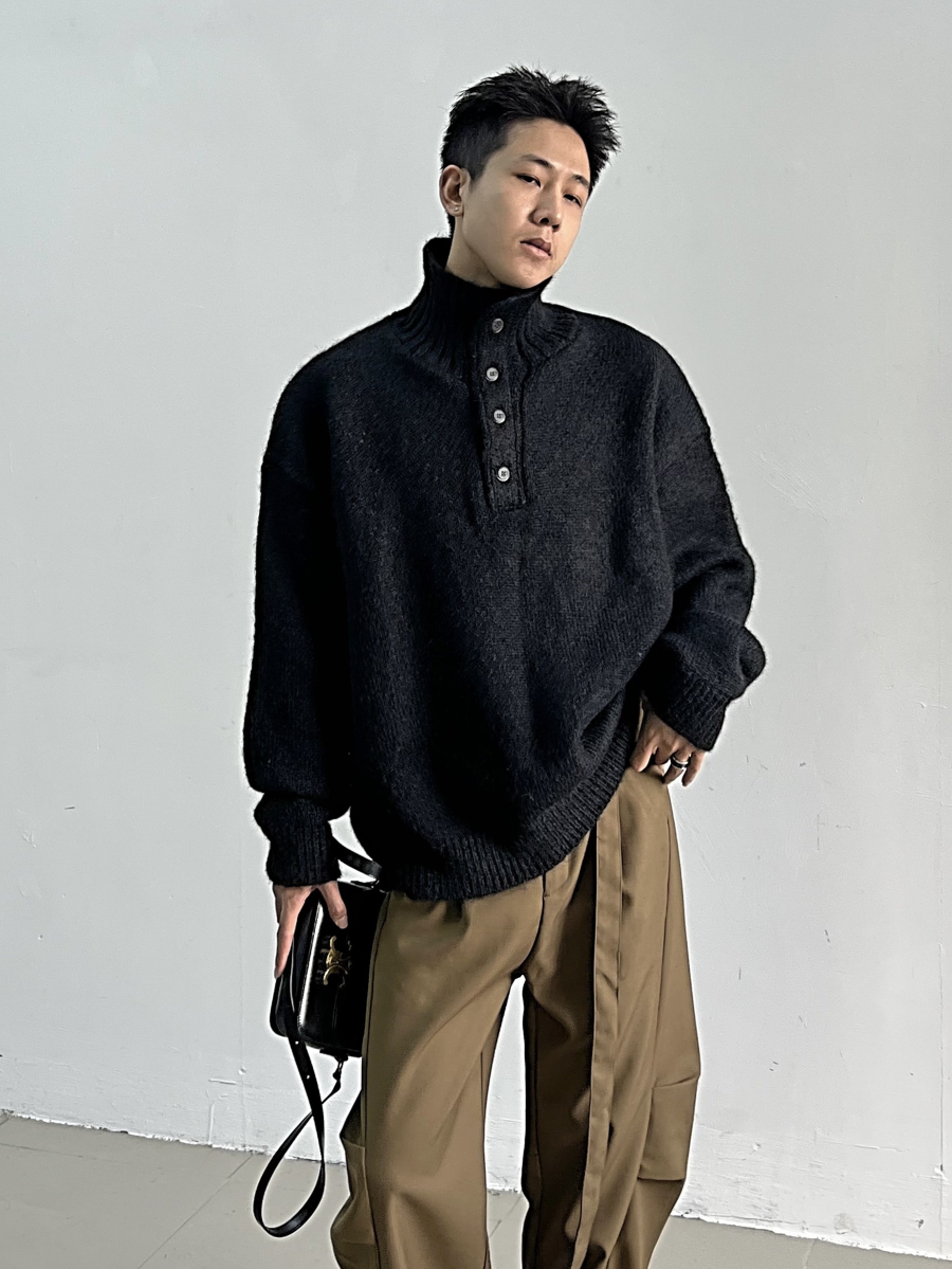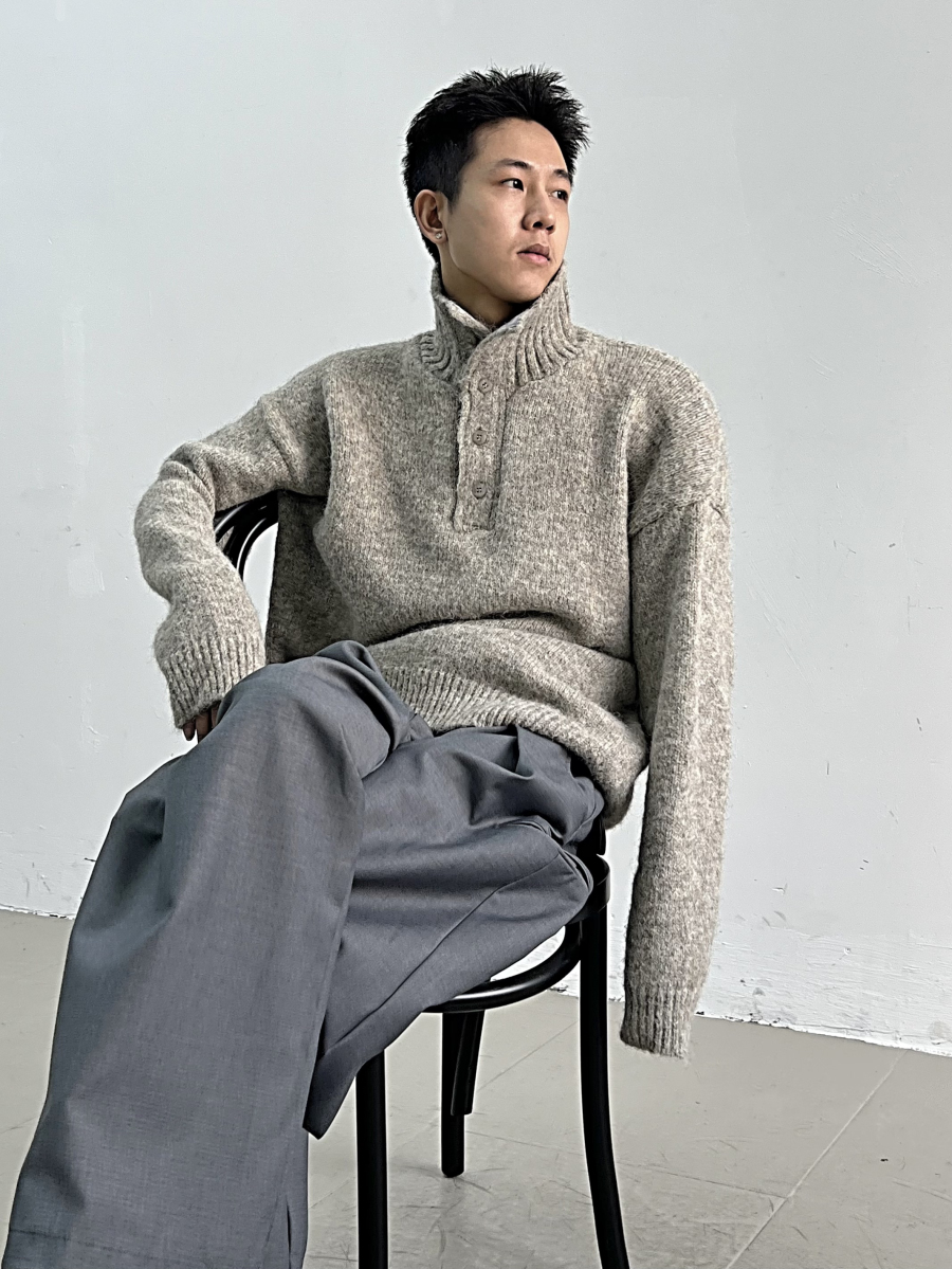 Half-Open High-Neck Knit Wool Sweater WN11670