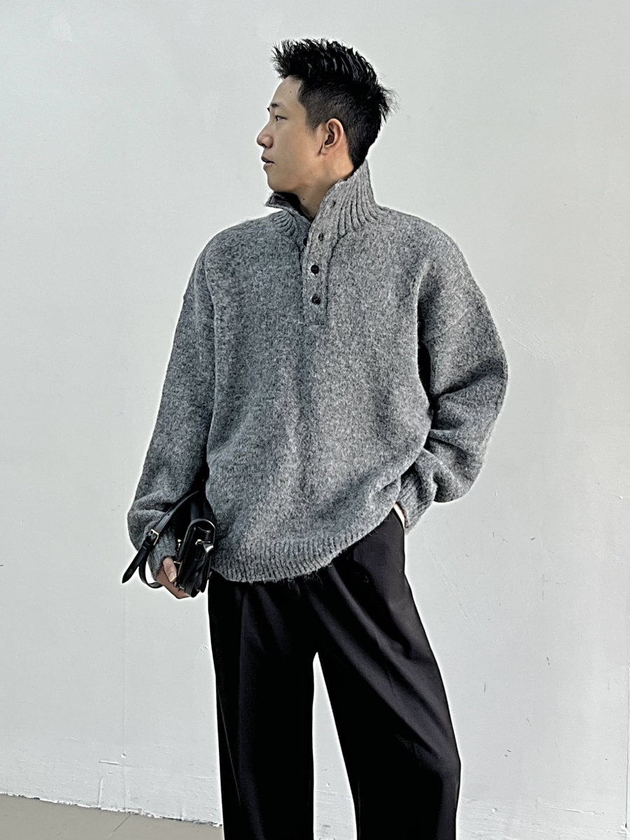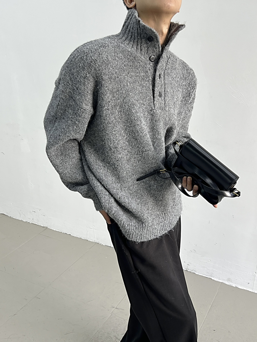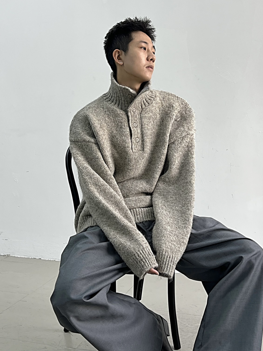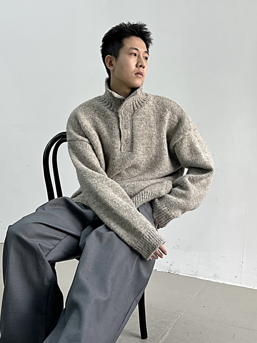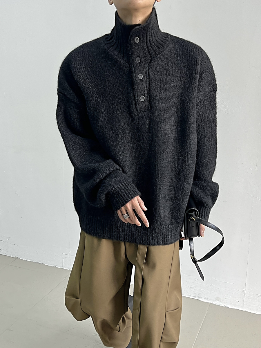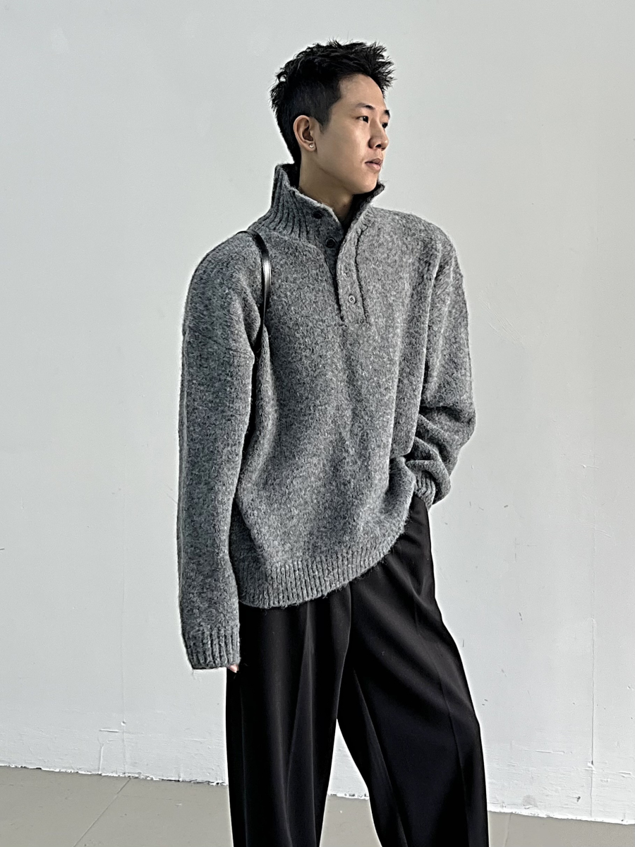 Half-Open High-Neck Knit Wool Sweater WN11670