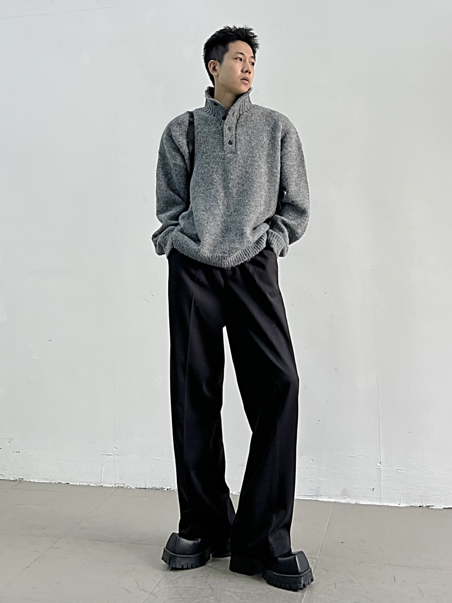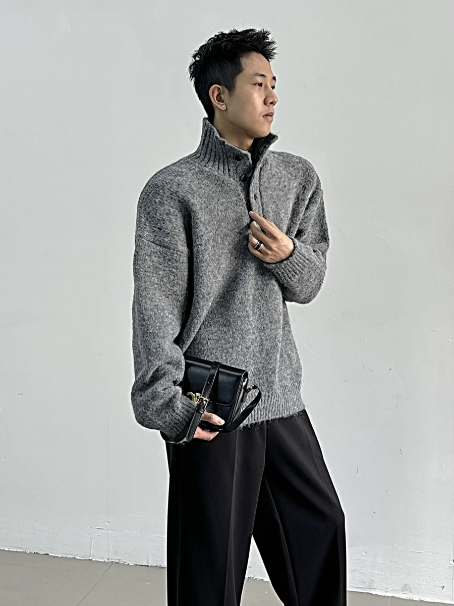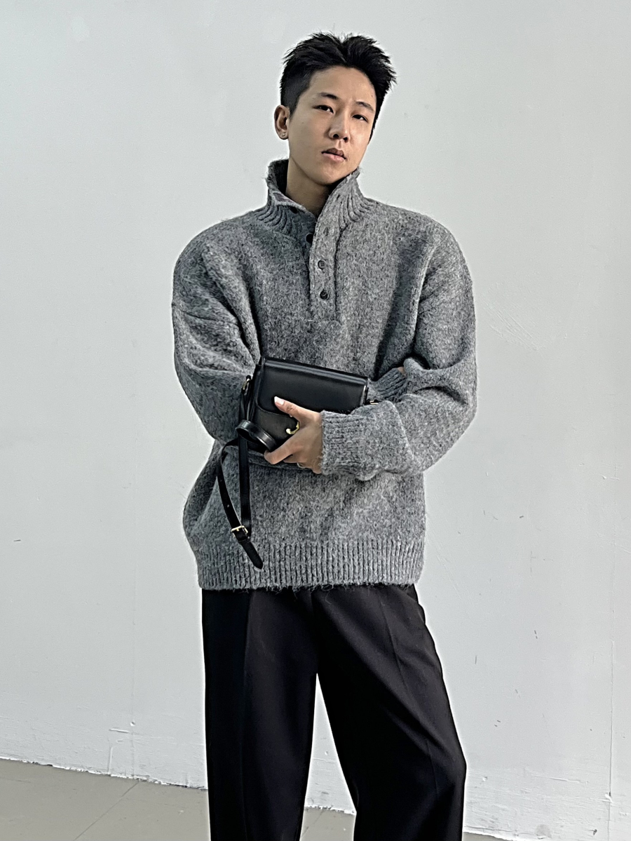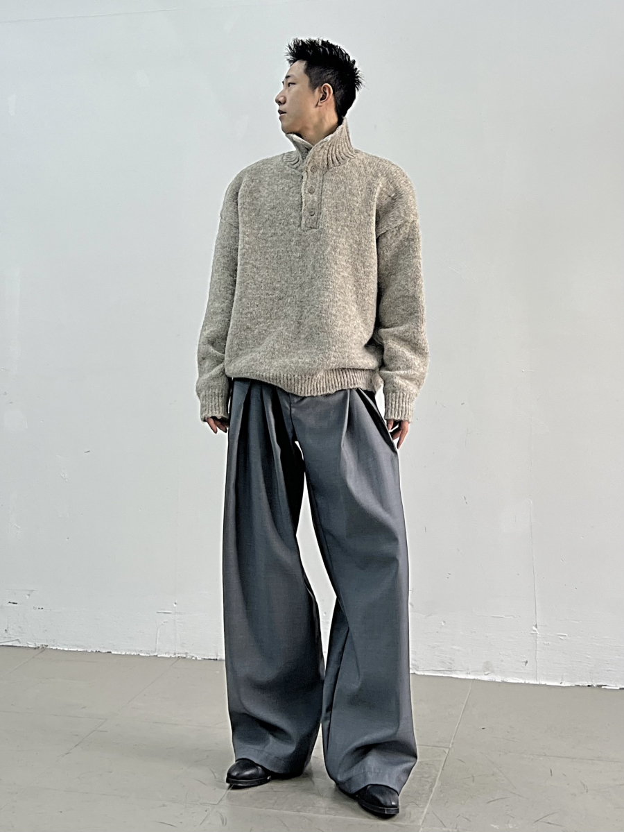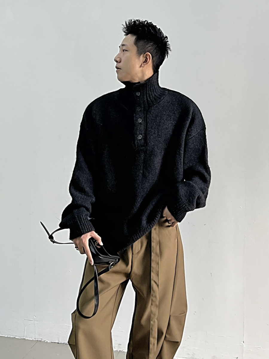 Half-Open High-Neck Knit Wool Sweater WN11670