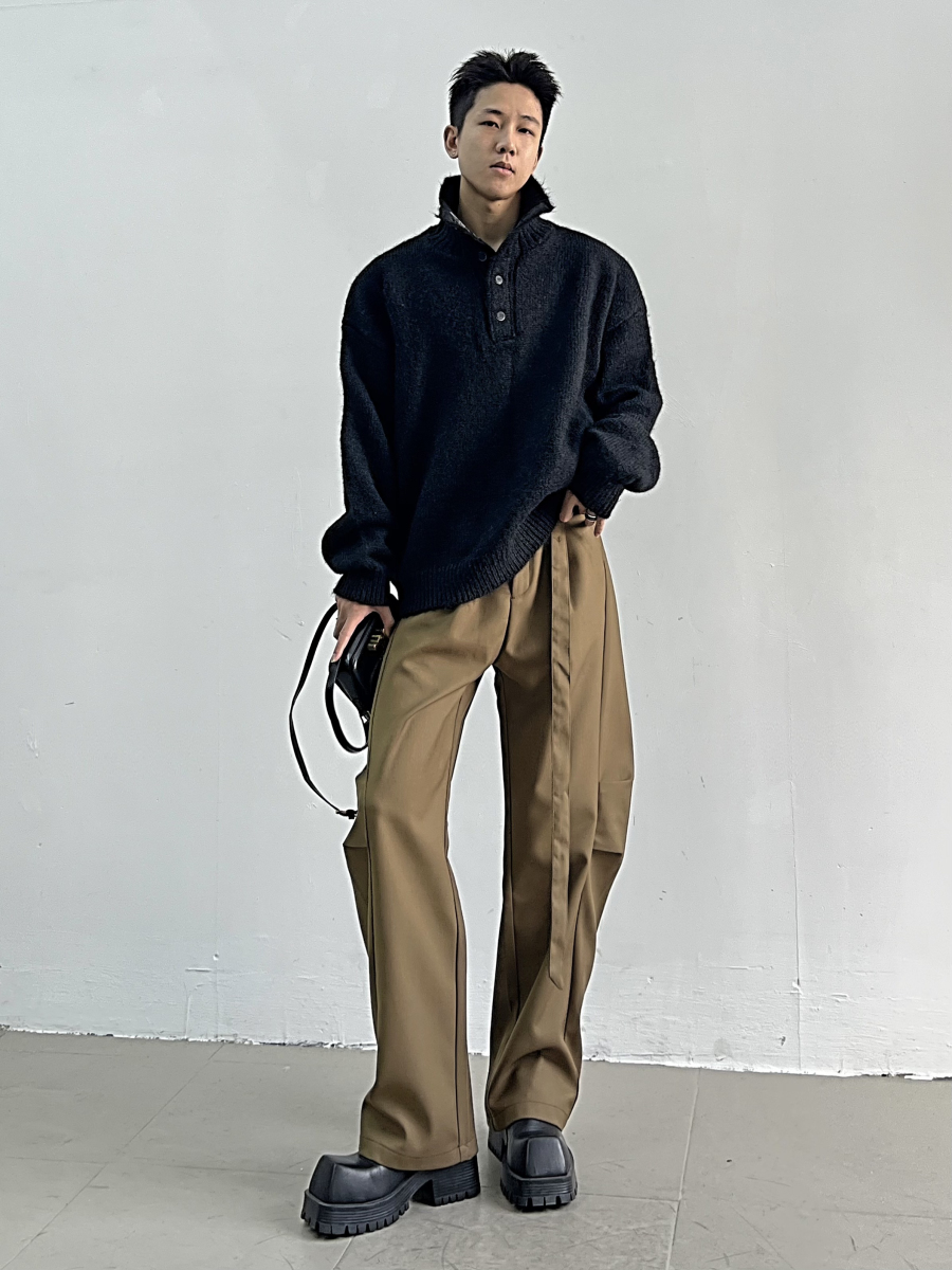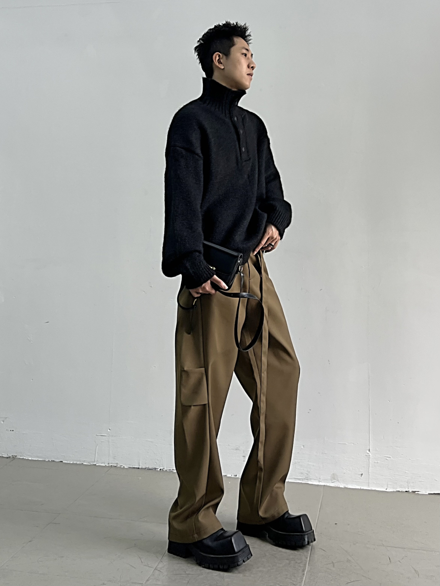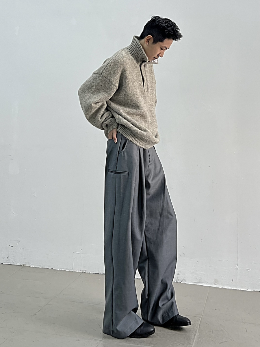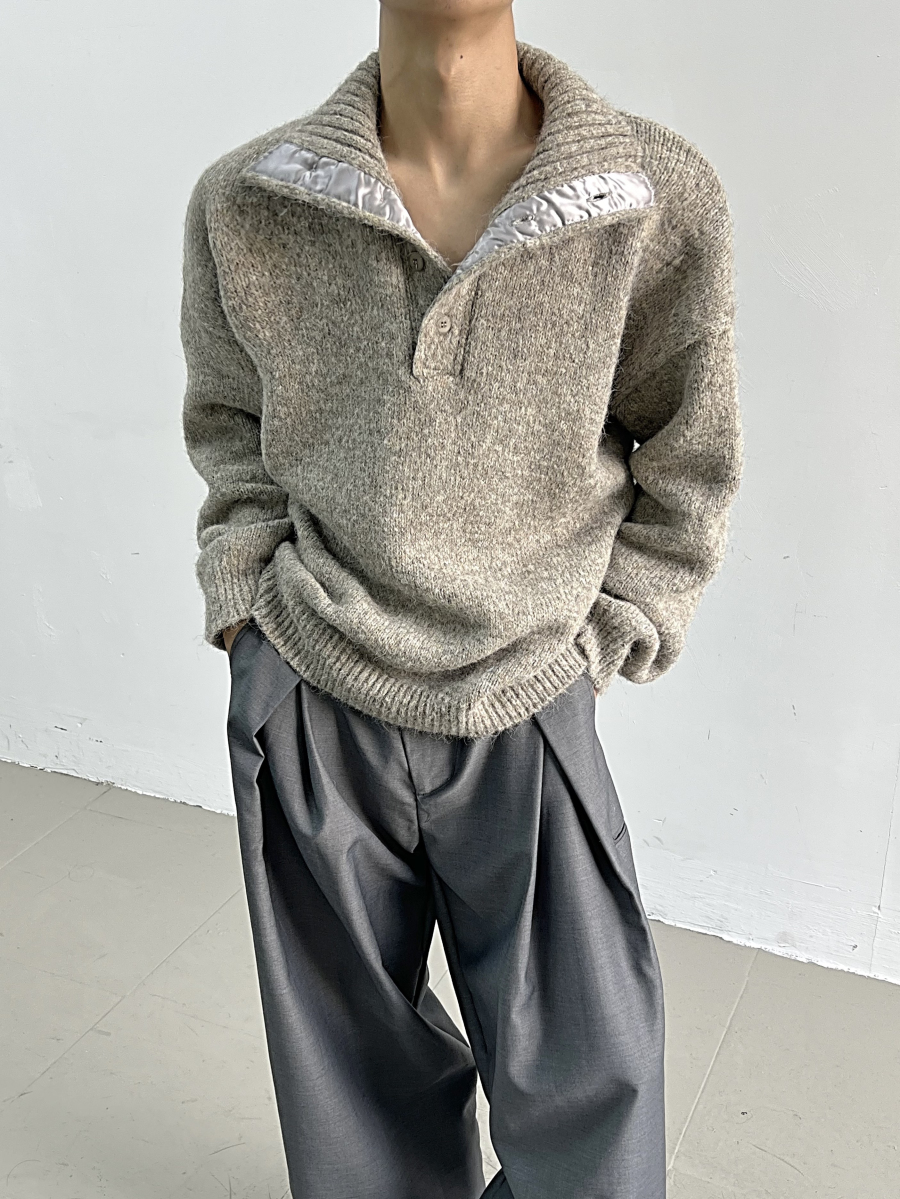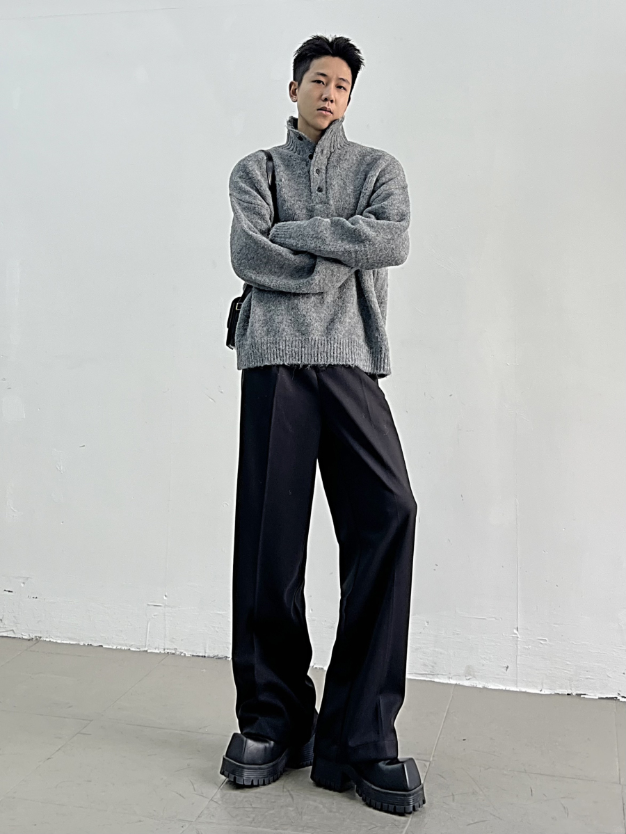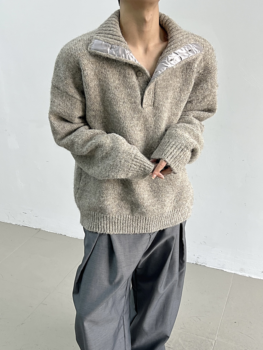 Half-Open High-Neck Knit Wool Sweater WN11670