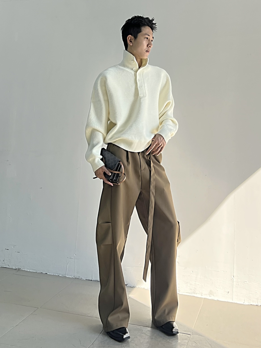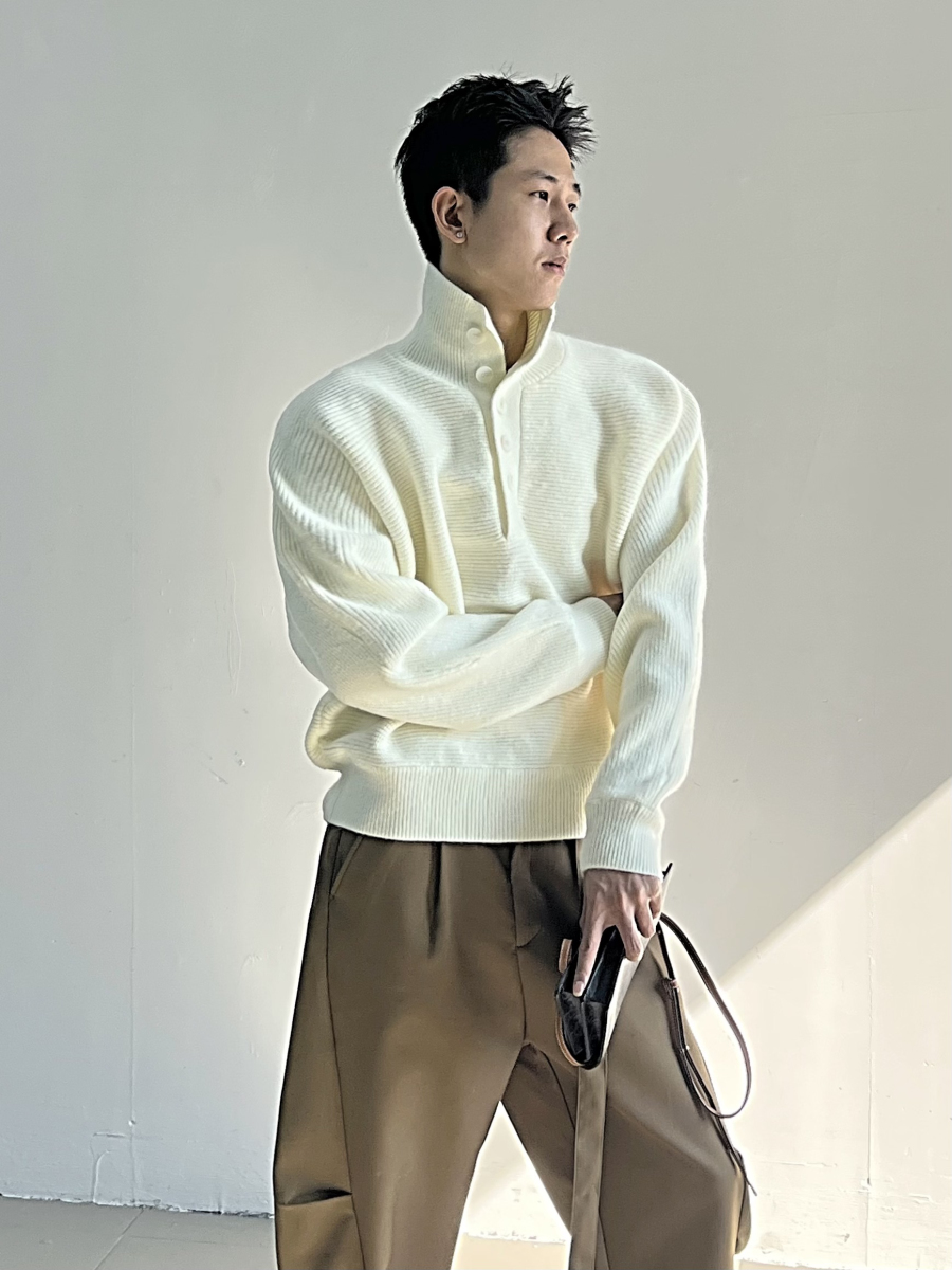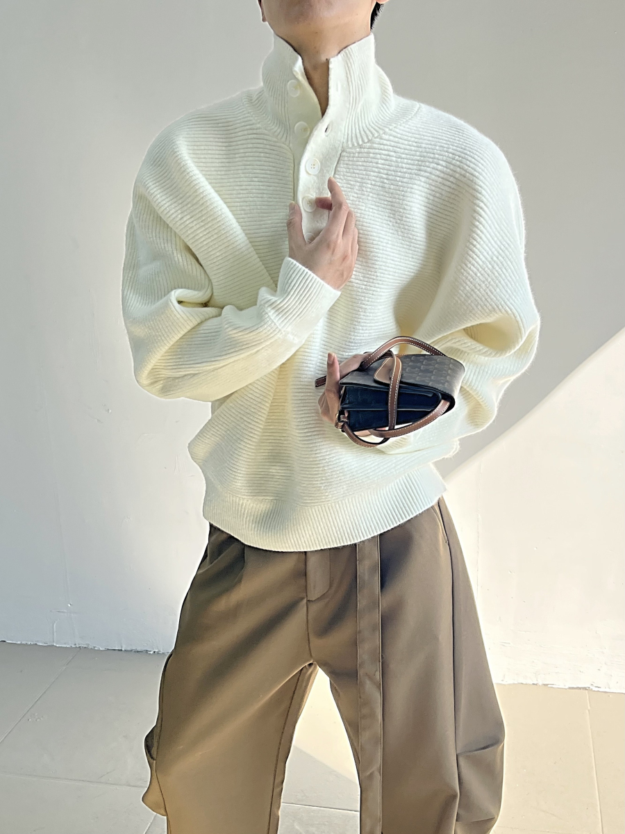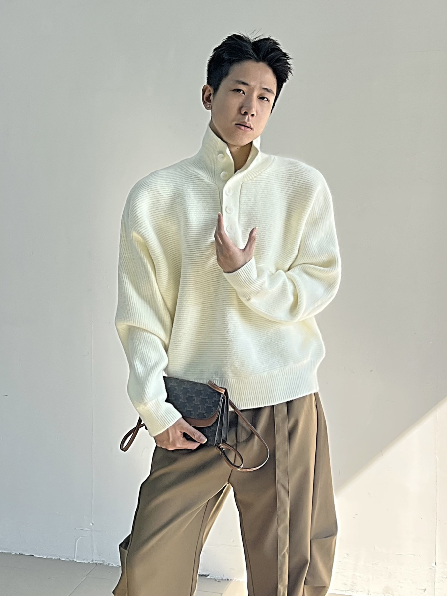 Buttoned High-Neck Pullover Knit Sweater WN11674