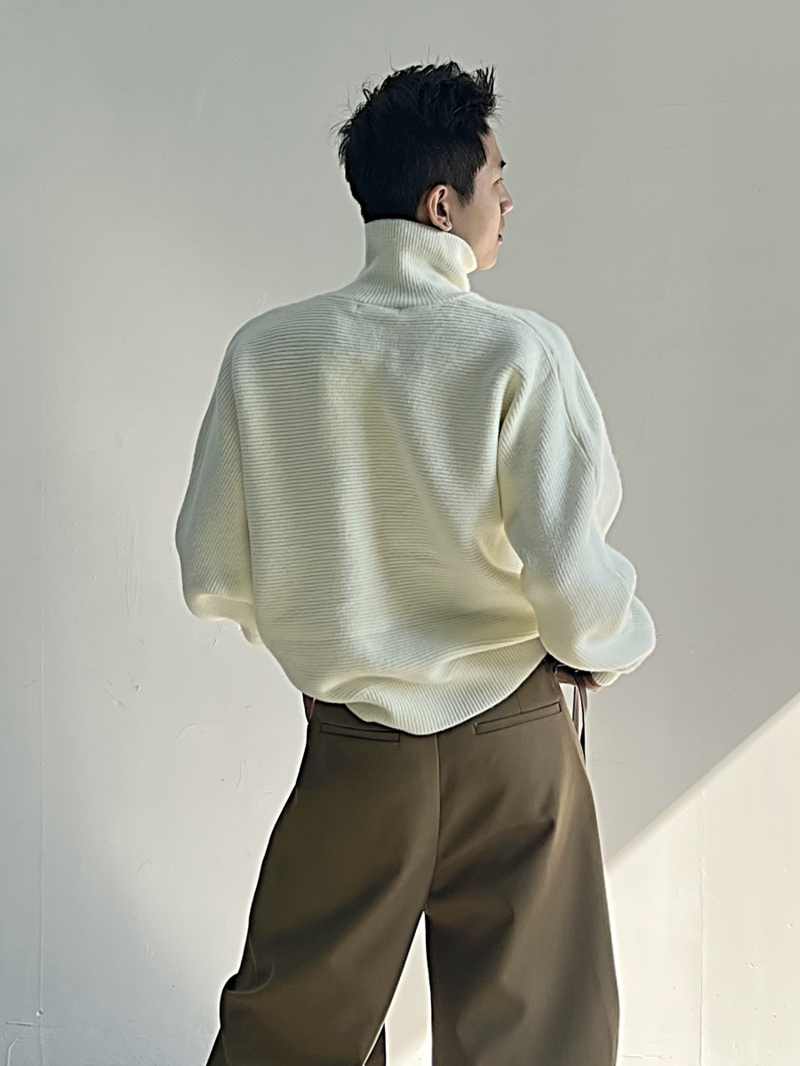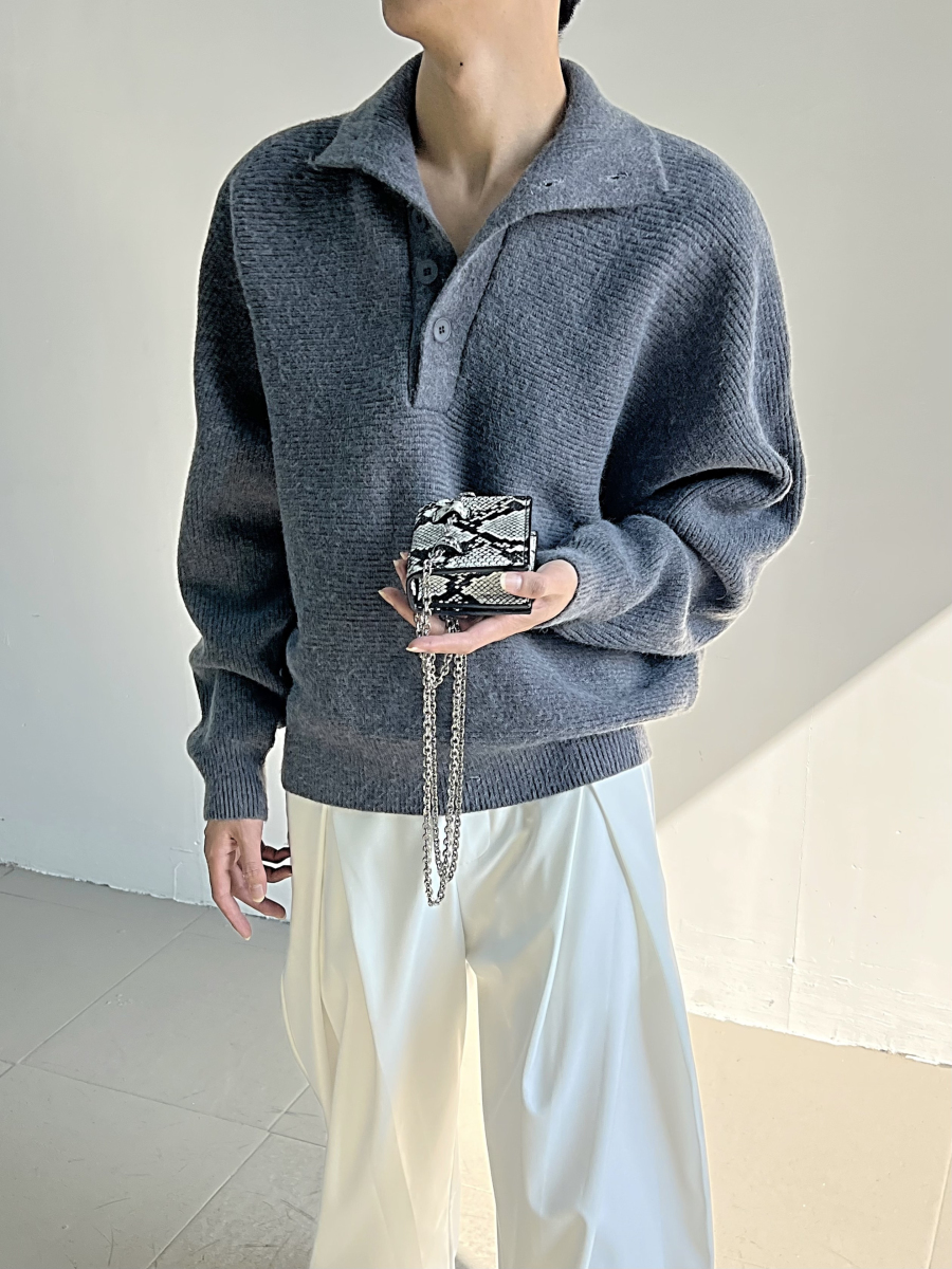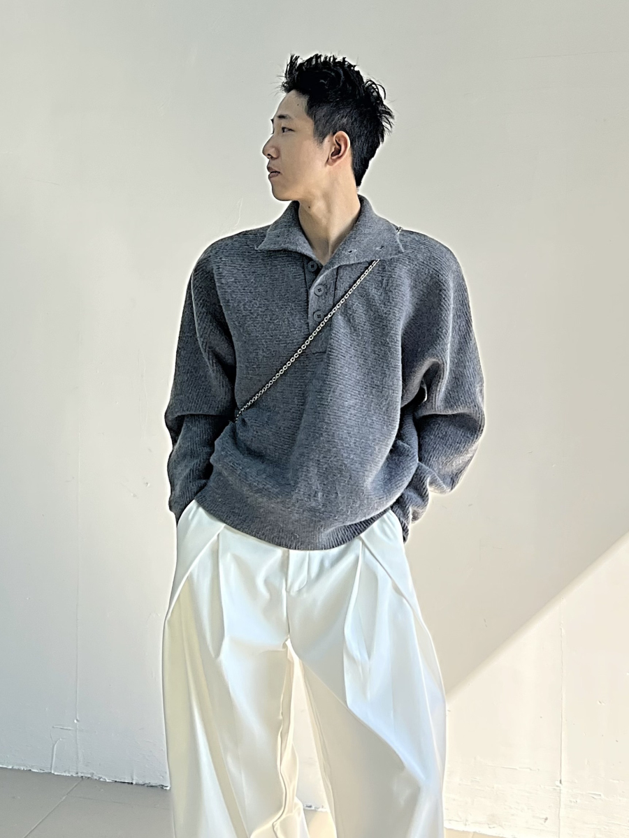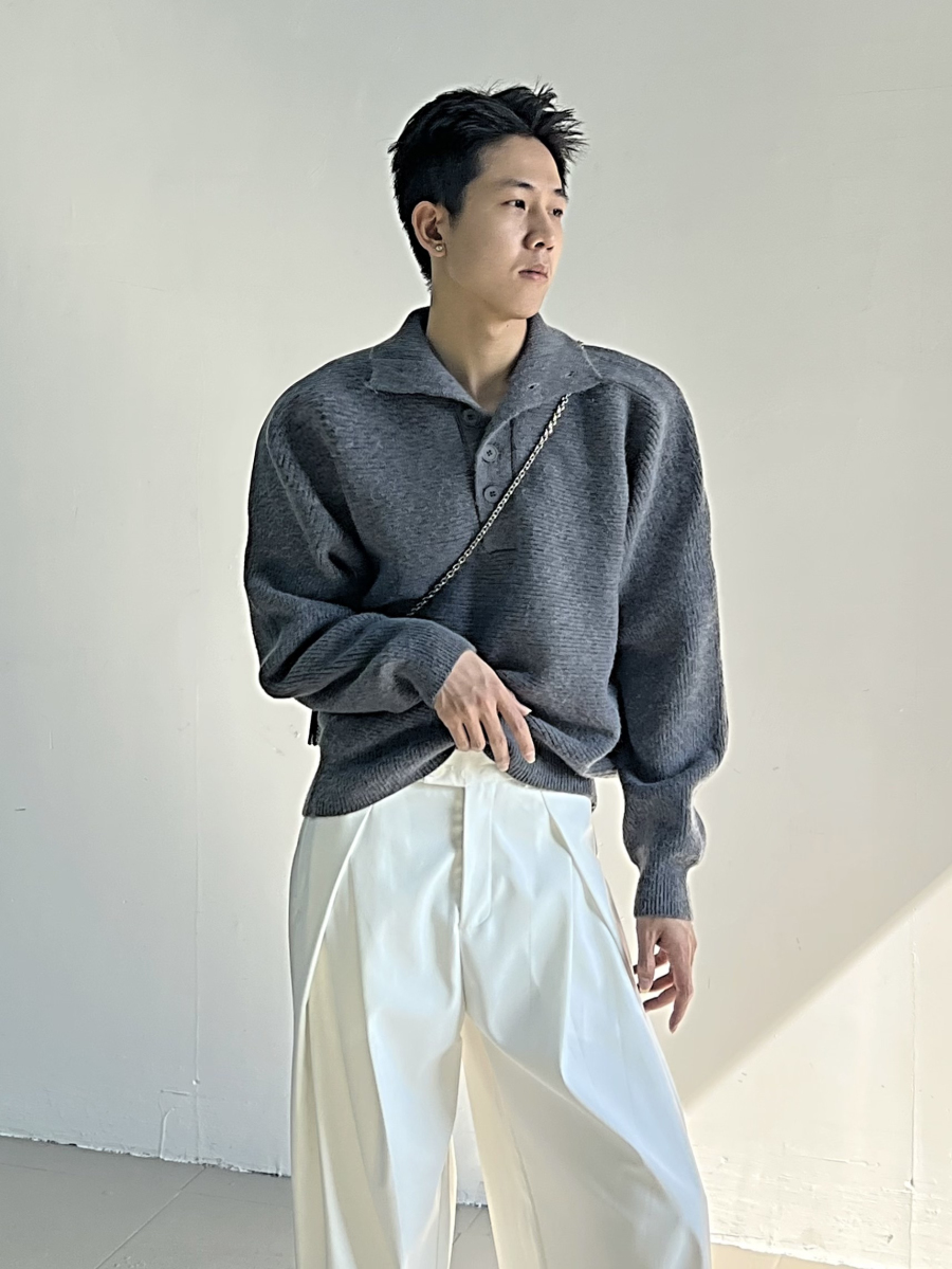 Buttoned High-Neck Pullover Knit Sweater WN11674