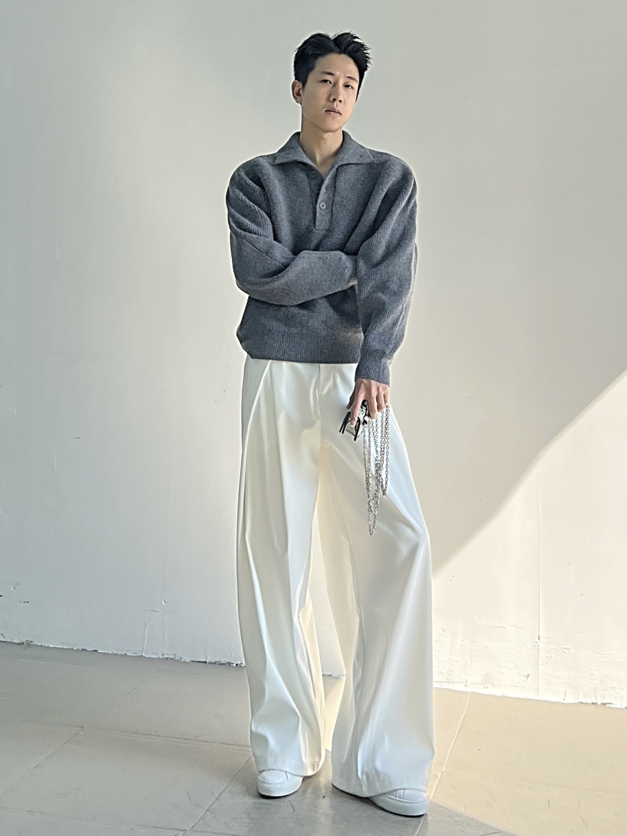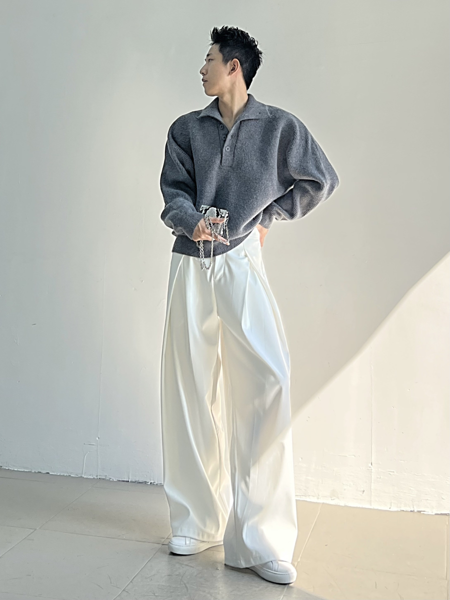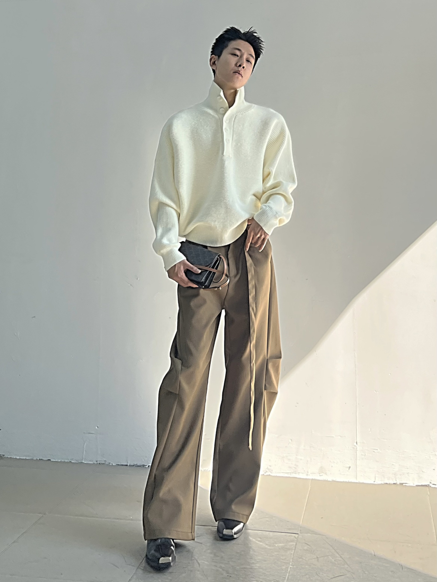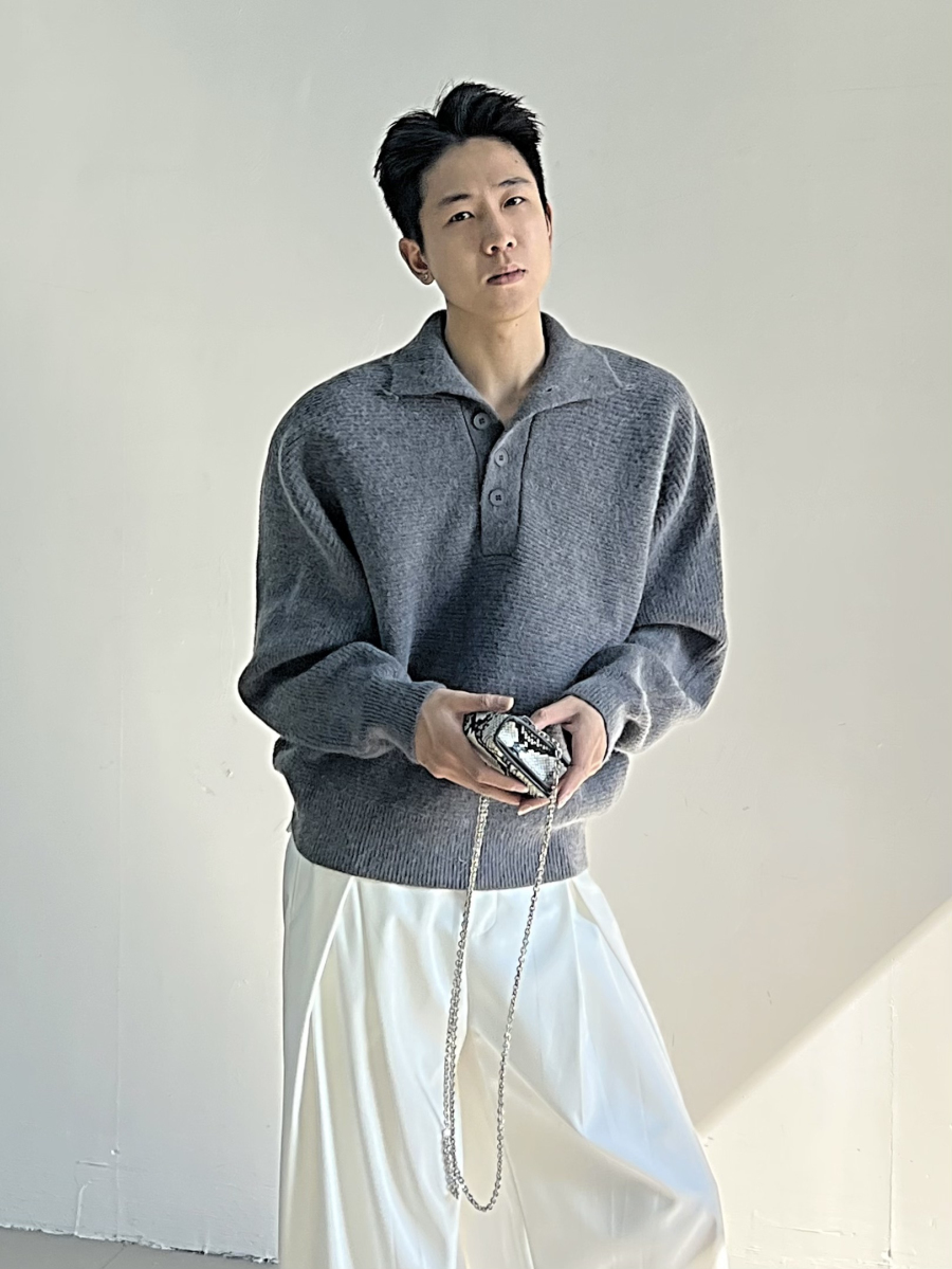 Buttoned High-Neck Pullover Knit Sweater WN11674