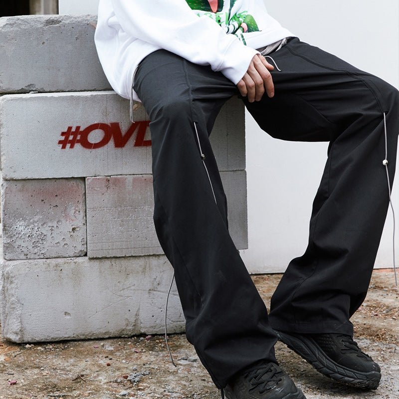 Drawstring Reflective Wide Leg Straight Pants WN12440